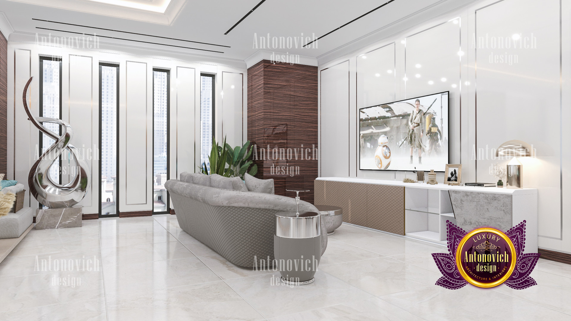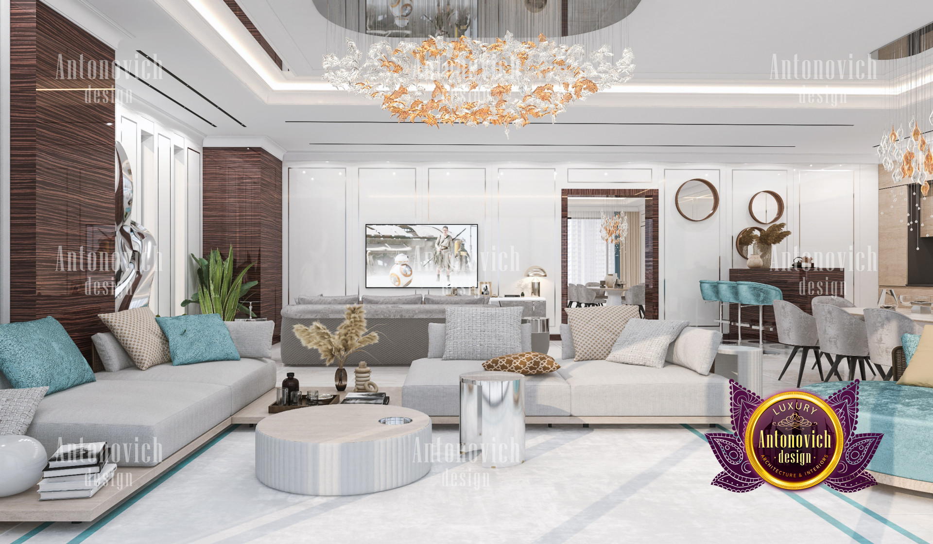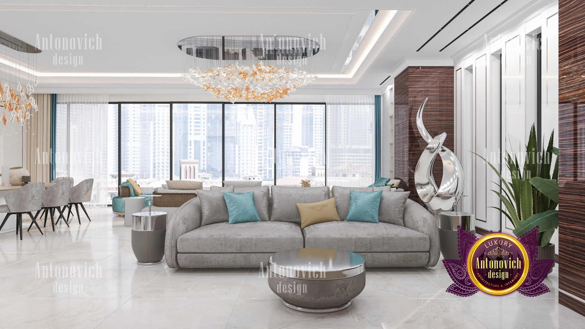The magnificent room has its own seats and tables for relaxation, which is extremely suited in the luxury apartment interior design. Similarly, the luxury apartment interior design has one-of-a-kind and appealing decors. The luxurious apartment is one of a kind, with its gorgeous fabric sofa that feels really elegant and magnificent. The addition of spectacular walls to the luxury apartment interior design is also beneficial. The lovely blue is also coupled with brown, adding a distinctive touch to the modern luxury apartment interior design. The interior is similarly decorated, which is really appealing. The presence of lovely lighting adds to the rooms appeal.