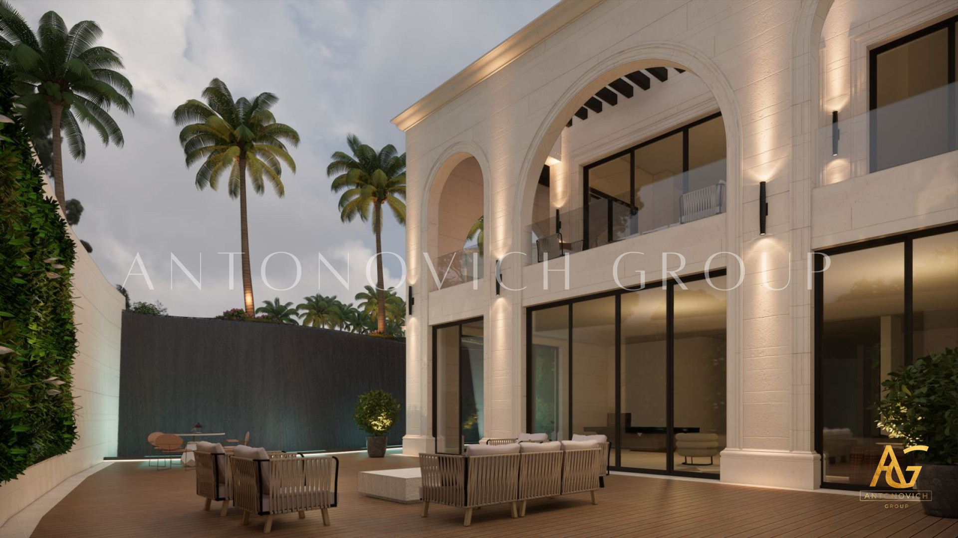 The Antonovich Group's façade team, which has the highest level of expertise in the field, develops innovative restoration and fit-out solutions for exterior design and landscaping. A sophisticated technological technique, major home building or renovation, including exterior and interior modifications, should be left in the hands of a professional. With the assistance of the knowledgeable and skilled staff at The Antonovich Group, you may make material selections for external fit-out work, which strives to enhance load-bearing walls while taking into consideration the architectural quirks of significant residential or commercial structures. All aspects of home exterior fit-out can be divided into a number of categories. They differ in their applications and compositions: The first choice is a dry fit-out, which means securing items without the use of various adhesive bases. Fasteners like anchors, dowels, screws, and others are used to hold the many parts of this picture together. A "wet facade" system, which should contain all building combinations that are initially prepared with water, can also be utilized for external house fit-out. This option comprises a range of panels (stone, wood, etc.). They are in charge of all plaster installation and clinker cladding.