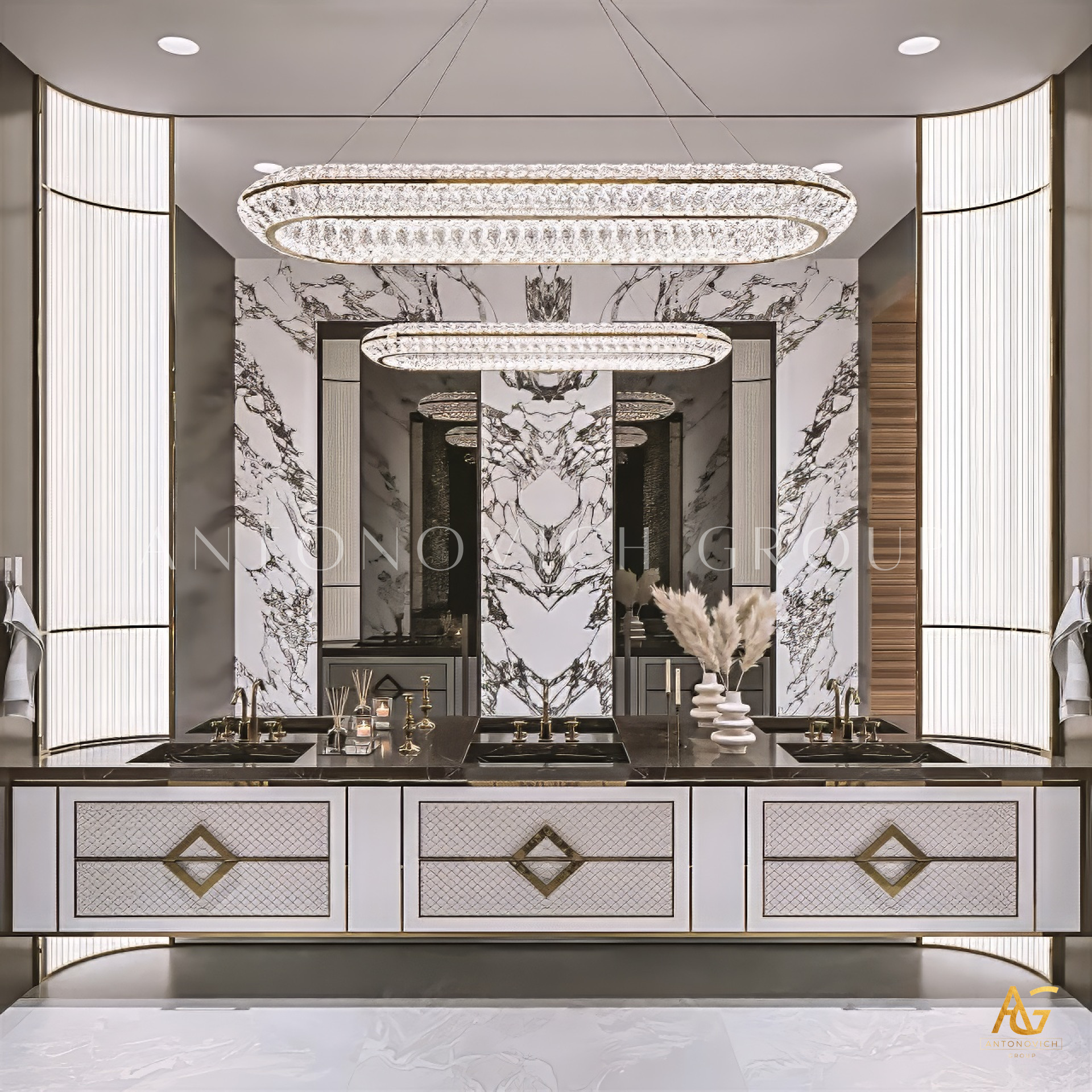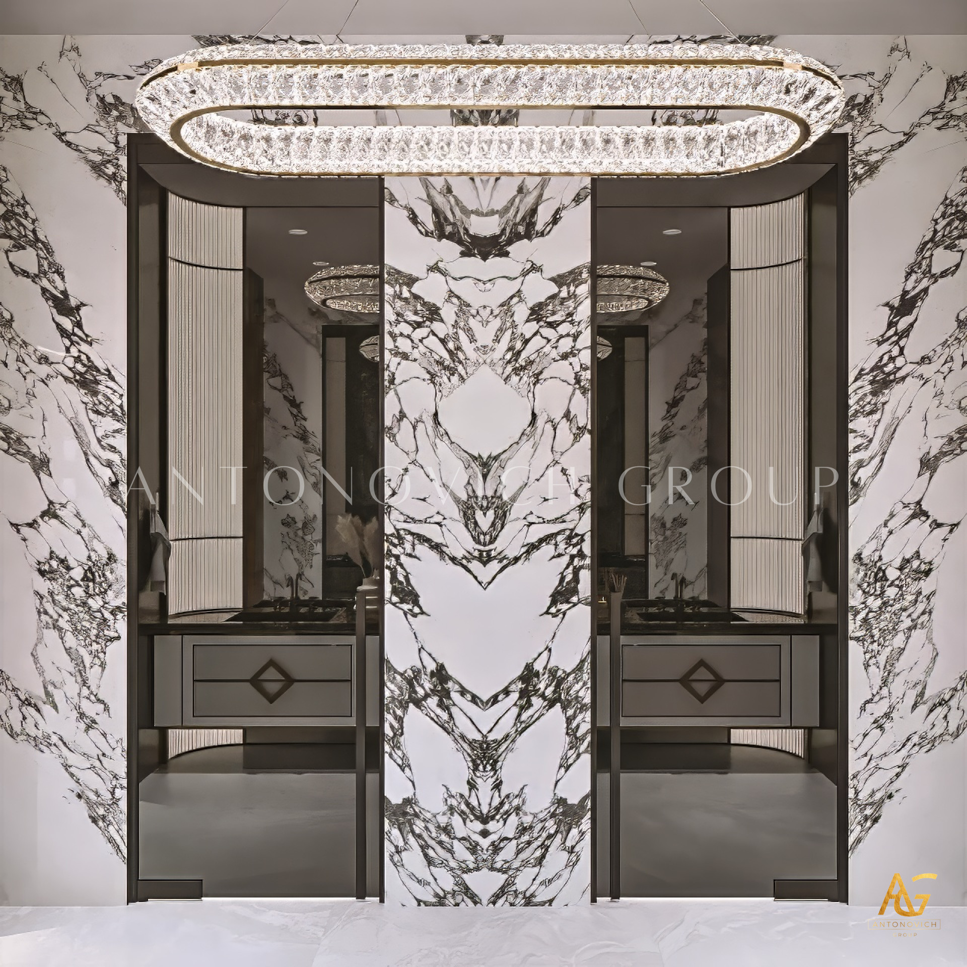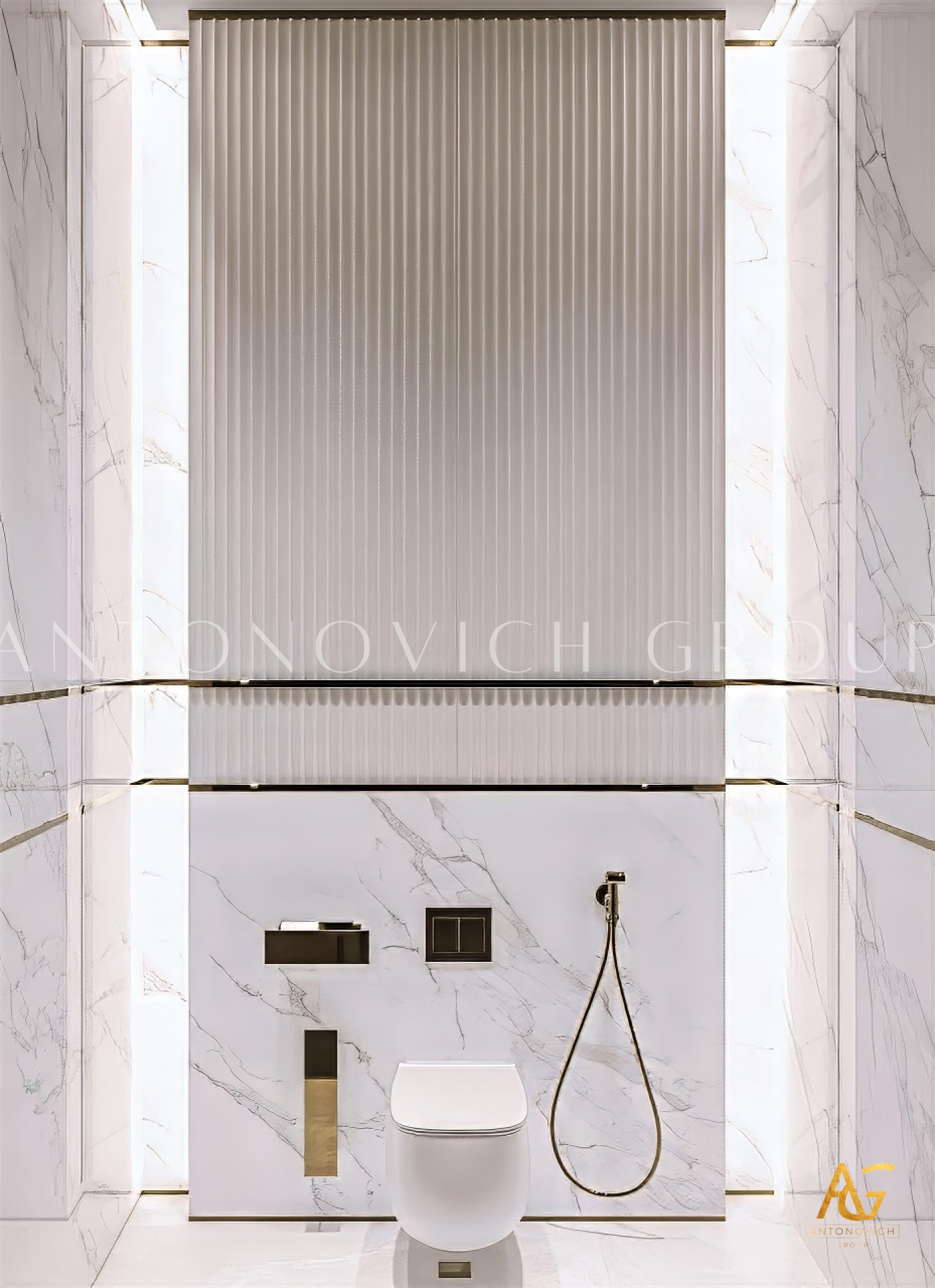 The luxurious bathroom, which is decorated with stylish accessories and modern plumbing, please the homeowners with its comfort, beauty, and all conditions for relaxation. Luxury Antonovich Design provides perfect bathroom design, as an embodiment of the worldview of the true specialists. The highly skilled designers realize the dreams of family members into reality. A variety of decor elements plays a role not only adornments of luxury bathroom design, but also objects for placement of clothing and cosmetics. The central place in the design layout is given to a bath. The architectural and design company Luxury Antonovich Design provides all materials from the natural stone that has a water-repellent means. It gives truly functional intention to the luxury bathroom design. A well-chosen lighting system is a distinctive feature of the room. The specialists of global renown have used the spotlights with adjustable turning angles, as well as exclusive models of lamps in bathroom design in Dubai. The highlighting of some elements: shelves, the image on the tile, are playing in the stream of light, creating the effective images. The design studio Luxury Antonovich Design makes a wonderful luxury bathroom design to bring you pleasant moments of relaxation and comfort. Here you can forget about everyday troubles and plunge into the world of absolute joy and pleasure. Luxury Bathroom Design in Dubai is a perfect combination of beauty and harmony.