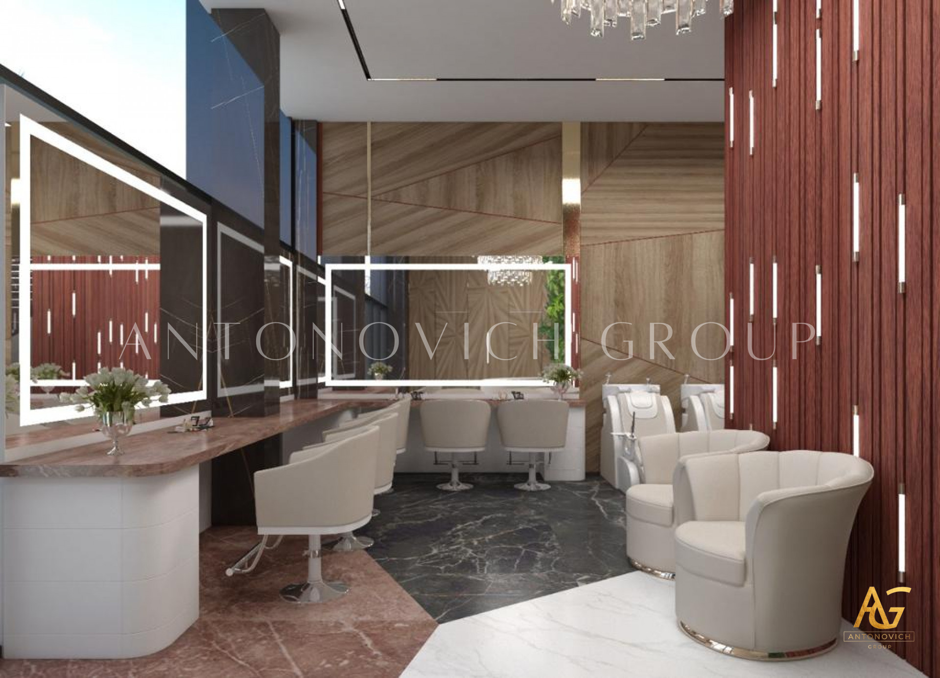 When it comes to every development of a fit-out beauty salon Dubai, Antonovich Group always brings out the best executions that will bring out the finest design results. Youll be able to create the environment you want more quickly with coordination. Some beauty parlors favor a straightforward, edgy look. A clean impression can be created using a simple minimalist theme. The secret to a straightforward method is making the most of geometric shapes. By encouraging simplicity, good architecture keeps the salons furniture from being overpowering. Make your beauty parlor fit for a king or queen! Customers appreciate being pampered, and they will revel in your salons regal concept. Themes with a royal stamp suggest superiority and exclusivity. The reception area, commonly known as the waiting area, needs to be upgraded. Every beauty salon starts with this area, thus its crucial to make a strong first impression. Make sure there arent any messes laying around. By including concealed drawers for improved storage, you can make the most of the welcome desk. Additionally, floor leveling aids in delineating separate locations. Use hues that will make the most of the available area. Sales can be increased by setting up your front desk and leading retail independently. Separate divisions encourage customers to look through products more. The appropriate color scheme may make a big difference. The majority of new clients favor beauty parlors with eye-catching color schemes. Humans naturally gravitate toward colors with which they can identify.