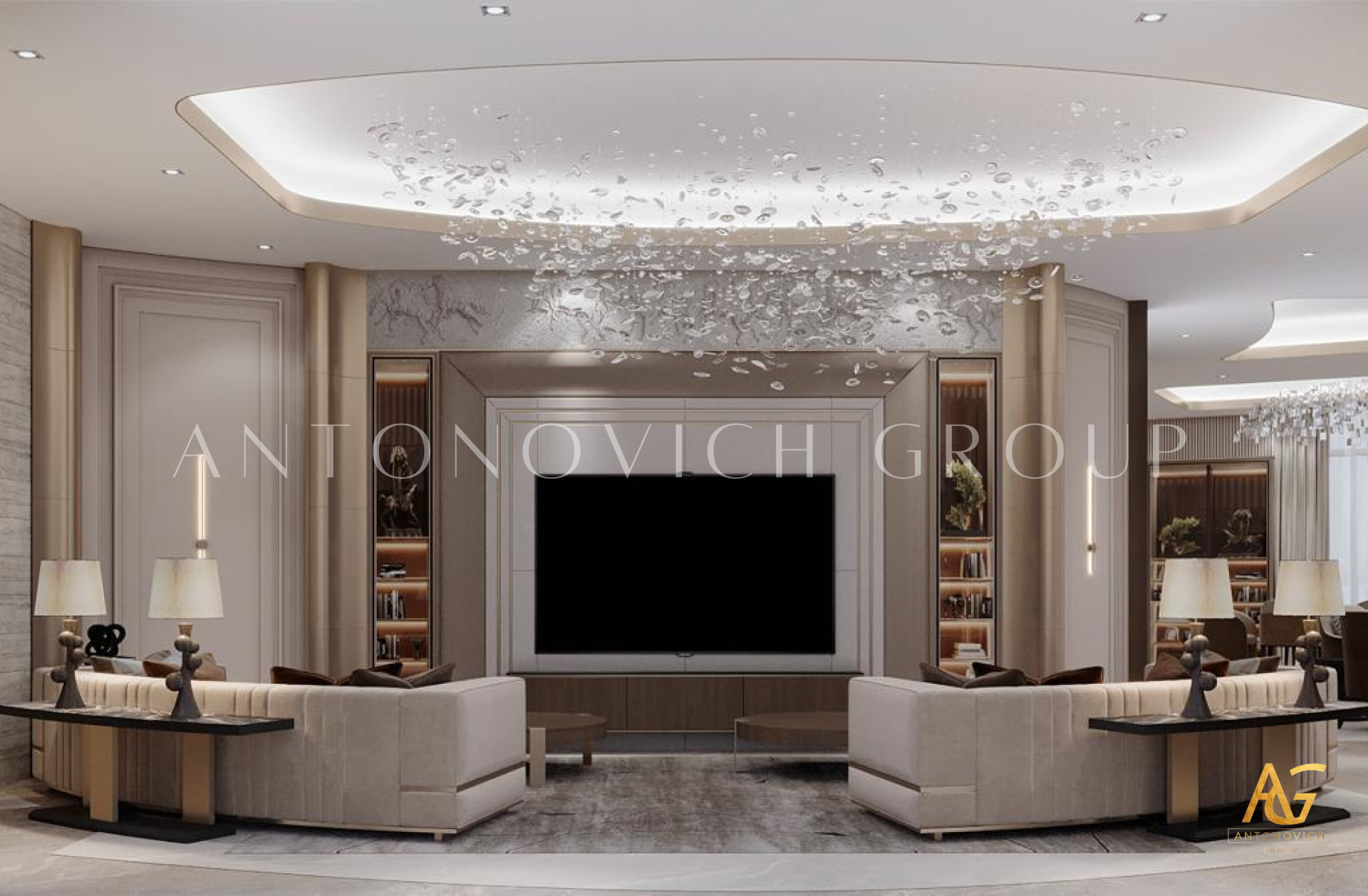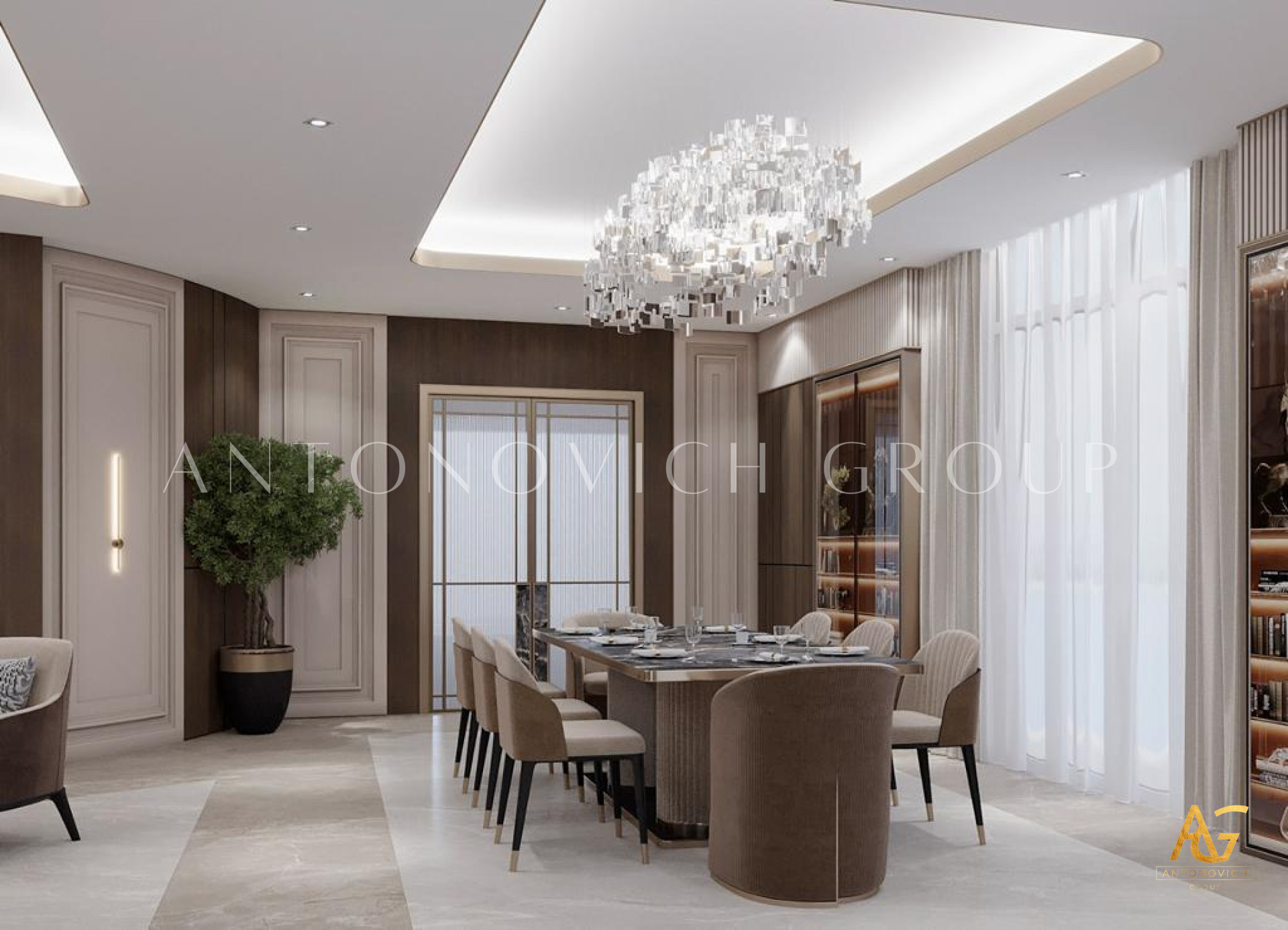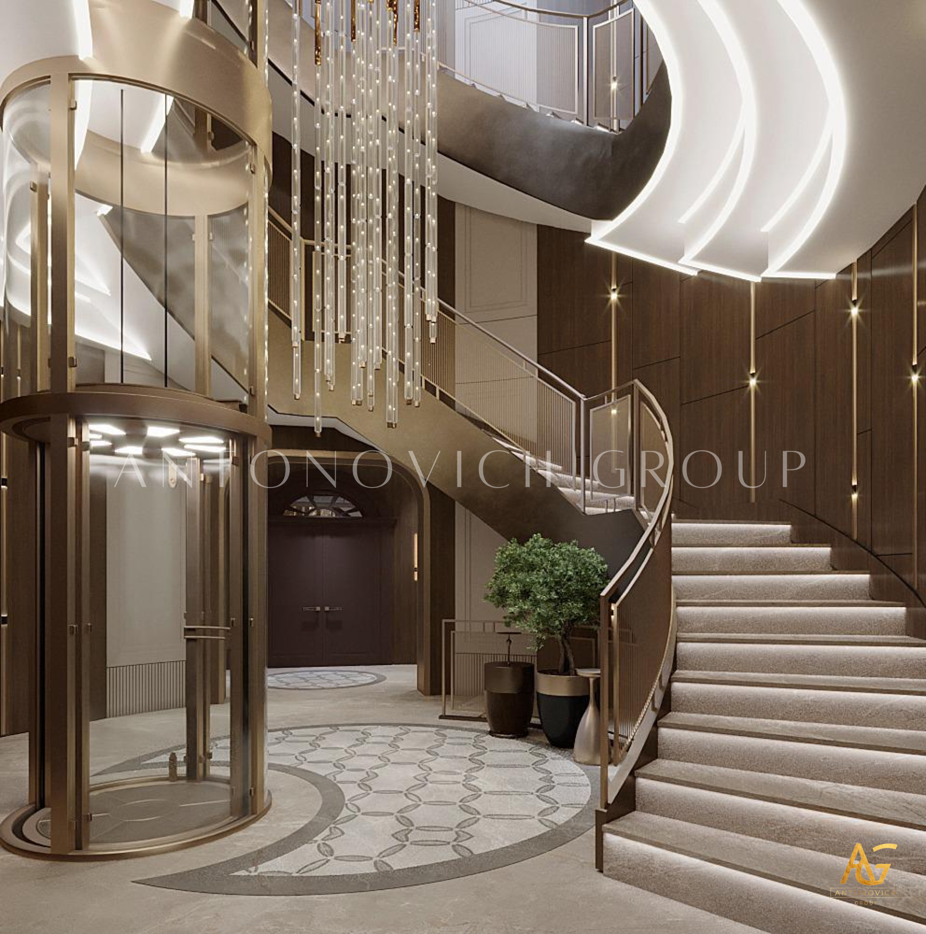 Light and harmony in the luxury concept of the contemporary home design in Abuja create a balance in the life environment. Lightness and easiness of the decoration characterizes the design villa in Nigeria. A beautiful space makes it possible to set perfectly the furniture and expands visually the frontiers of the space. Comfort and convenience are in every corner of the beautiful villa in Abuja. The magnificent hammered railing of the stairway on the first floor emphasizes the architectural expression of the stairs. The construction and shape give just a thrill. The luxury bright columns add grandeur and elegance in the design villa in Abuja. Propping the ceiling, they are like a real elegant work of art, increase the space of the room, giving it a refined aesthetic appearance. The modern design solution in the ceiling light from the turnkey interior design company Dubai Luxury Antonovich Design, is a special integral aspect that emphasizes the common style of the unique architectural designs in Nigeria. The true professionals of the architectural and design studio Luxury Antonovich Design give the festive atmosphere to the room, equipping the suspended structure with the point sources of light. It makes the interior even more exclusive and unique. The crystal chandelier takes a solid place in the designing of the ceiling. This elegant lighting represents the wealth and grandeur of design villa in Abuja. The luxurious furniture is another integral attribute of a cozy interior. An exclusive high-quality textiles from the world leading brands will be a highlight of the turnkey interior design in Abuja. The unique patterns, universally applicable texture look good to the eye and gives an aristocratic and at the same time modern style to the interior. The design company Luxury Antonovich Design creates the real masterpieces in the field of architecture, construction, decoration and landscape.