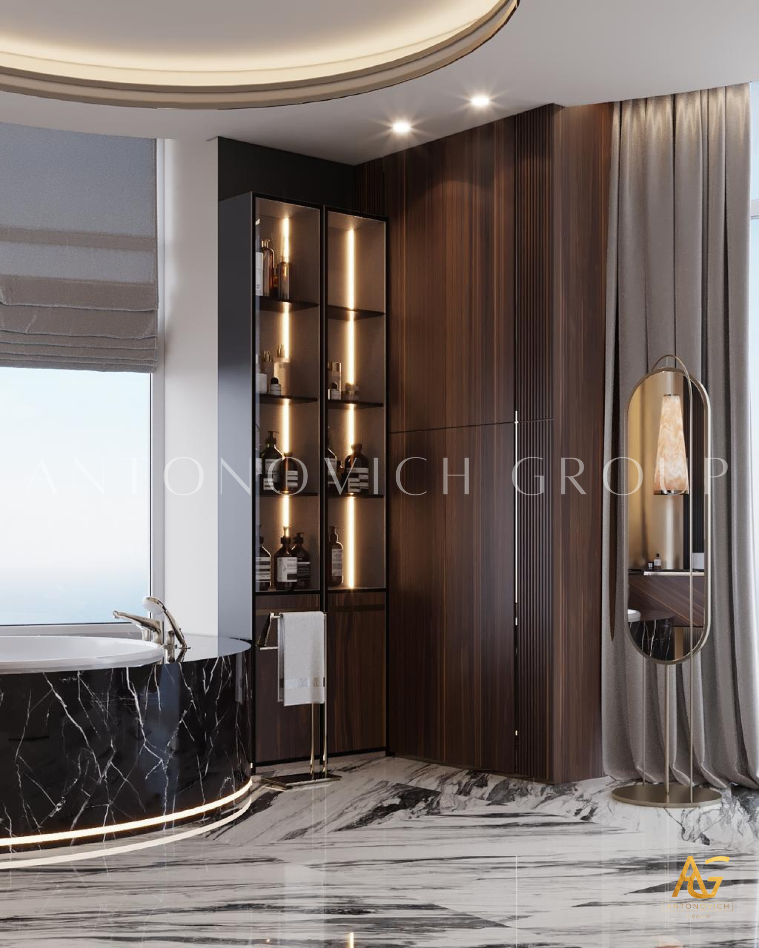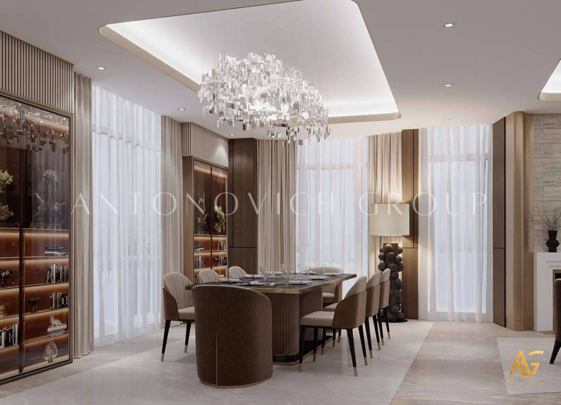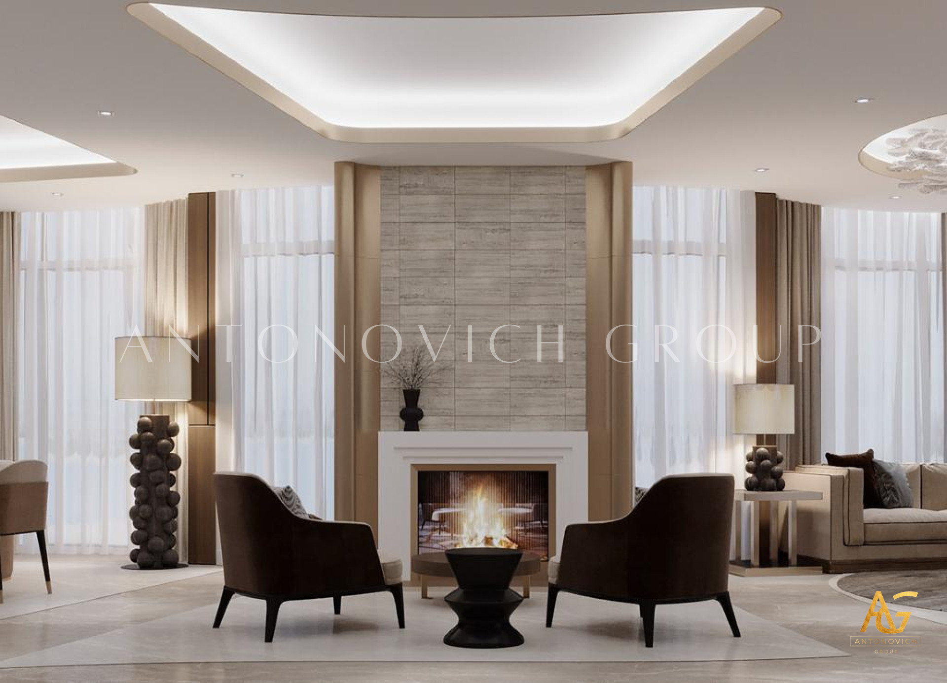 Light and harmony in the luxury concept of the contemporary home design in Abuja create a balance in the life environment. Lightness and easiness of the decoration characterizes the design villa in Nigeria. A beautiful space makes it possible to set perfectly the furniture and expands visually the frontiers of the space. Comfort and convenience are in every corner of the beautiful villa in Abuja. The magnificent hammered railing of the stairway on the first floor emphasizes the architectural expression of the stairs. The construction and shape give just a thrill. The luxury bright columns add grandeur and elegance in the design villa in Abuja. Propping the ceiling, they are like a real elegant work of art, increase the space of the room, giving it a refined aesthetic appearance. The modern design solution in the ceiling light from the turnkey interior design company Dubai Luxury Antonovich Design, is a special integral aspect that emphasizes the common style of the unique architectural designs in Nigeria. The true professionals of the architectural and design studio Luxury Antonovich Design give the festive atmosphere to the room, equipping the suspended structure with the point sources of light. It makes the interior even more exclusive and unique. The crystal chandelier takes a solid place in the designing of the ceiling. This elegant lighting represents the wealth and grandeur of design villa in Abuja. The luxurious furniture is another integral attribute of a cozy interior. An exclusive high-quality textiles from the world leading brands will be a highlight of the turnkey interior design in Abuja. The unique patterns, universally applicable texture look good to the eye and gives an aristocratic and at the same time modern style to the interior. The design company Luxury Antonovich Design creates the real masterpieces in the field of architecture, construction, decoration and landscape.
