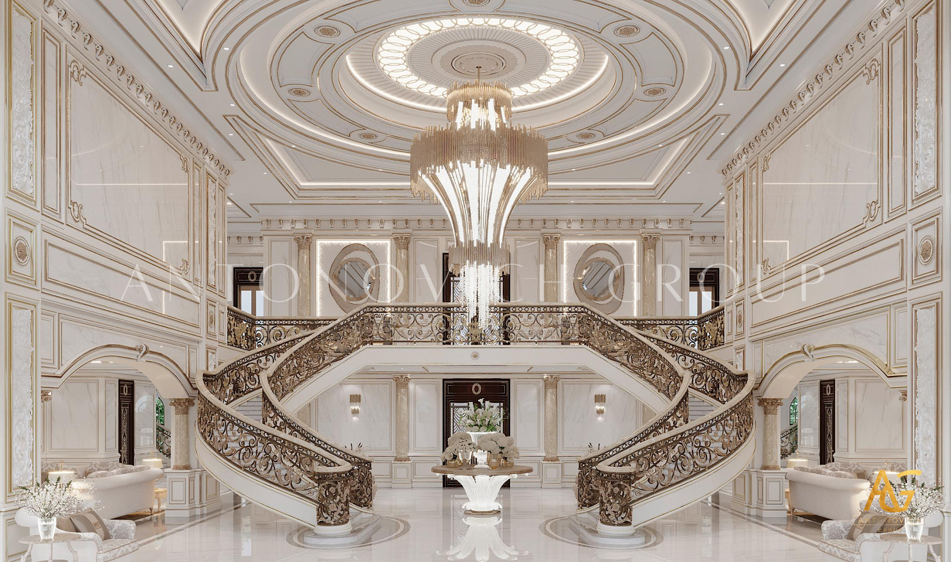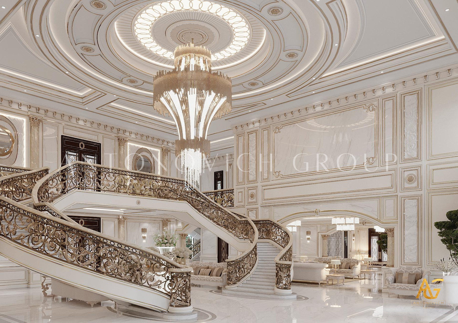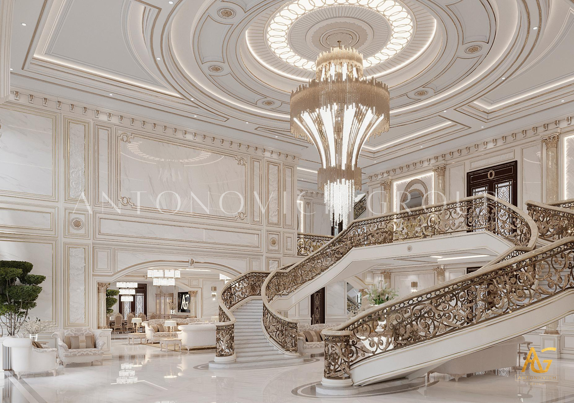 The pleasant palette of cream colors very profitable emphasizes the softness and ease of the interior. A significant role in the creation of artistic expression image plays lighting.Soft lines of illumination distinguish each rung of the ladder, furniture and, of course ceilings. Decisions in the ceiling decor is closely associated with the ladder configuration. Multilevel niches with rounded outlines have become the completed basis for a harmonious ladder portal. The central axis of the hall interior defines a niche with light and elegant chandelier. To make these items more bright and saturated, the interior designers Nairobi offered to design the wall decor with cream-colored decorative plaster with a matte effect. beautiful house plans from Luxury Antonovich Design is always unique solutions, which are devoted to each individual family.