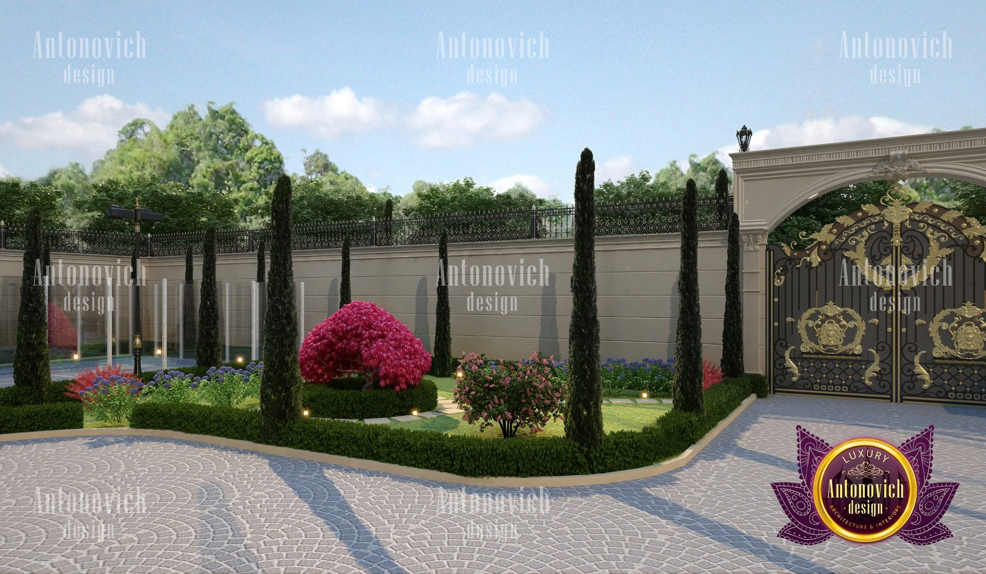 Brightness is measured in pleasure received from what you see. Colors possess incredible strength and are able to change the viewed picture into something stunningly great and astonishing. Flowers take a big and one of the most significant places in exterior design and landscaping ideas of gardening. That is why the Luxury Antonovich Design Company chooses only the best species from the newest international floristic exhibitions where you can find the latest novelties of plants, technologies and equipment. All the outdoor flowers decorations are ideally matched to a wide range of your exquisite taste and preferences. Our company uses only special plants materials and flowers to create a balanced composition with a pleasing harmony. These elements can be read as the artwork and fully respected and implemented all the floral principles.