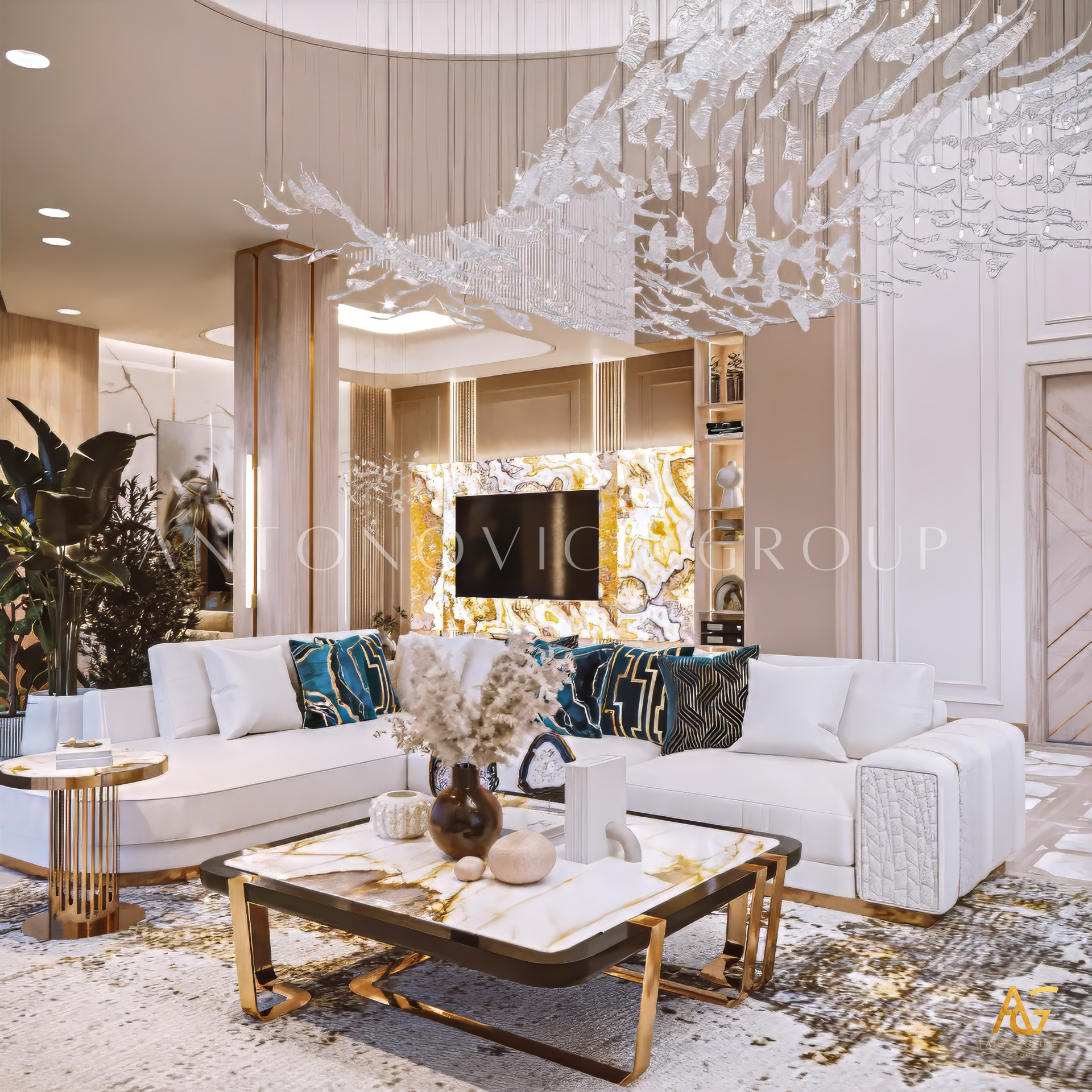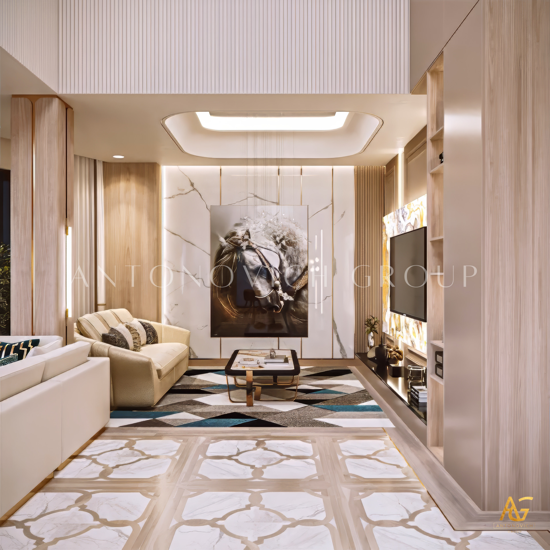 The mood of the luxury living room interior design has a great sight with its gold and maroon sensations. The color scheme complements each other nicely. Every aspect of the space has been intended to provide you with the most enjoyable experience possible. Its like staying in a five-star hotel. Luxury interior design is an area of competence for Luxury Antonovich Design. This is the ideal interior design for you and your way of life. The luxury living room interior design, together with the luxury lighting, complement one other nicely. You will enjoy a luxurious room like this!