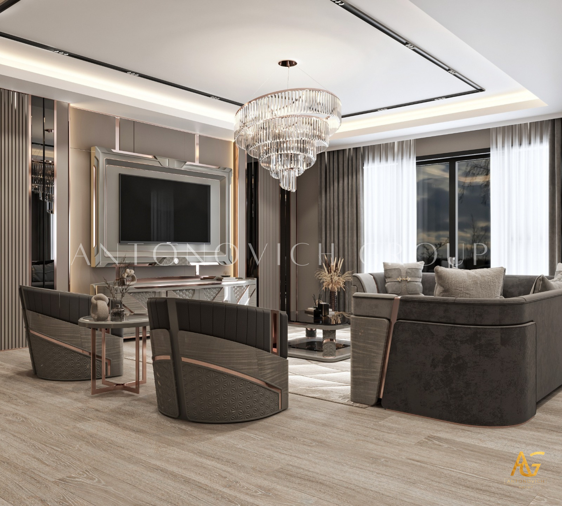 At Antonovich Group, we understand the importance of living room interior design and furniture production. We believe that every home is unique, and so is every individual's taste and preference. That is why we offer customized solutions to help you create the living room of your dreams. Our team of experienced designers and craftsmen work closely with clients to understand their needs, preferences, and lifestyle. We believe that communication is key to achieving the desired outcome, and so ensure that every client is involved in the design process.