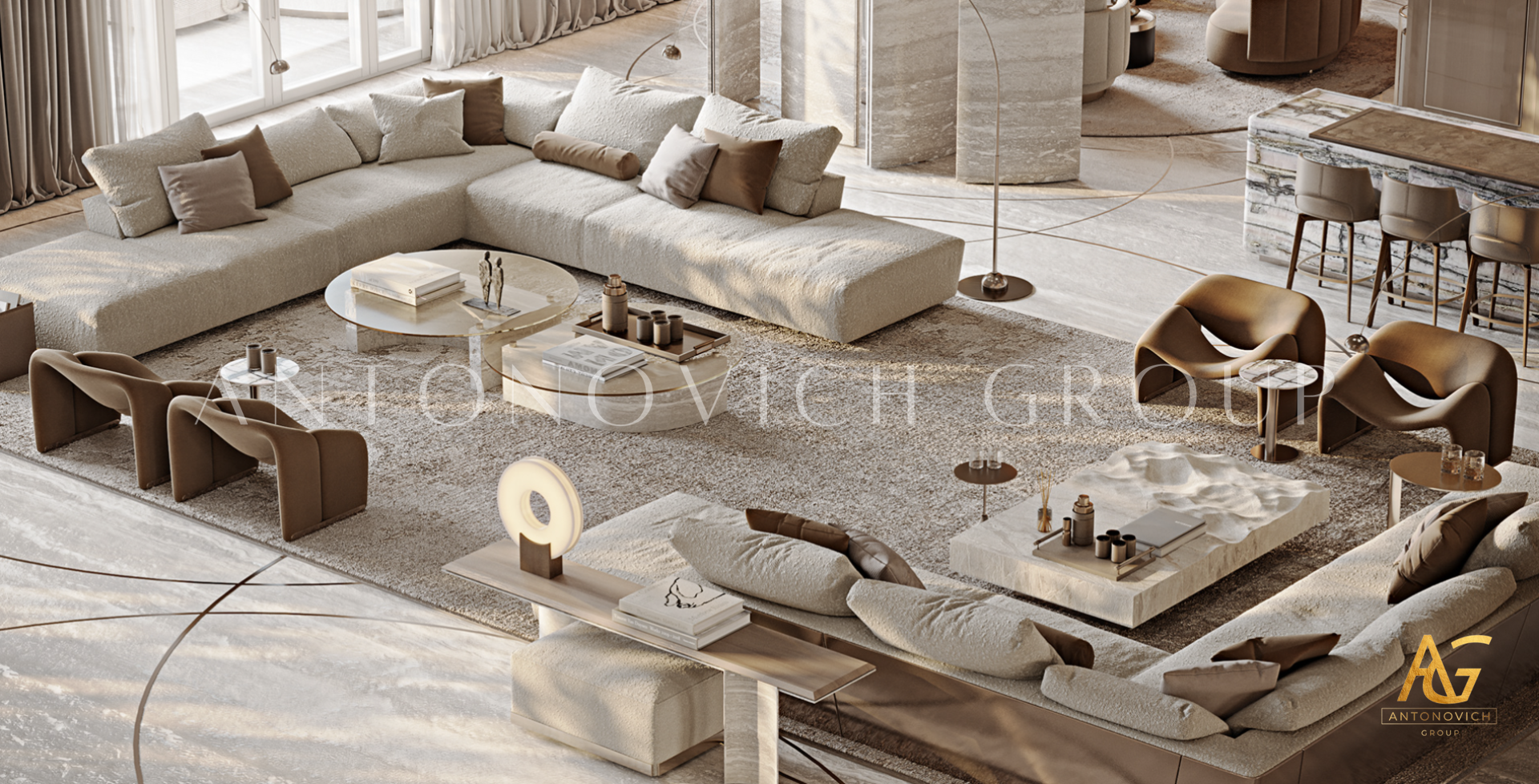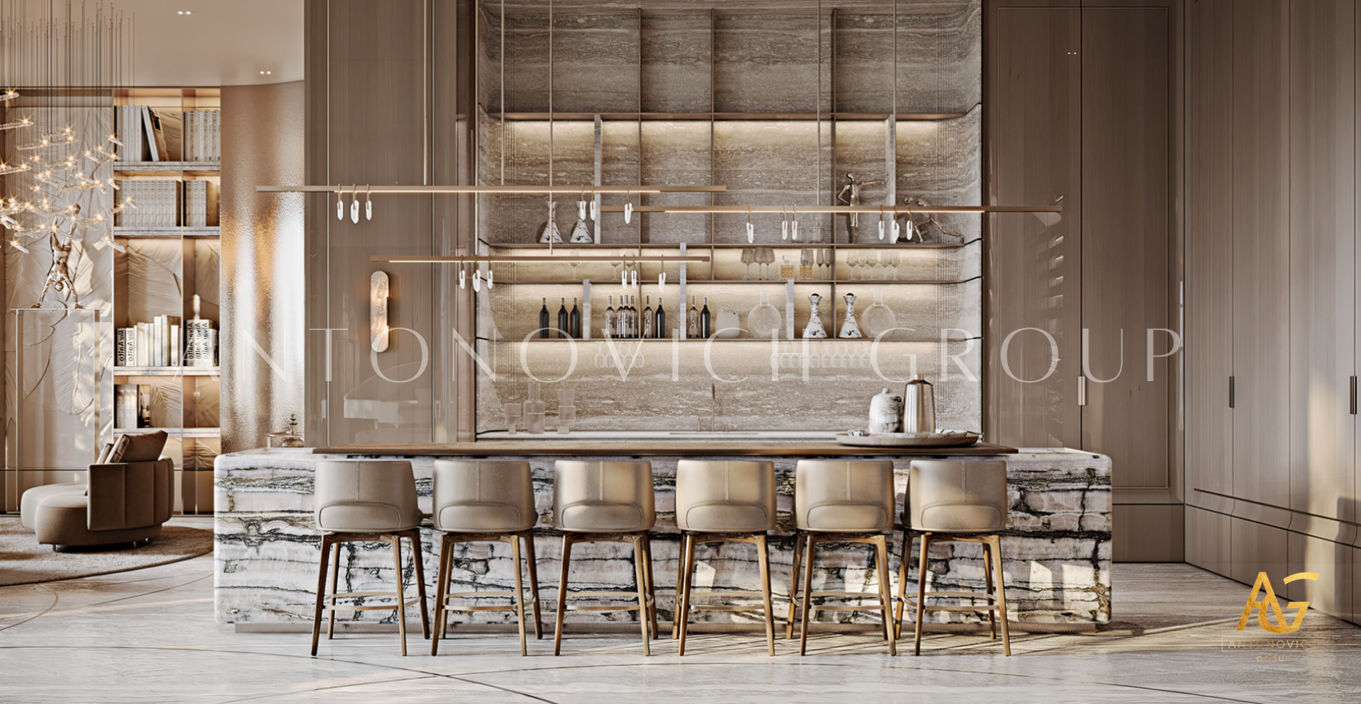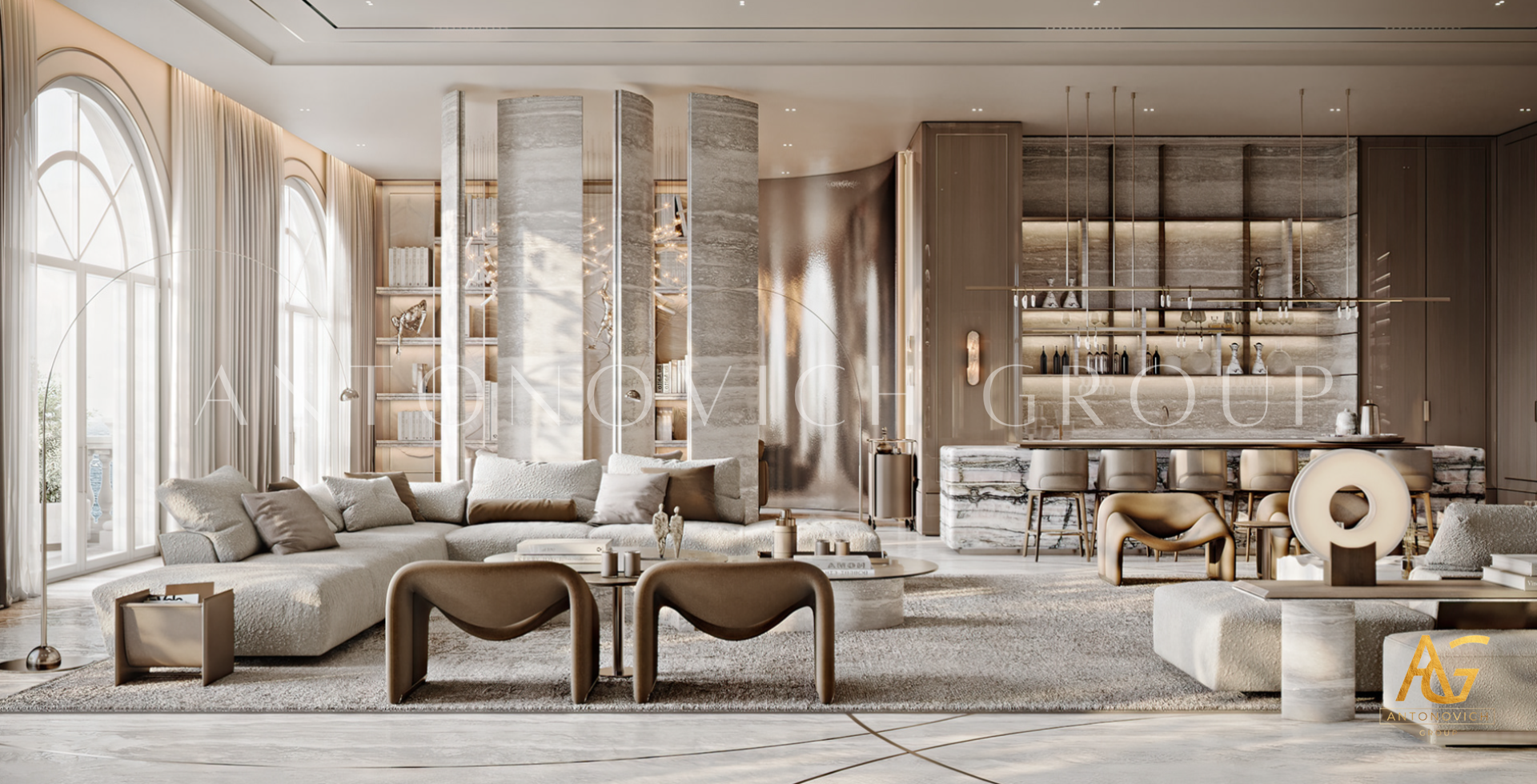 Luxury Antonovich Design understands that luxury is more than just putting on expensive stuff. It is a lifestyle. With this creation, the company has crafted the best of the best details for the completion of the project. Beautiful veranda with relaxing sofa and center table, a huge and spacious living area. A place to relax with its beautiful infinity pool. Contemporary and modern bedrooms were also utilized to give the perfect ambiance. Its magnificent and luxurious furniture was also put in place to add to the beautiful interior design. With its huge layout and beautiful finishing, staying here feels like you are on top of the world.