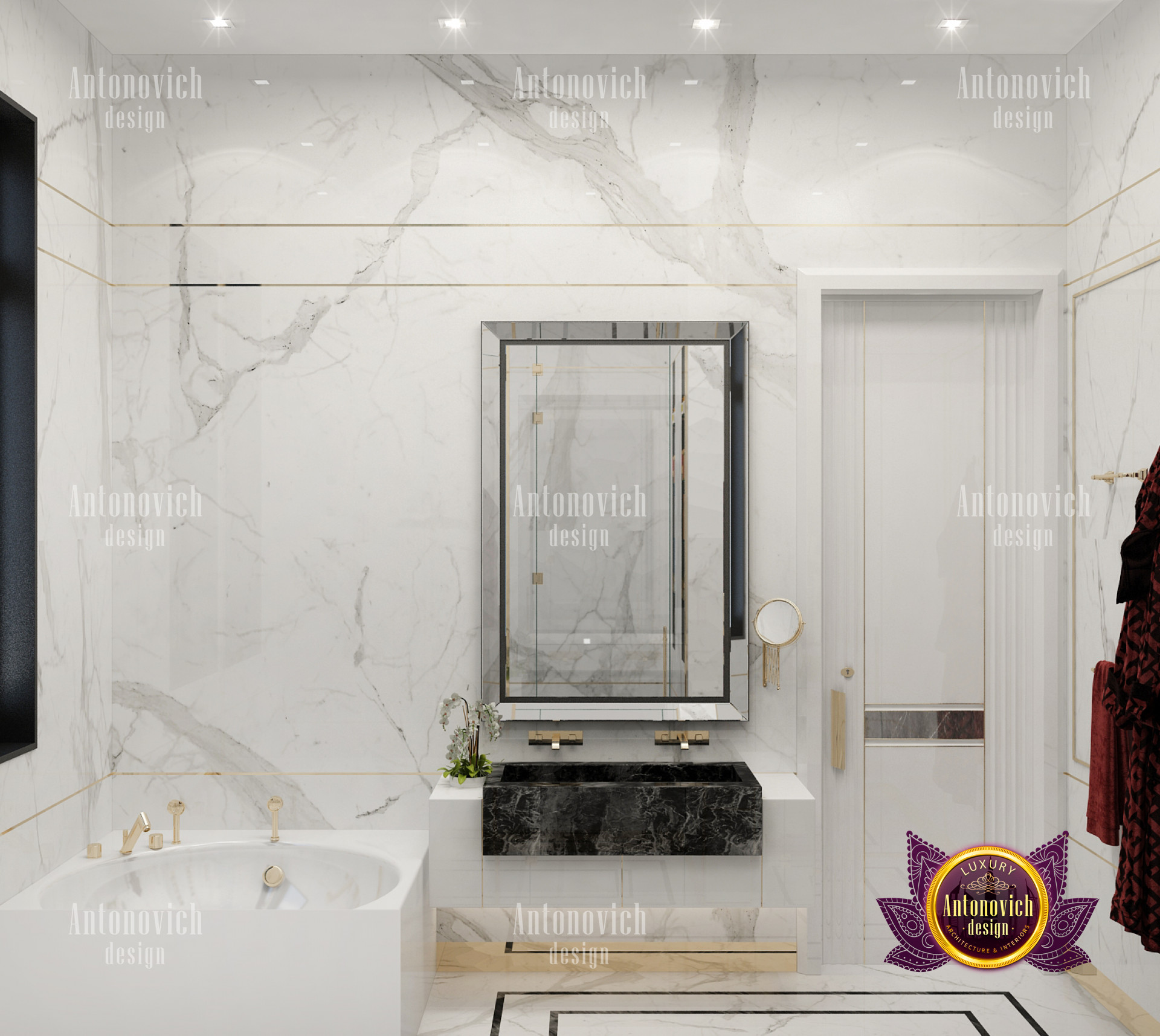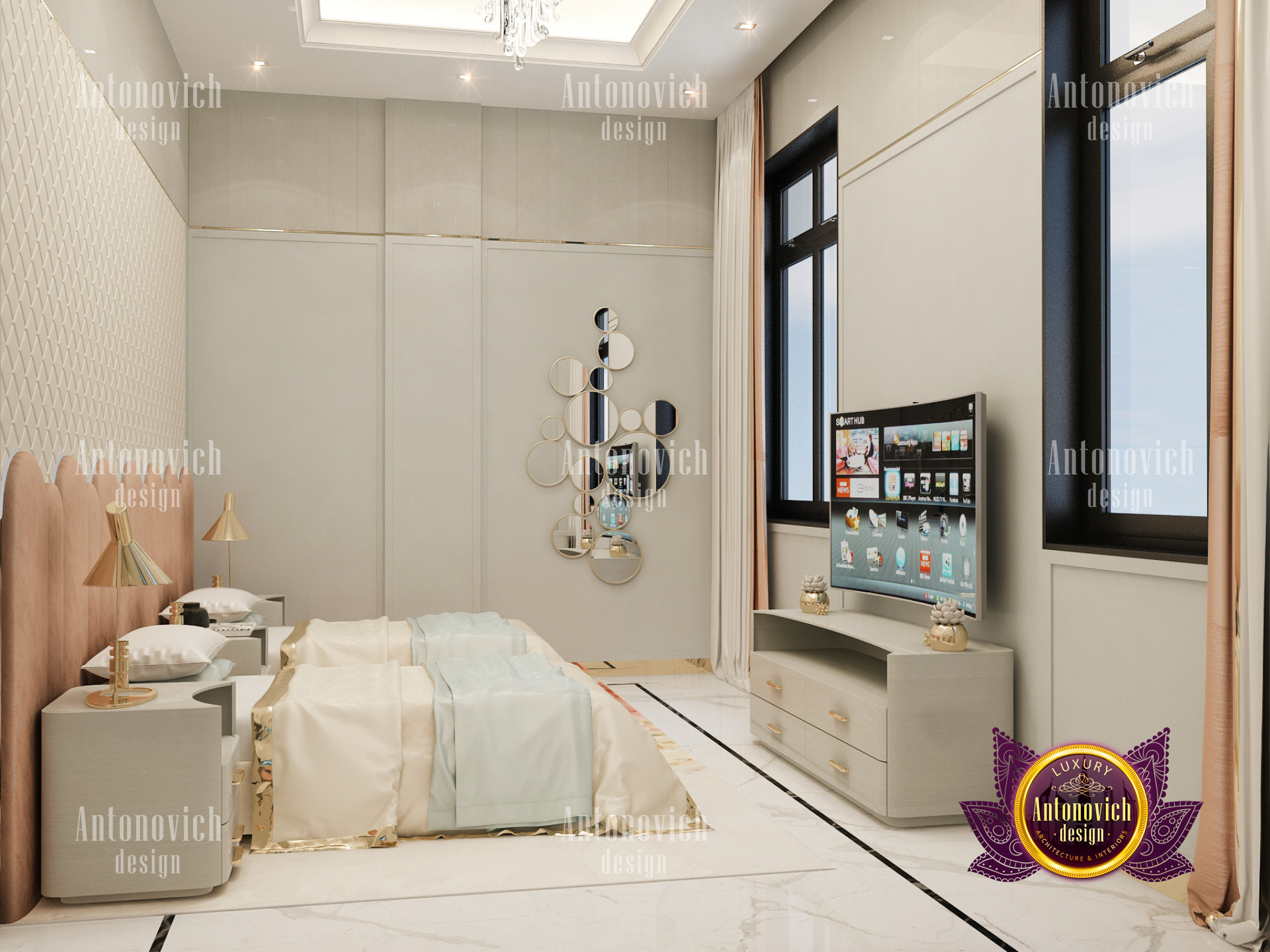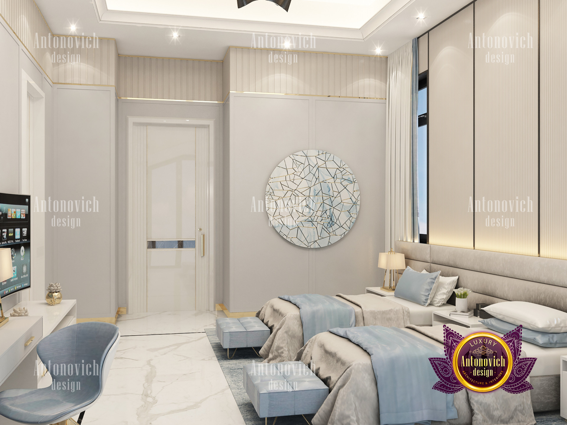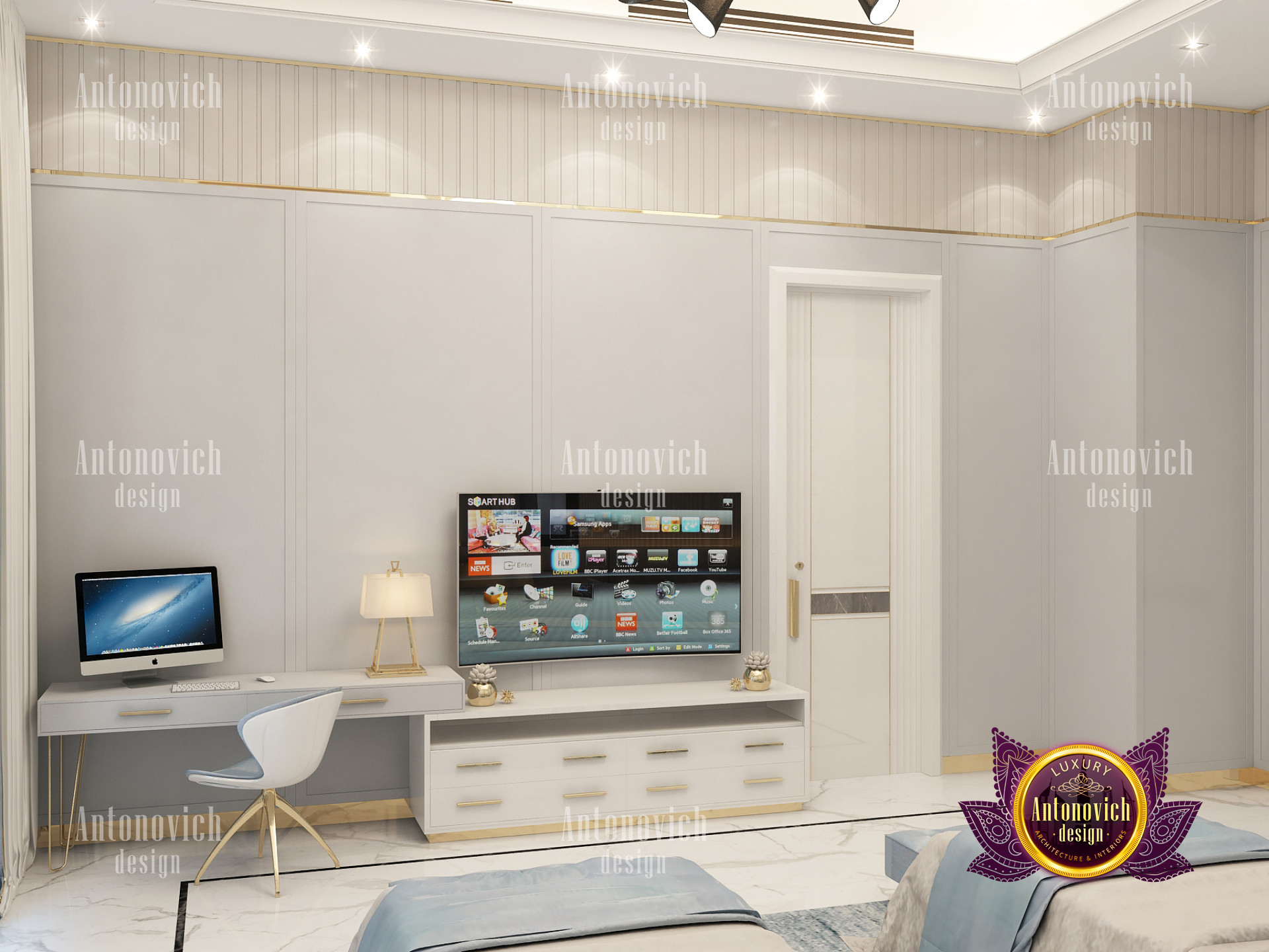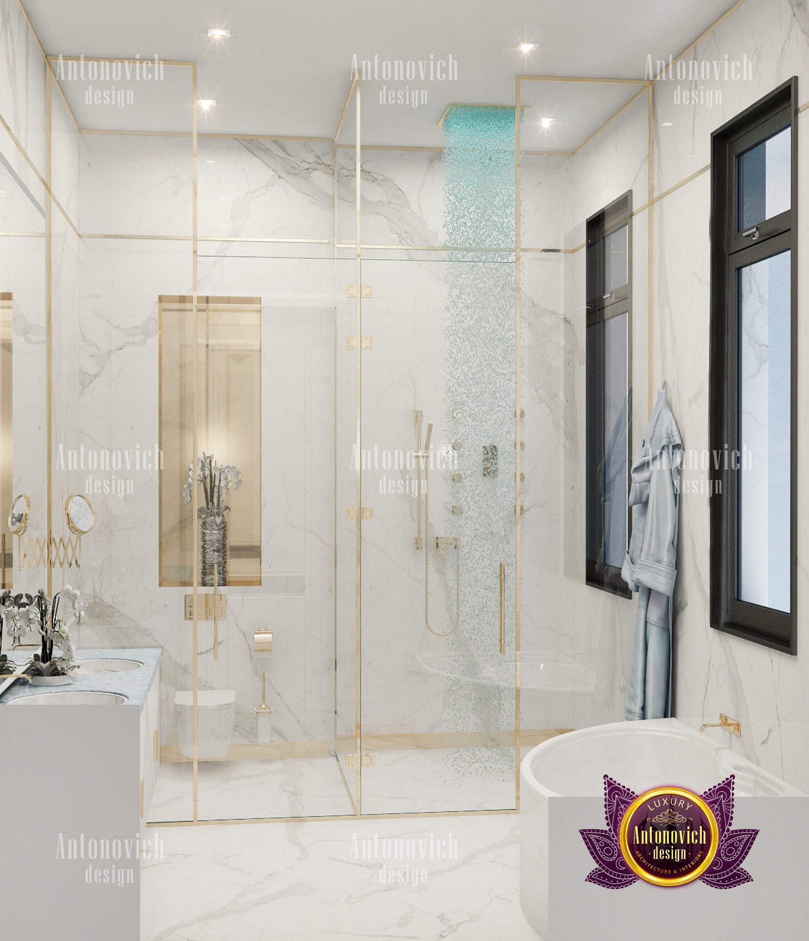 A bedroom is full of luxurious elements that you and your family require. It has every piece of furniture required for a luxurious bedroom. The gold embellishments are very stunning. The bed is stunning on its own. One of the most beautiful headboards weve ever made. The bedsheets are likewise adorned with opulent embellishments. A nice bedroom with a great Dubai Hills view is something that everyone wishes for. This magnificent design, designed by the countrys greatest interior designer, Luxury Antonovich Design, oozes class and elegance. The view from the bedroom is spectacular, and waking up to such opulence is a dream come true.