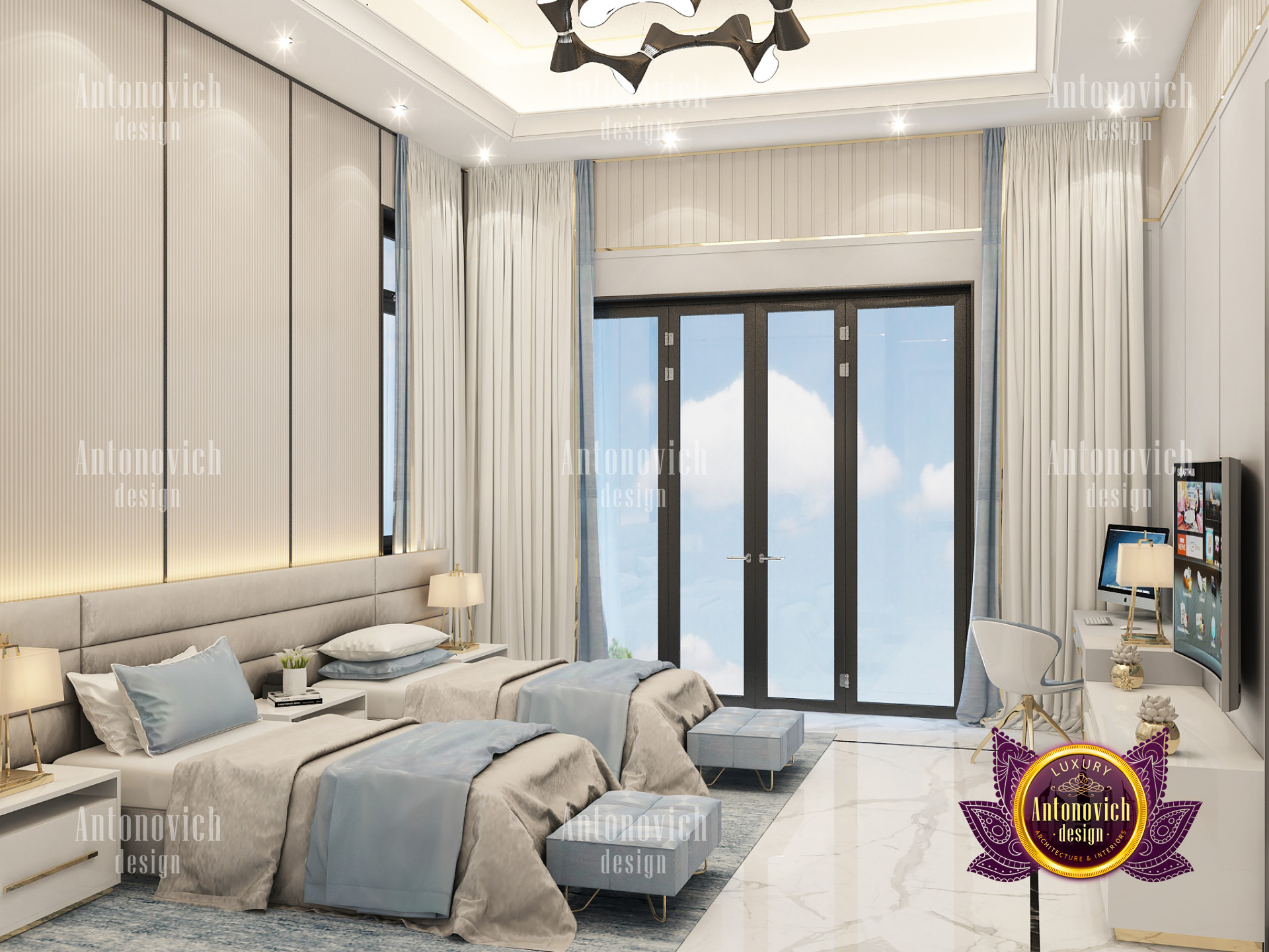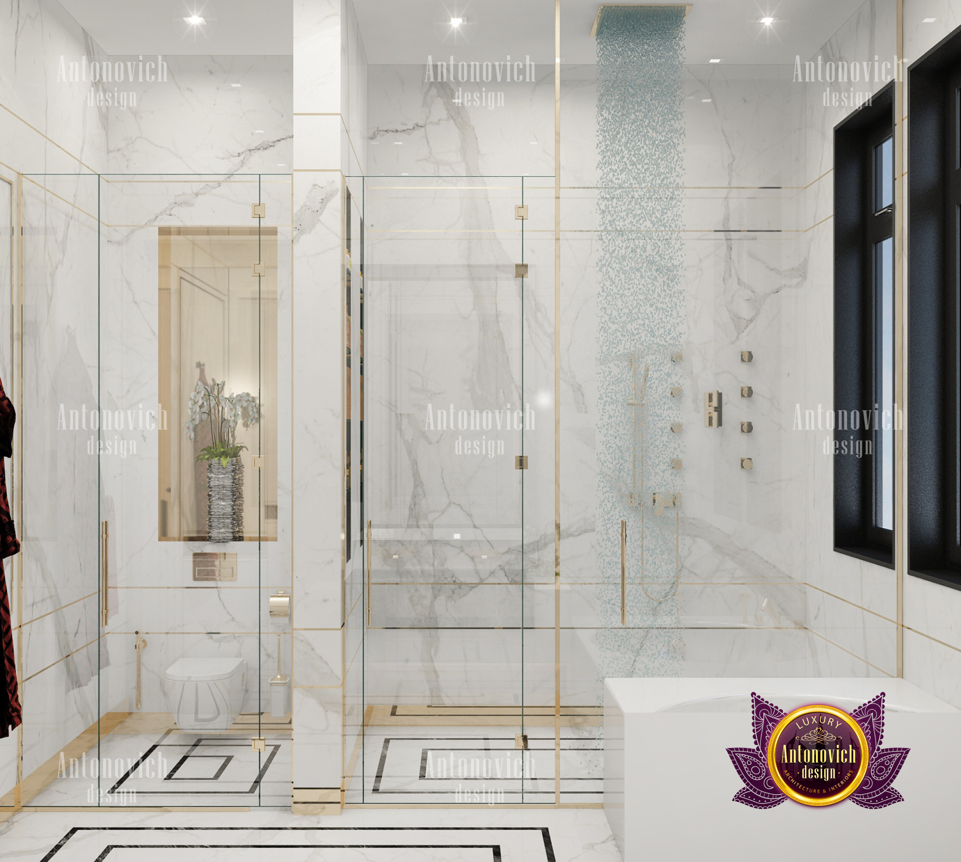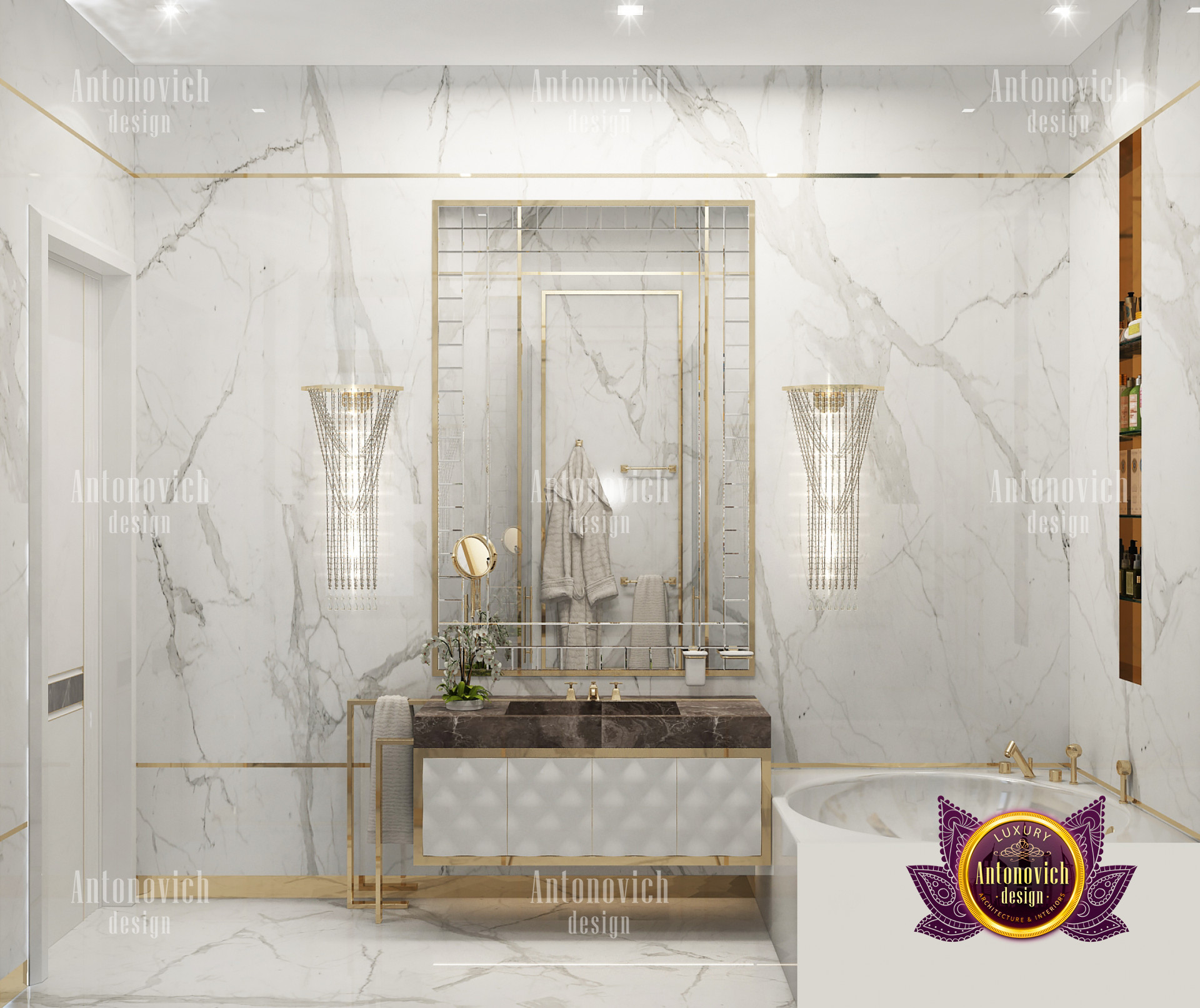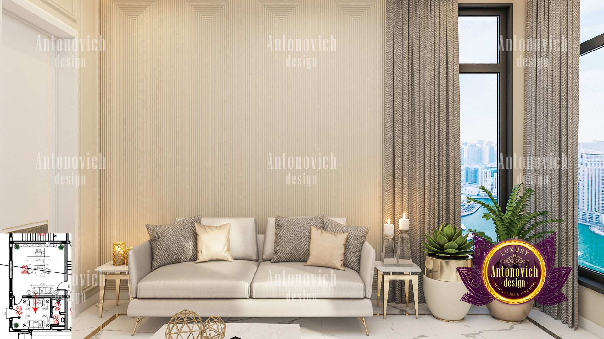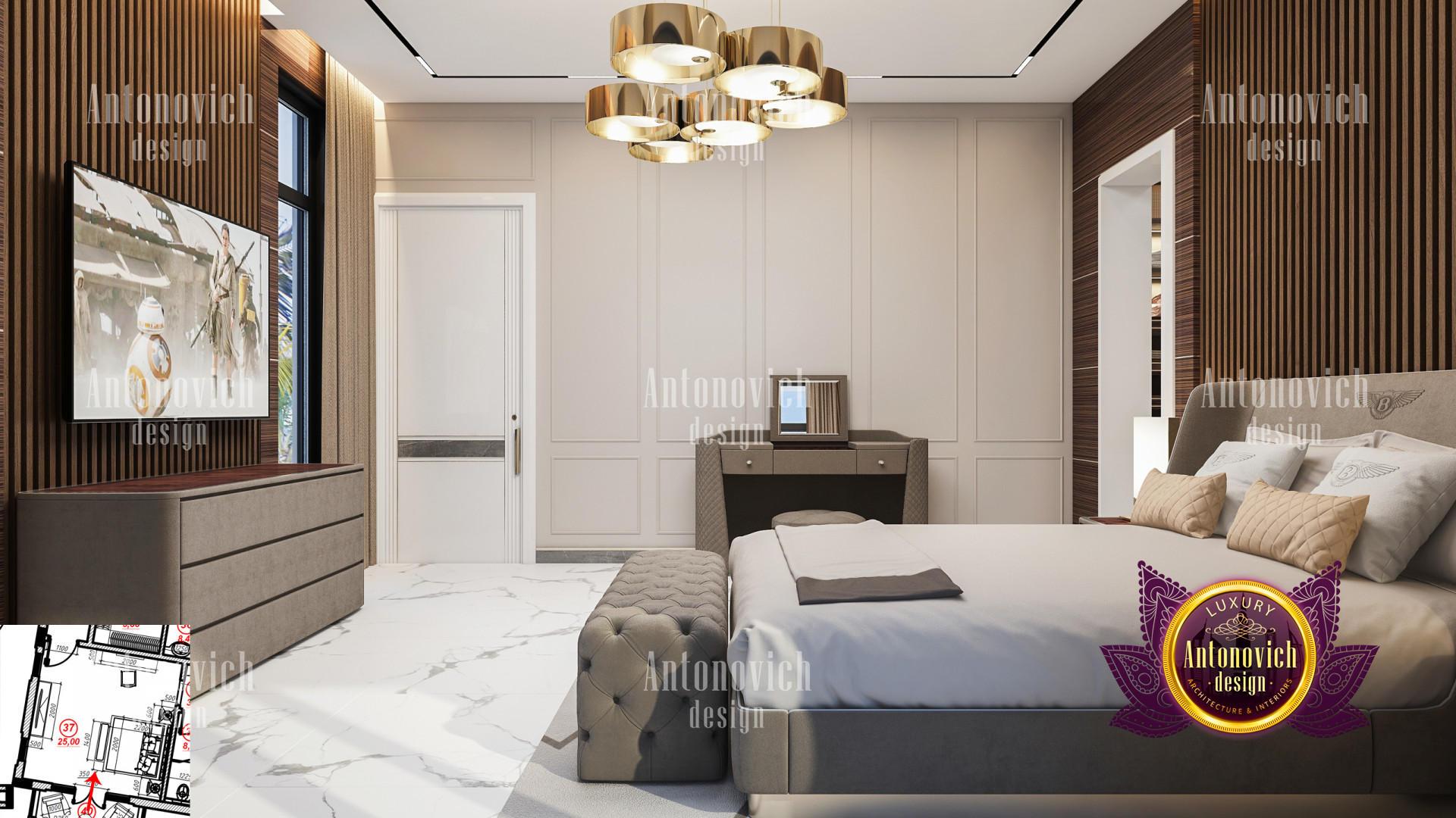 A bedroom is full of luxurious elements that you and your family require. It has every piece of furniture required for a luxurious bedroom. The gold embellishments are very stunning. The bed is stunning on its own. One of the most beautiful headboards weve ever made. The bedsheets are likewise adorned with opulent embellishments. A nice bedroom with a great Dubai Hills view is something that everyone wishes for. This magnificent design, designed by the countrys greatest interior designer, Luxury Antonovich Design, oozes class and elegance. The view from the bedroom is spectacular, and waking up to such opulence is a dream come true.