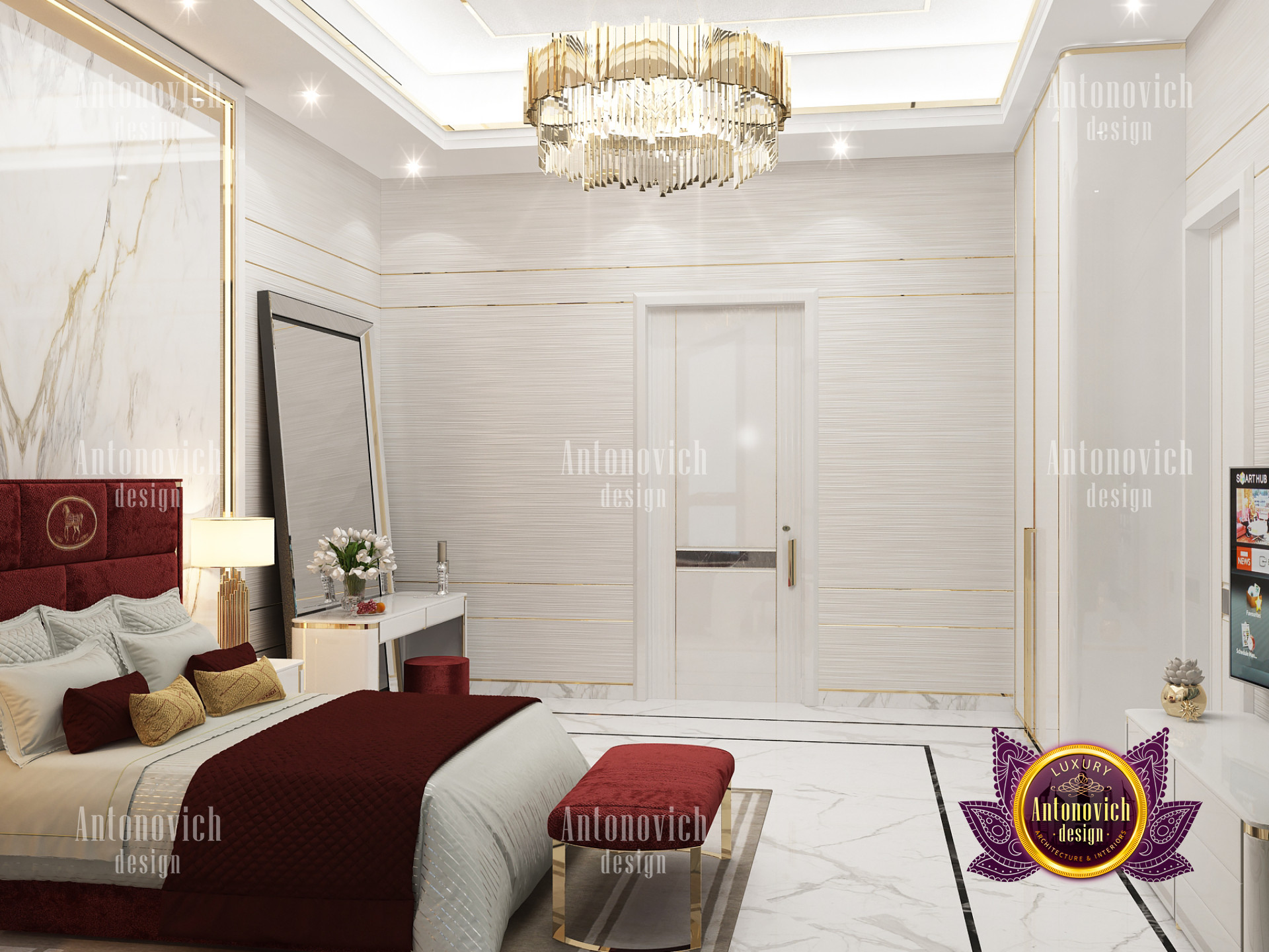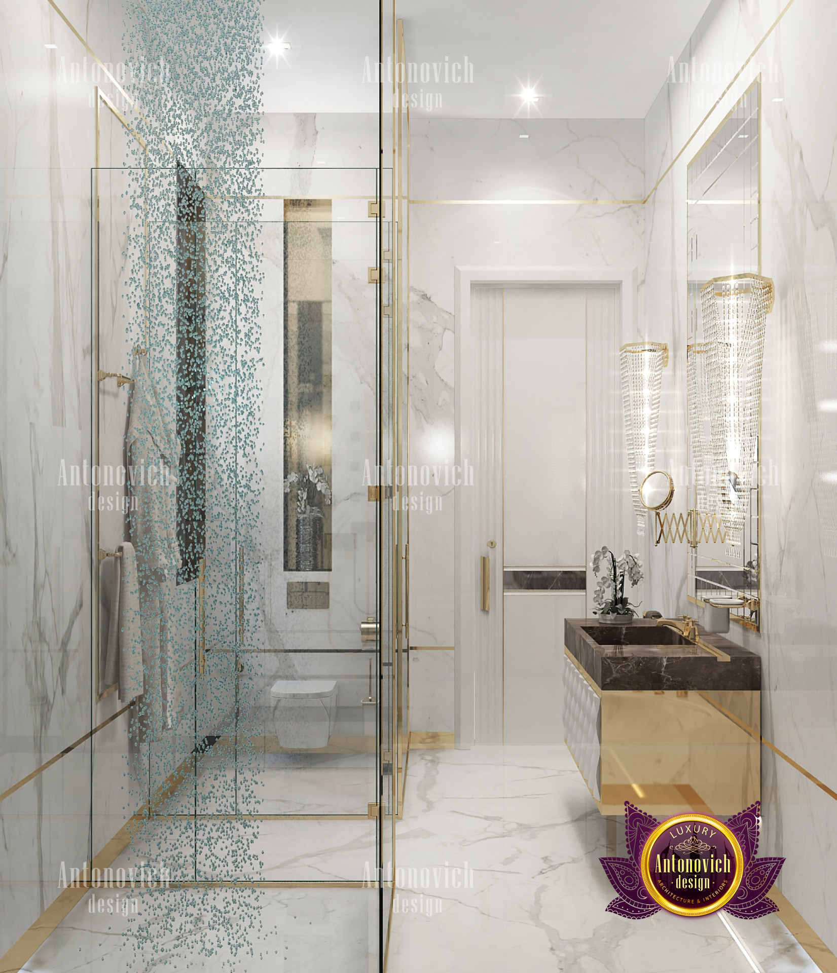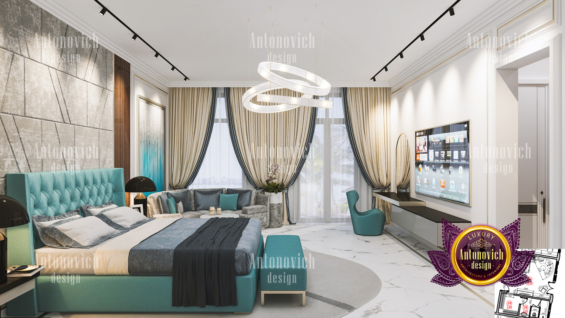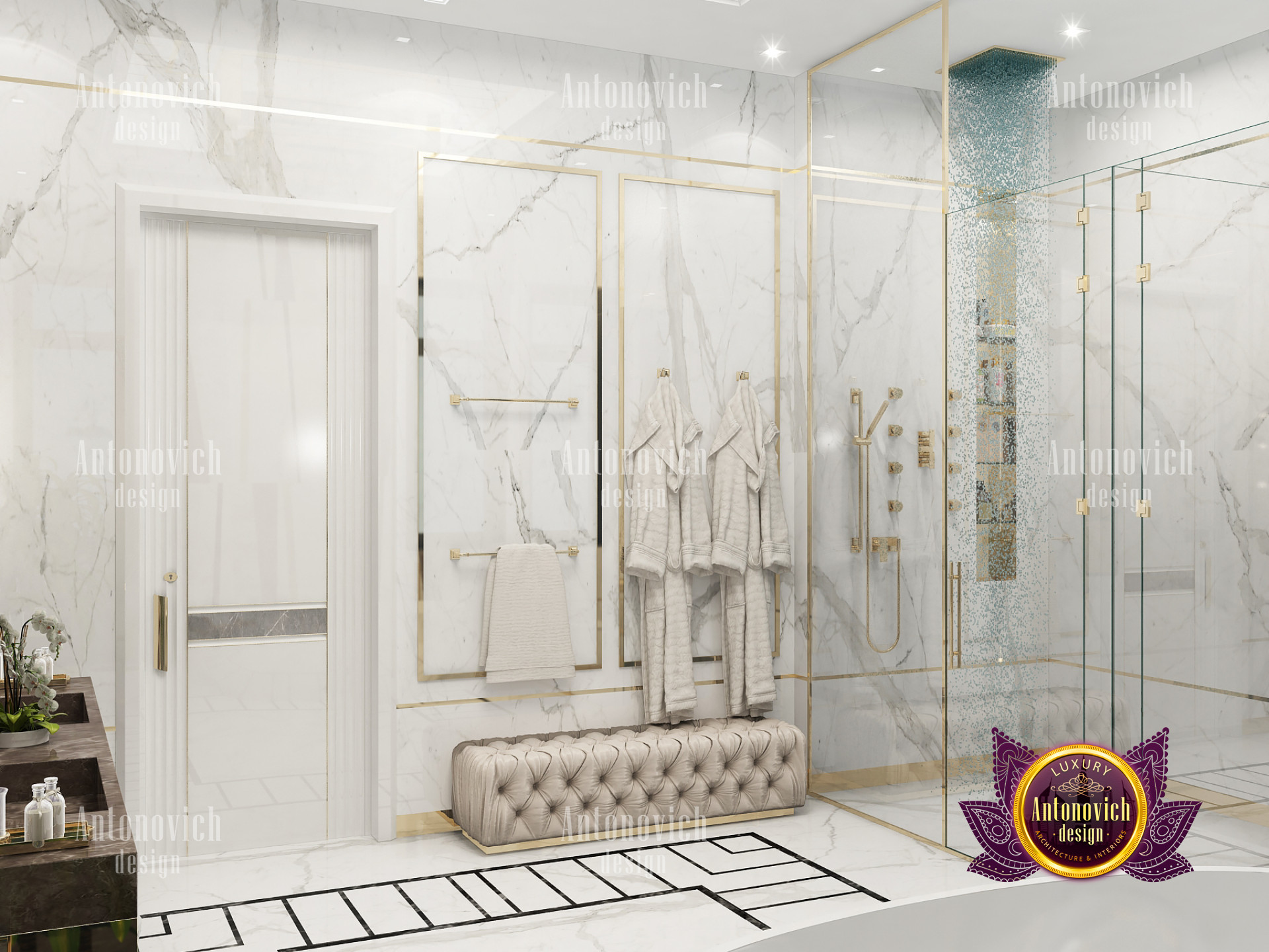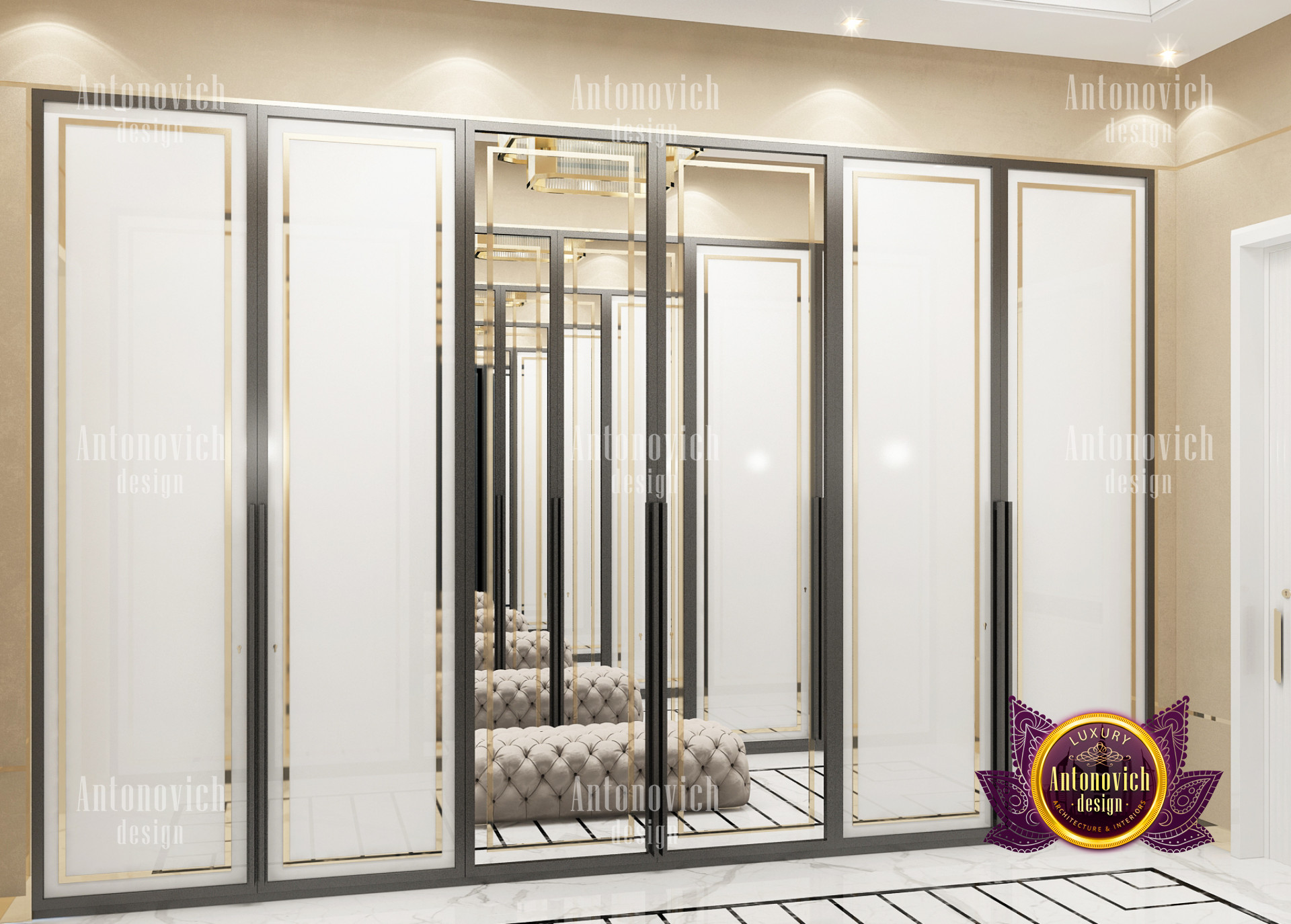 A bedroom is full of luxurious elements that you and your family require. It has every piece of furniture required for a luxurious bedroom. The gold embellishments are very stunning. The bed is stunning on its own. One of the most beautiful headboards weve ever made. The bedsheets are likewise adorned with opulent embellishments. A nice bedroom with a great Dubai Hills view is something that everyone wishes for. This magnificent design, designed by the countrys greatest interior designer, Luxury Antonovich Design, oozes class and elegance. The view from the bedroom is spectacular, and waking up to such opulence is a dream come true.