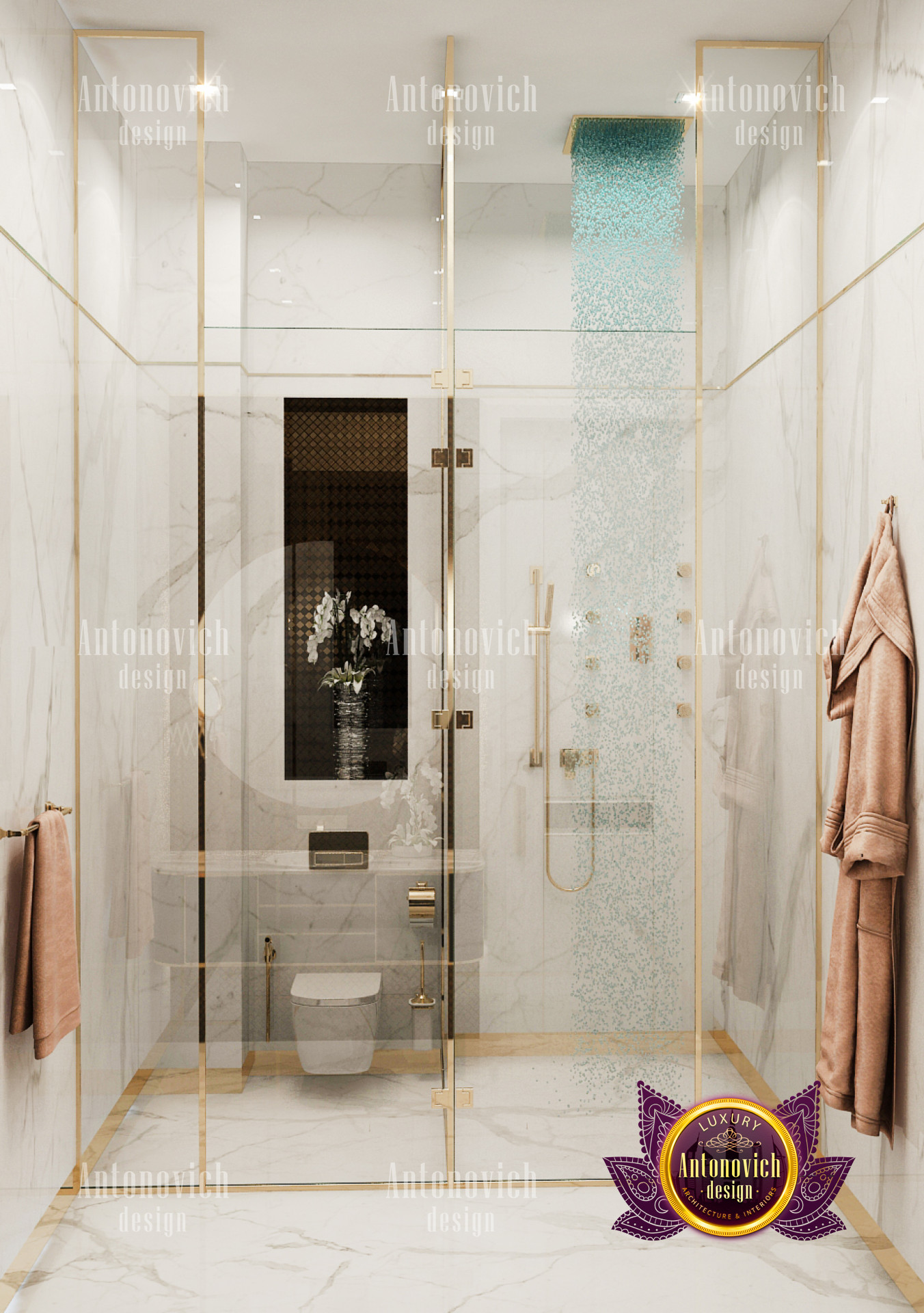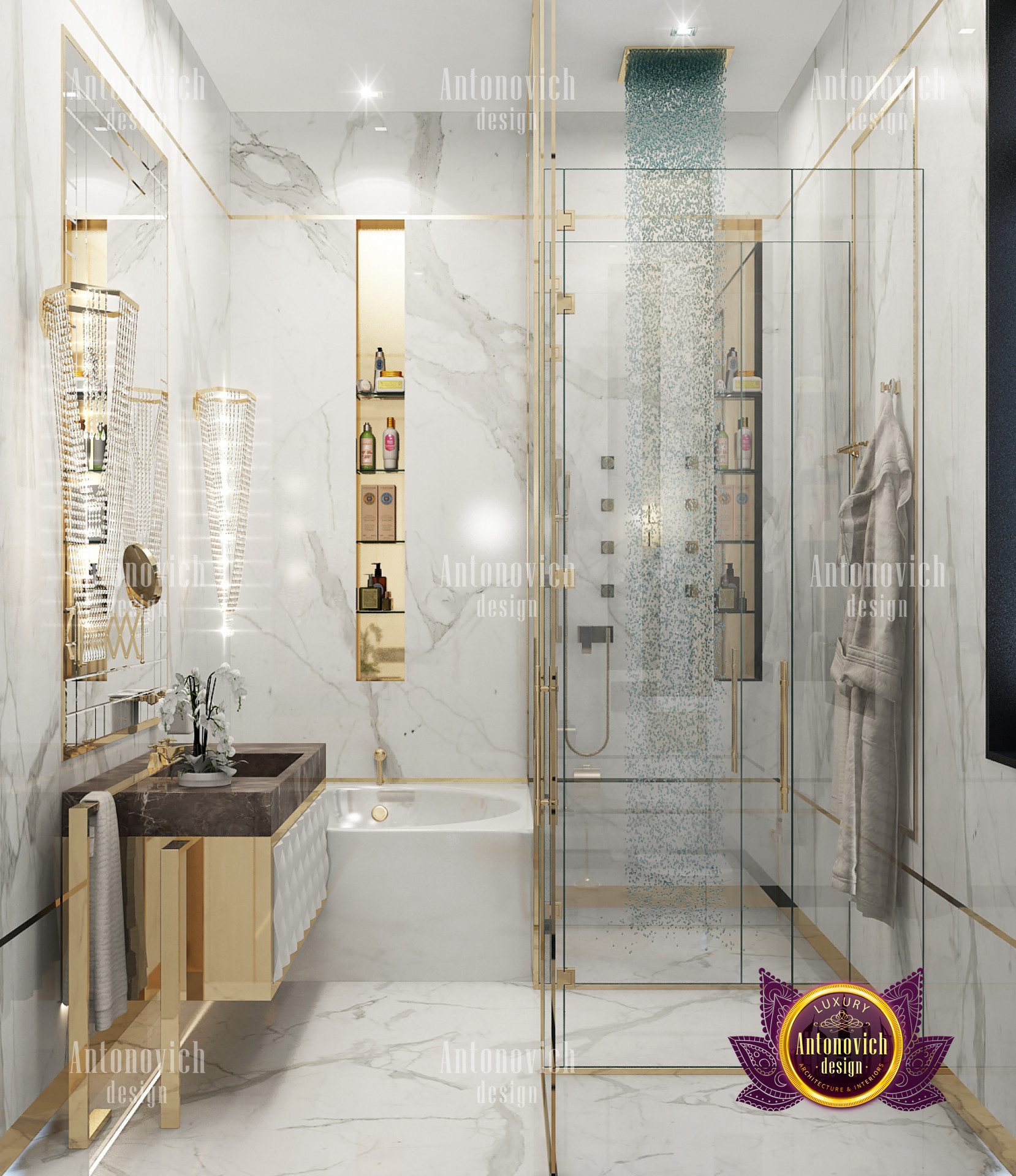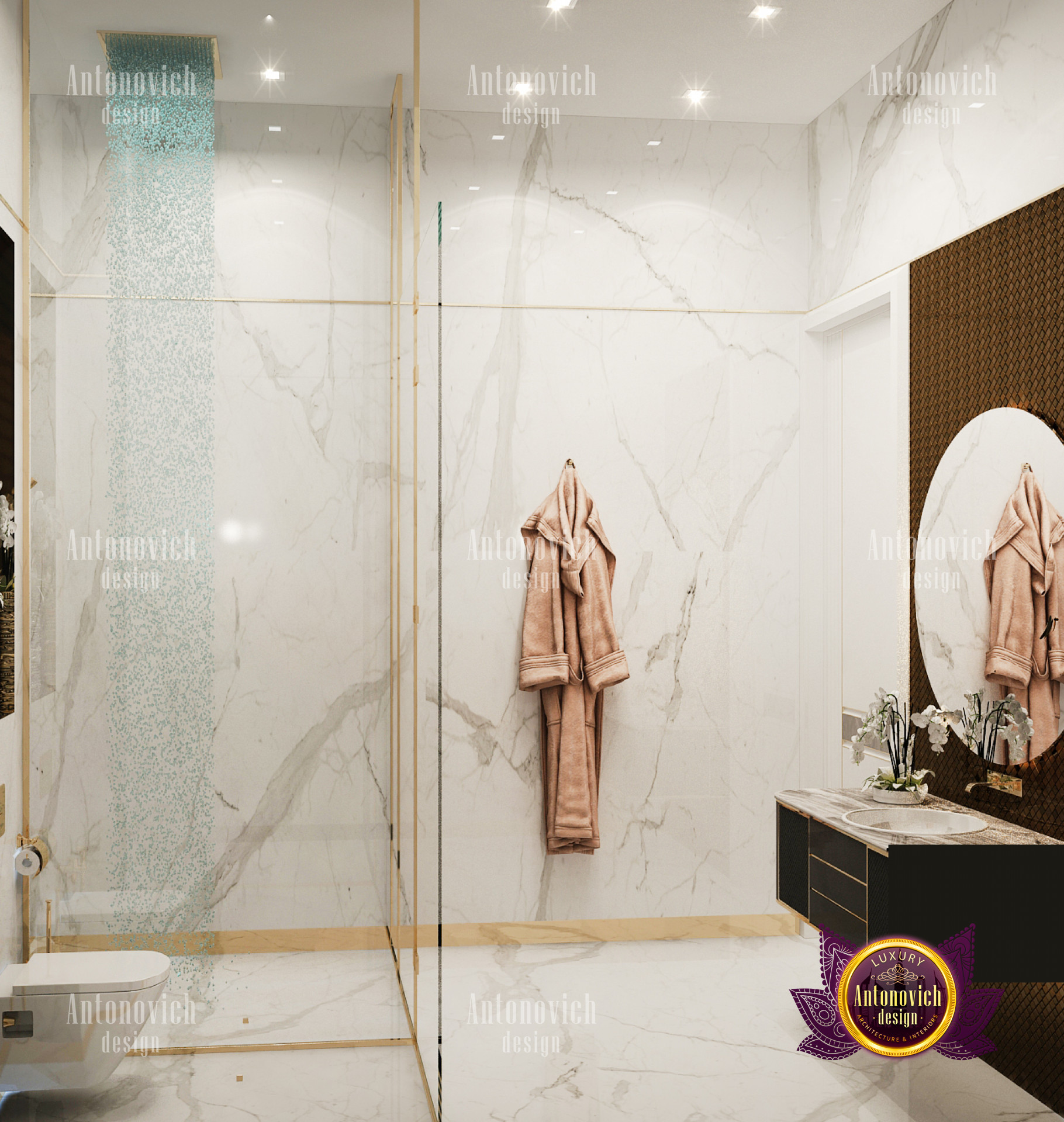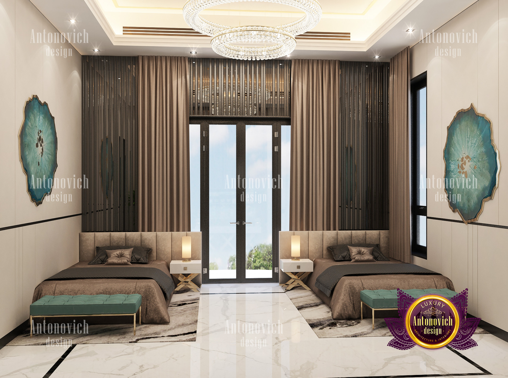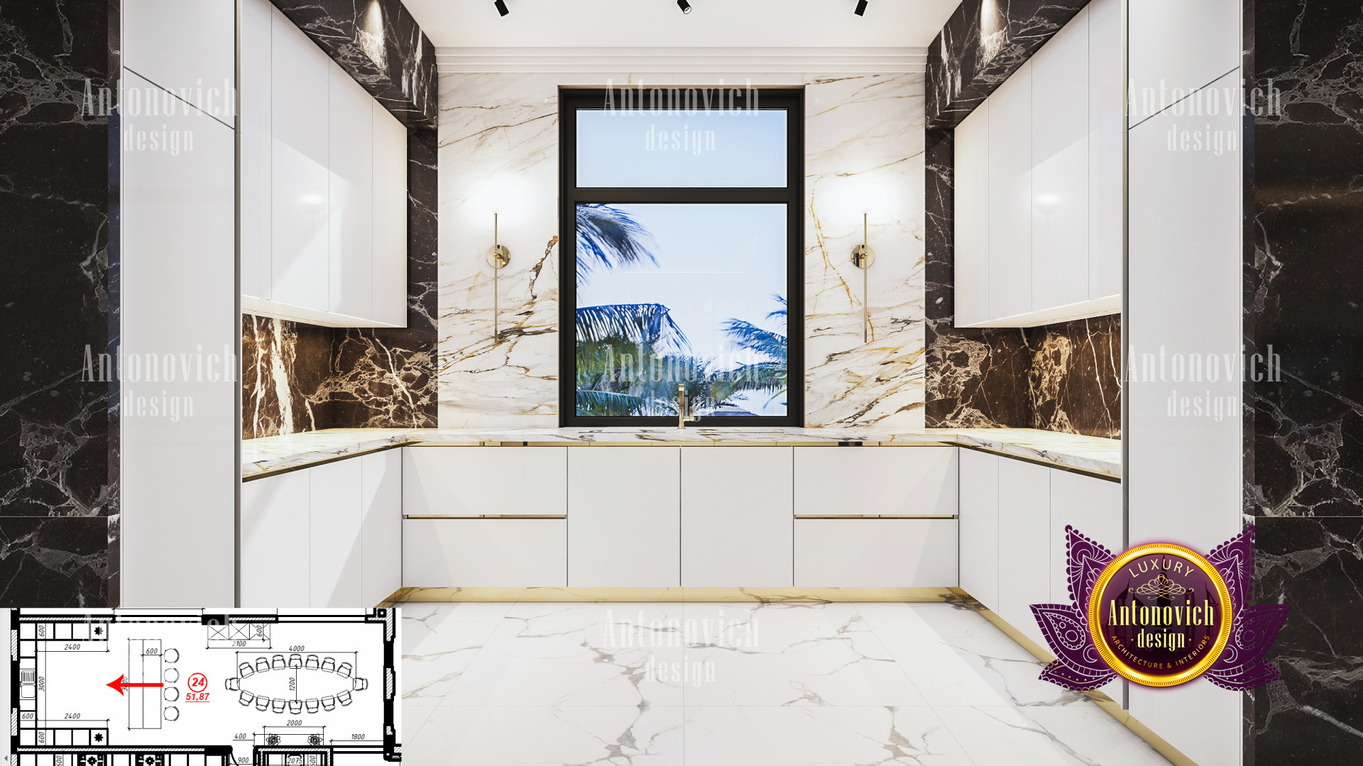 A bedroom is full of luxurious elements that you and your family require. It has every piece of furniture required for a luxurious bedroom. The gold embellishments are very stunning. The bed is stunning on its own. One of the most beautiful headboards weve ever made. The bedsheets are likewise adorned with opulent embellishments. A nice bedroom with a great Dubai Hills view is something that everyone wishes for. This magnificent design, designed by the countrys greatest interior designer, Luxury Antonovich Design, oozes class and elegance. The view from the bedroom is spectacular, and waking up to such opulence is a dream come true.
