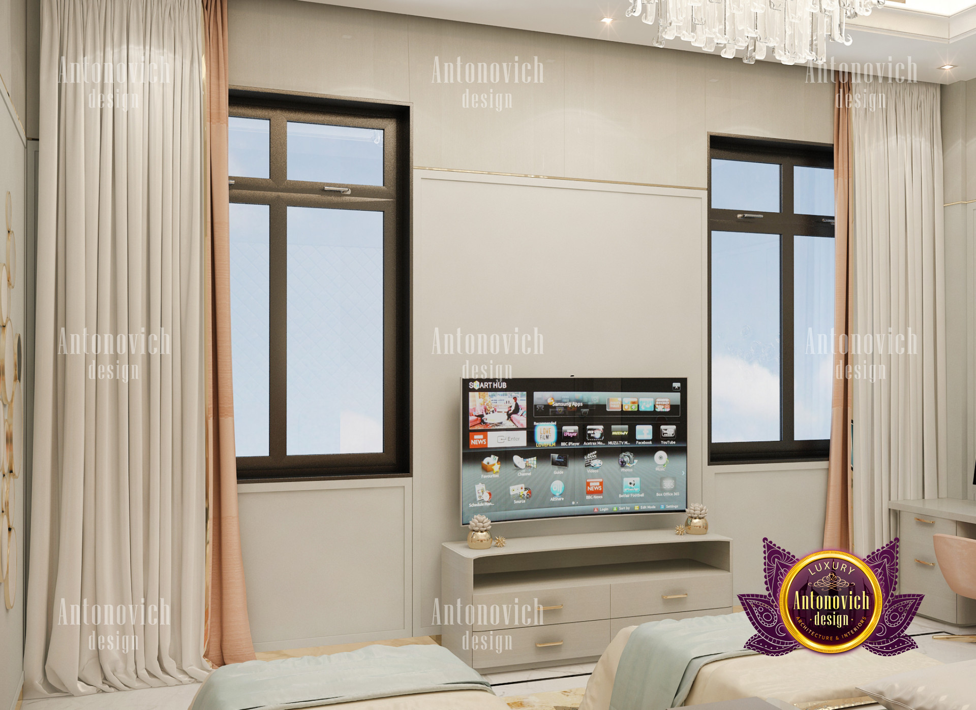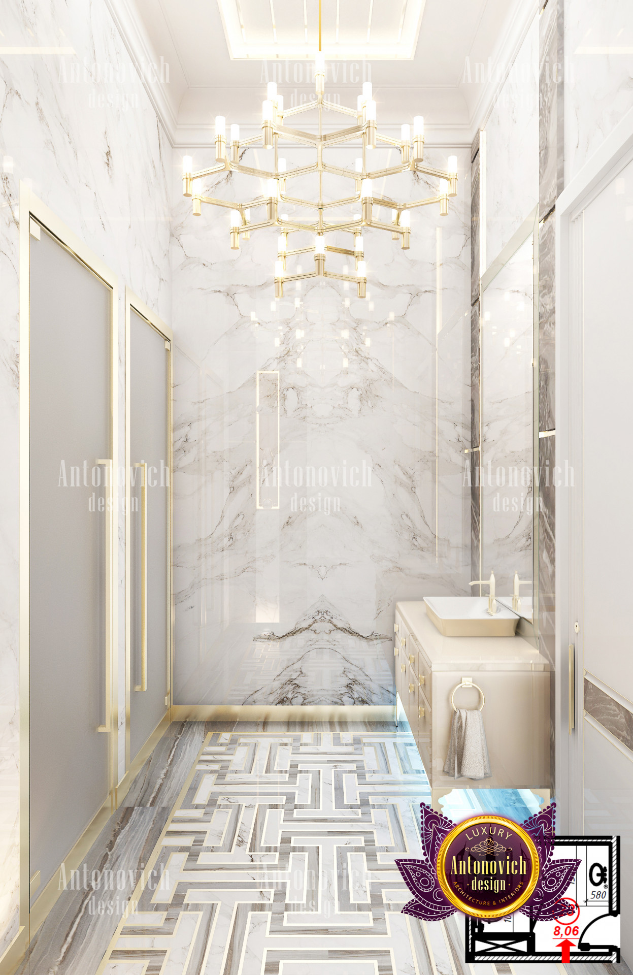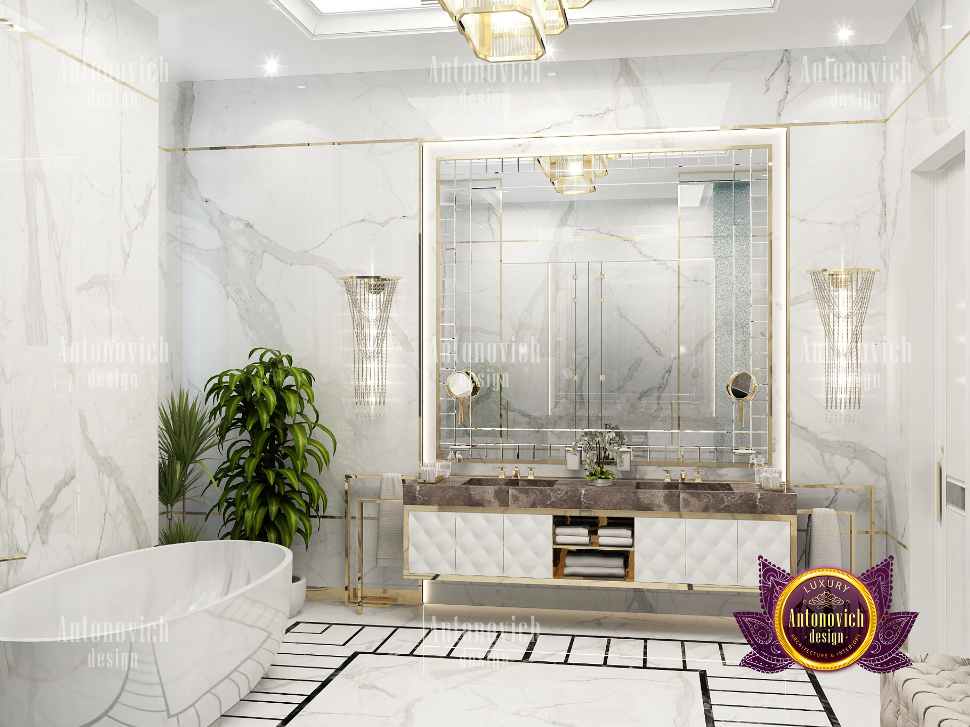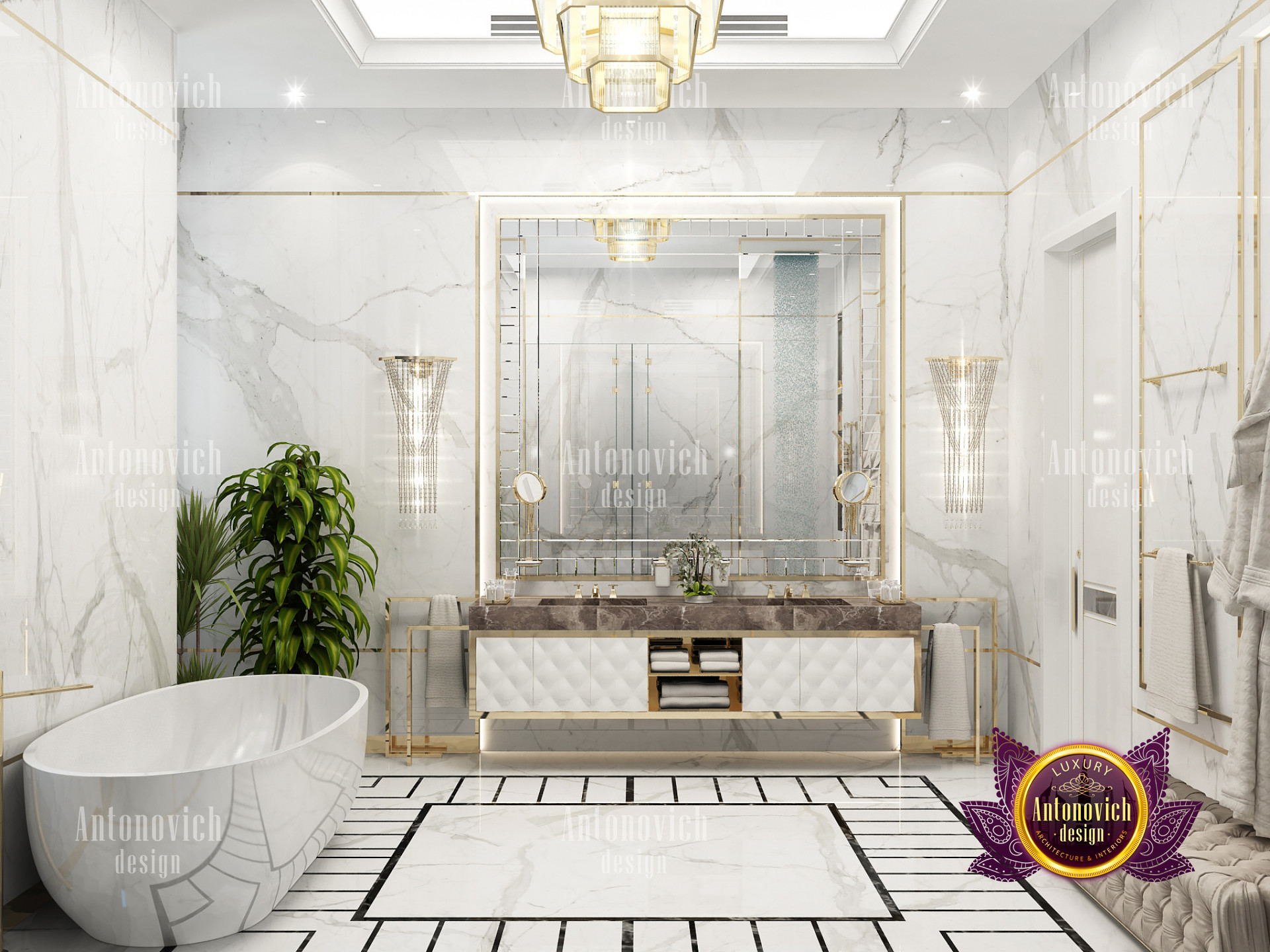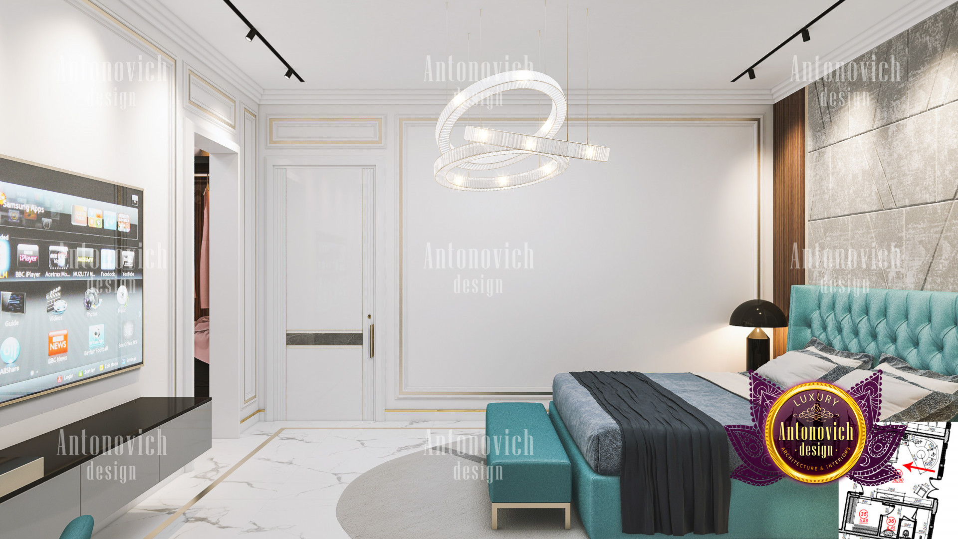 A bedroom is full of luxurious elements that you and your family require. It has every piece of furniture required for a luxurious bedroom. The gold embellishments are very stunning. The bed is stunning on its own. One of the most beautiful headboards weve ever made. The bedsheets are likewise adorned with opulent embellishments. A nice bedroom with a great Dubai Hills view is something that everyone wishes for. This magnificent design, designed by the countrys greatest interior designer, Luxury Antonovich Design, oozes class and elegance. The view from the bedroom is spectacular, and waking up to such opulence is a dream come true.