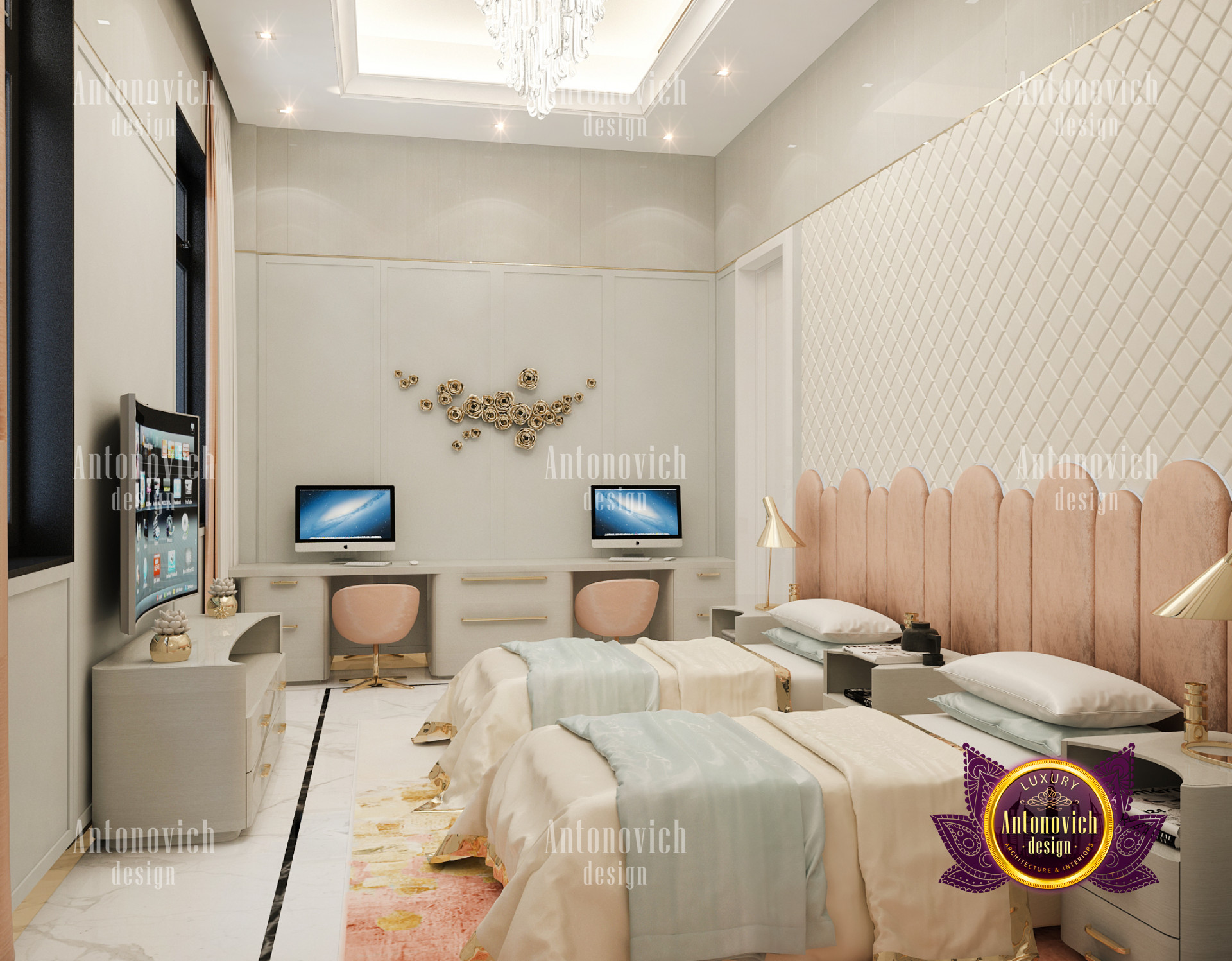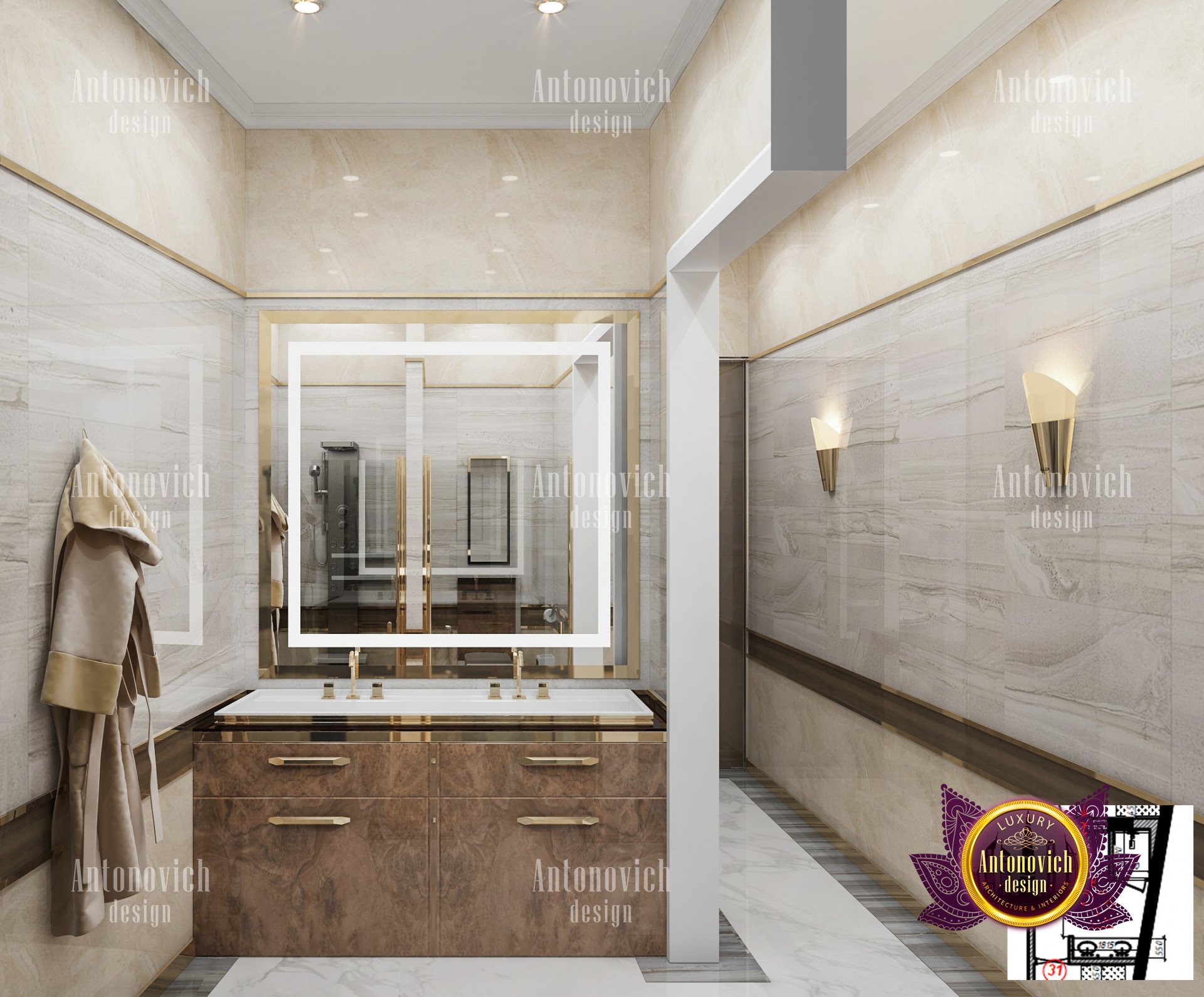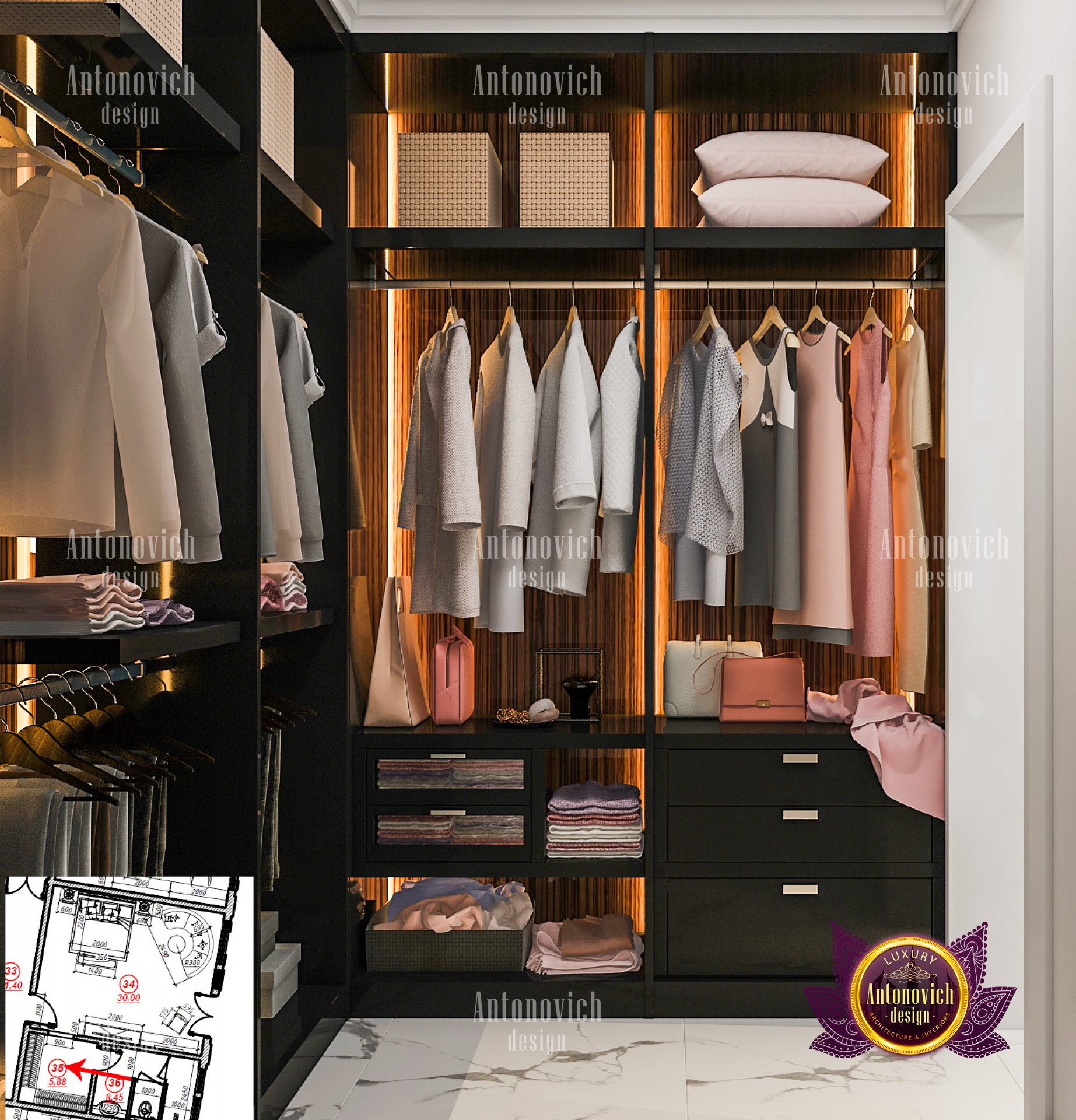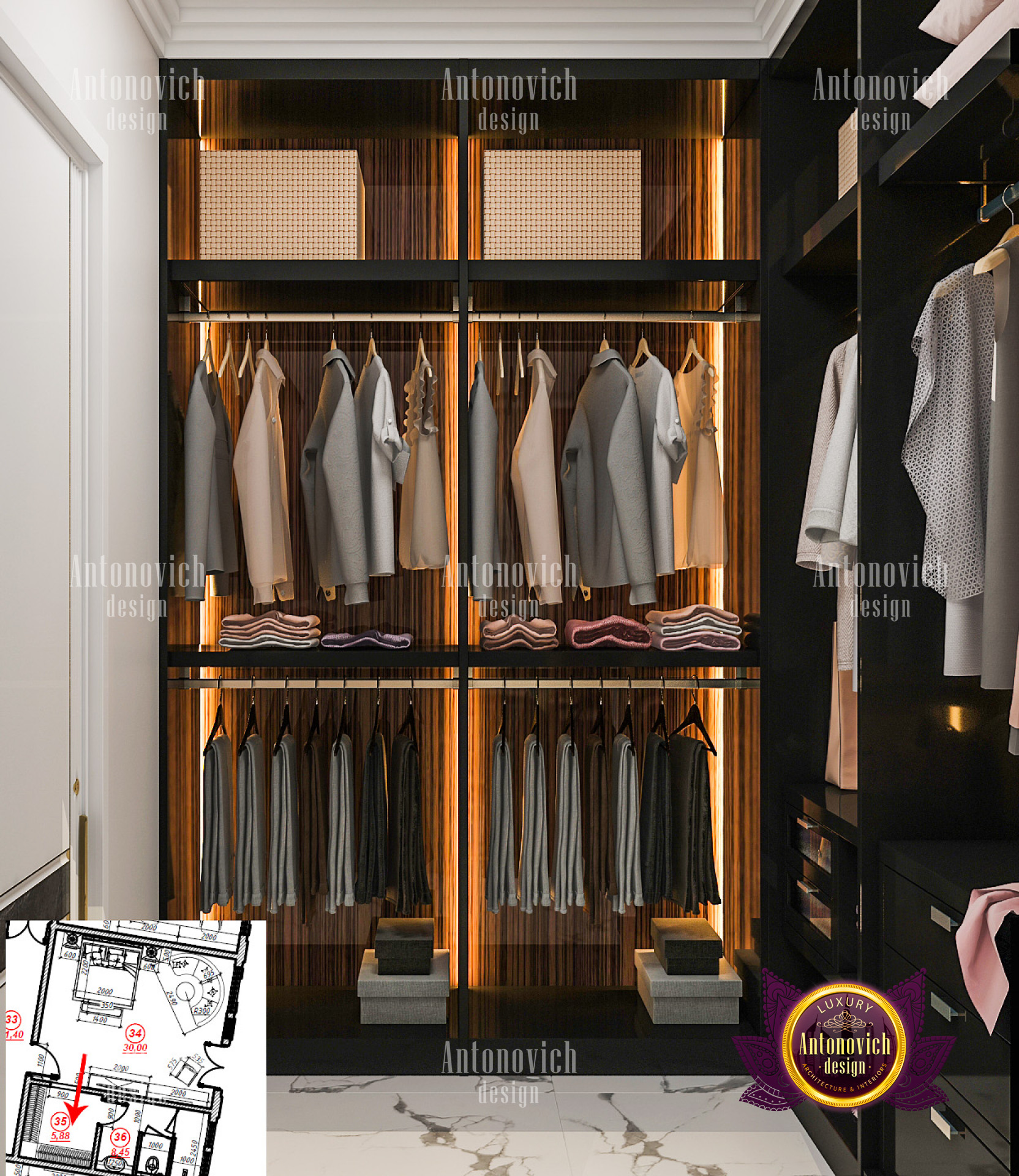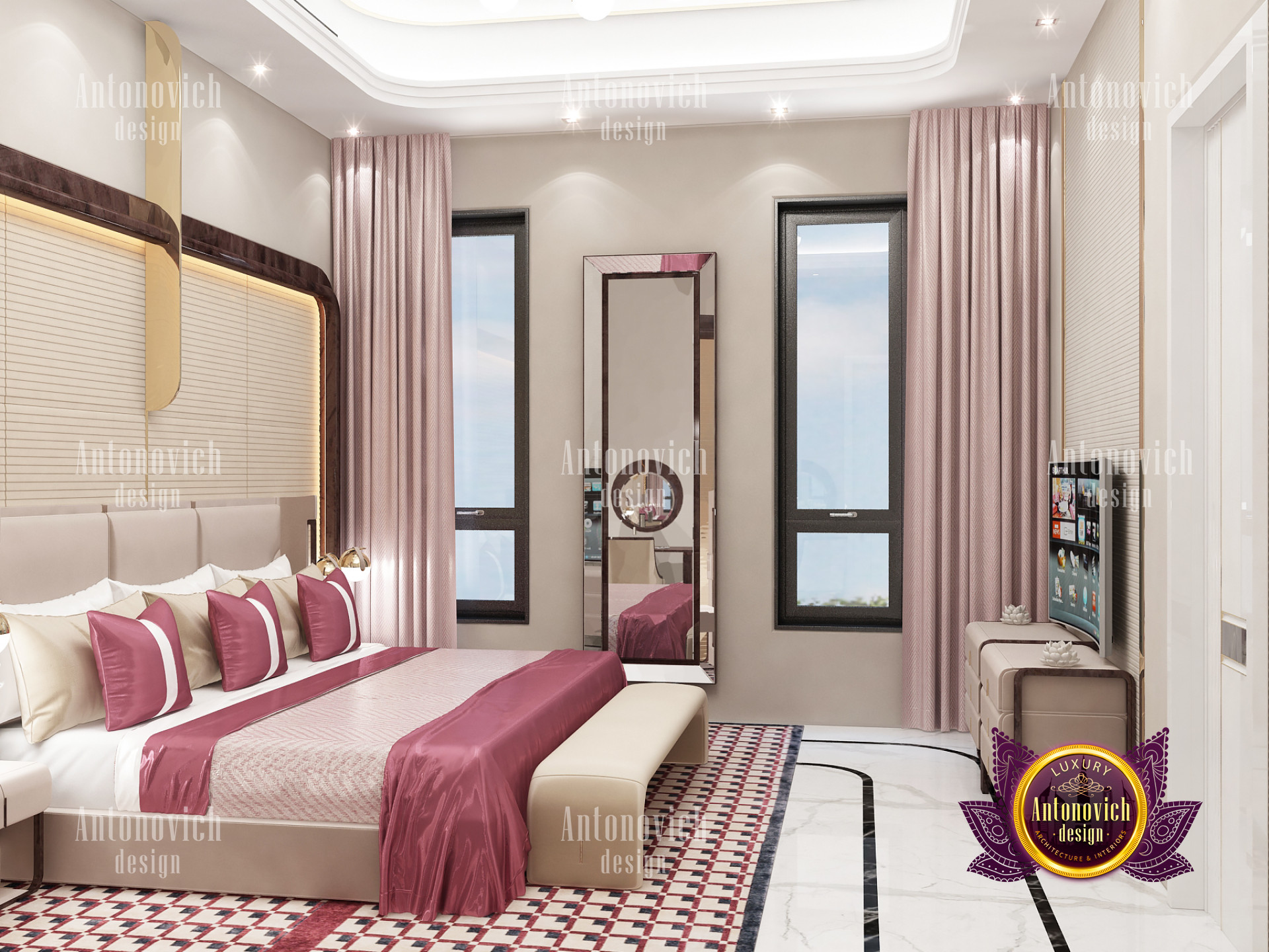 A bedroom is full of luxurious elements that you and your family require. It has every piece of furniture required for a luxurious bedroom. The gold embellishments are very stunning. The bed is stunning on its own. One of the most beautiful headboards weve ever made. The bedsheets are likewise adorned with opulent embellishments. A nice bedroom with a great Dubai Hills view is something that everyone wishes for. This magnificent design, designed by the countrys greatest interior designer, Luxury Antonovich Design, oozes class and elegance. The view from the bedroom is spectacular, and waking up to such opulence is a dream come true.