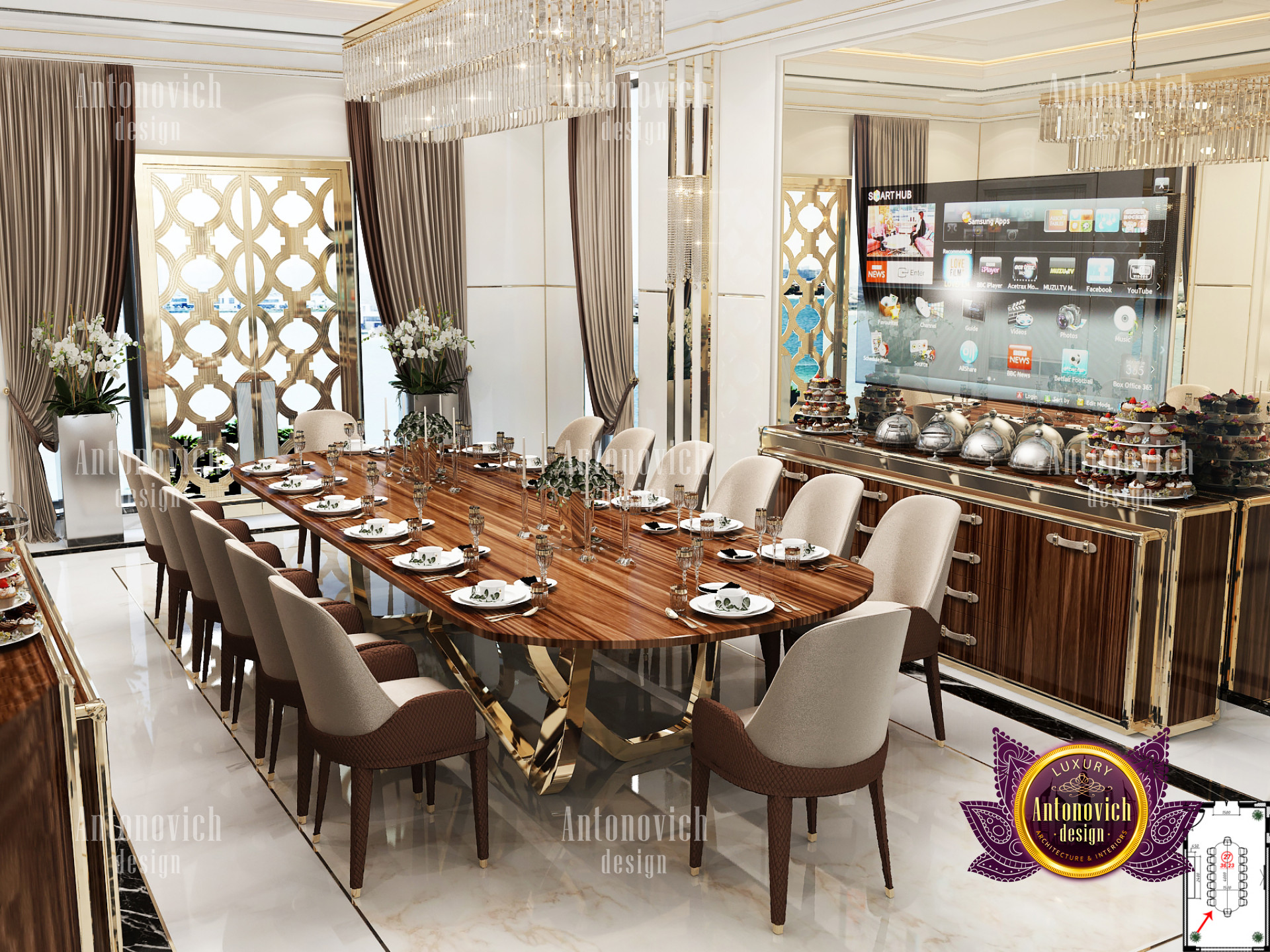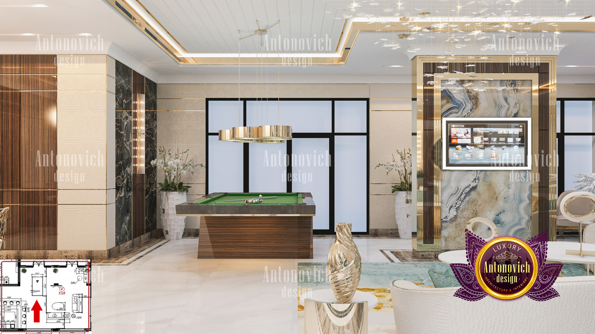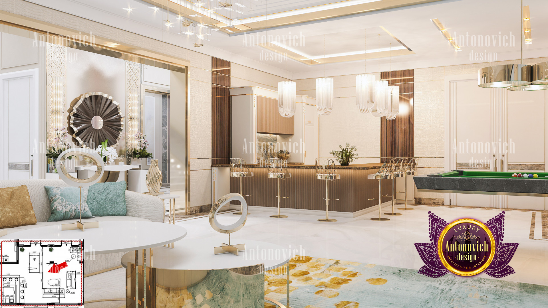 It is critical to have a Home interior design Dubai hills that matches your personality when it comes to Dubai hills villa Luxury Interior designs. This Luxury villa design in Dubai hills is built with sophisticated accents and beautiful details in every area. The Dubai Hills villas contemporary designs are all of the highest quality and have an exquisite flair. Luxury Antonovich Design, Interior Design consulting Dubai Hills villa, has ensured that the colors in this latest Private villa interior Design Dubai hills work nicely together in order to achieve the most stunning Luxury villa design in Dubai hills. Its luxurious Home interior design Dubai hills interior features incredible details from floor to ceiling. The lovely seats and tables are paired together and have a refined vibe to them.