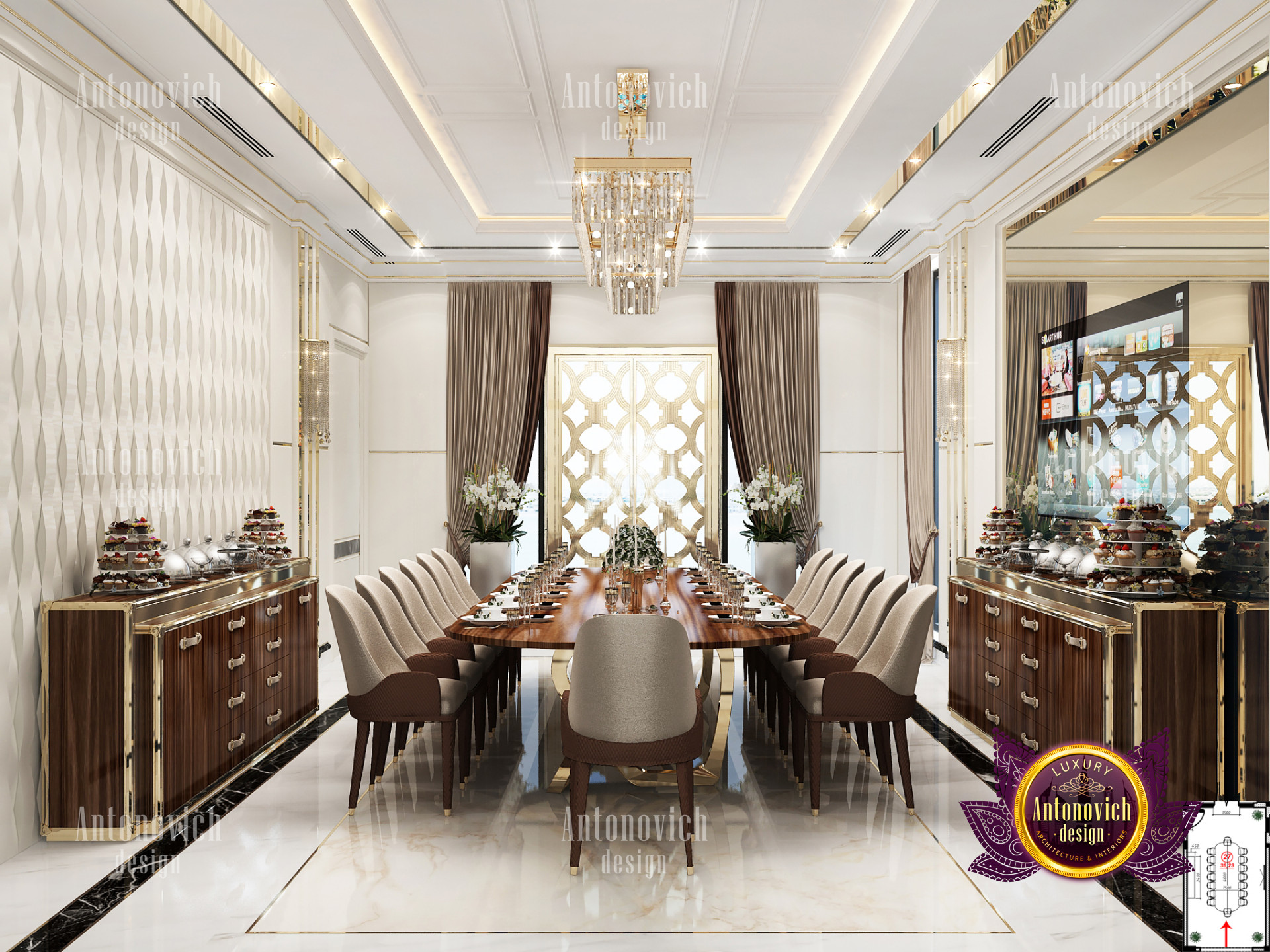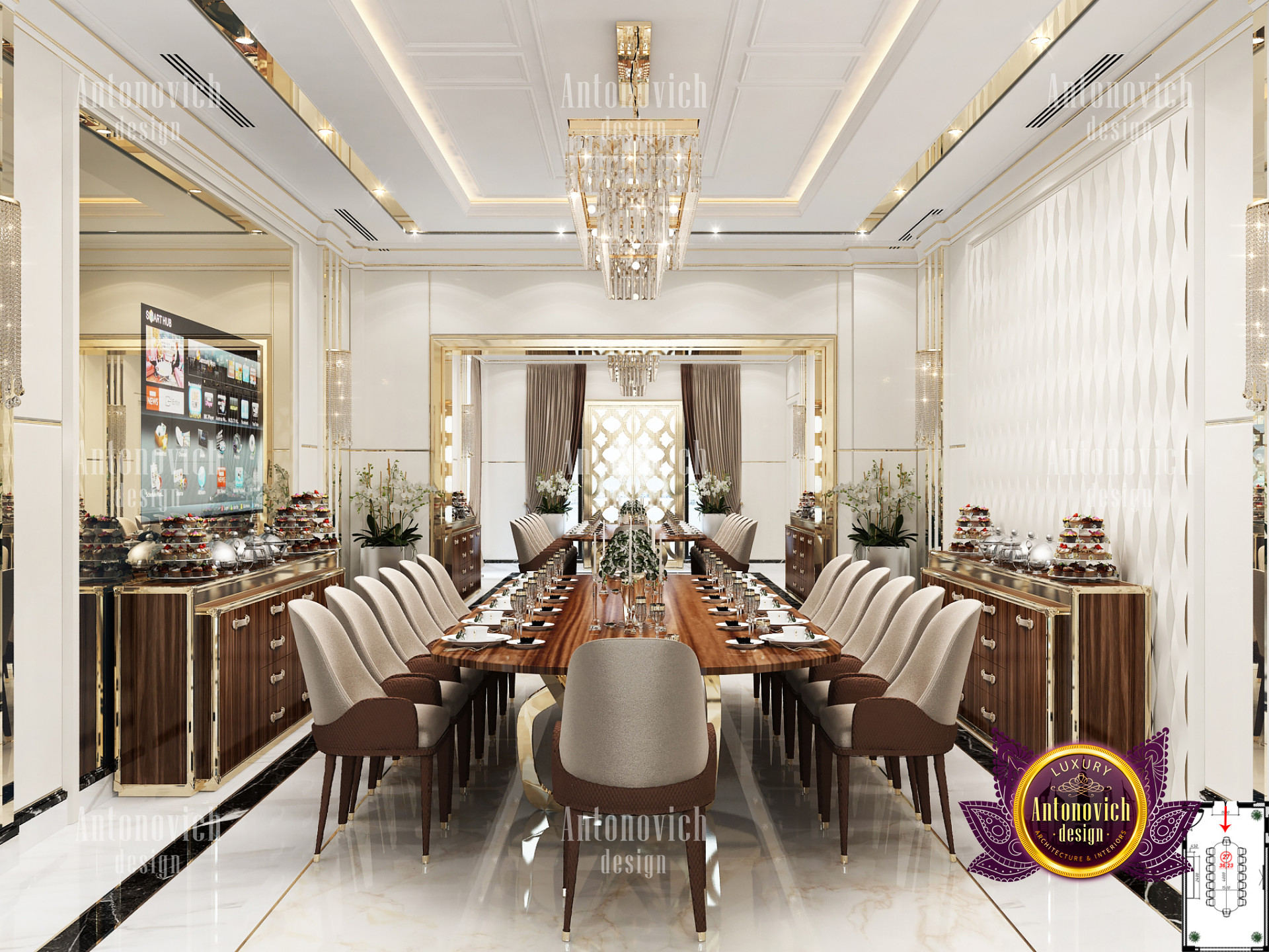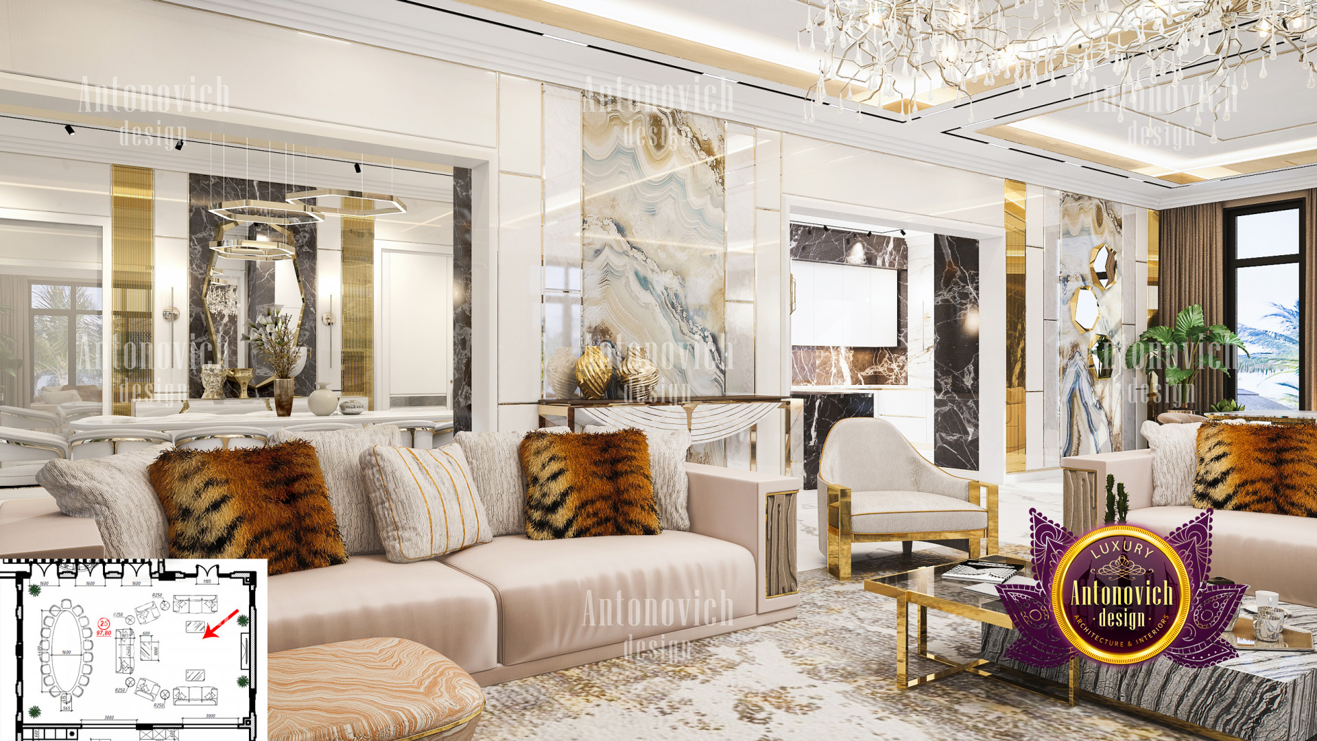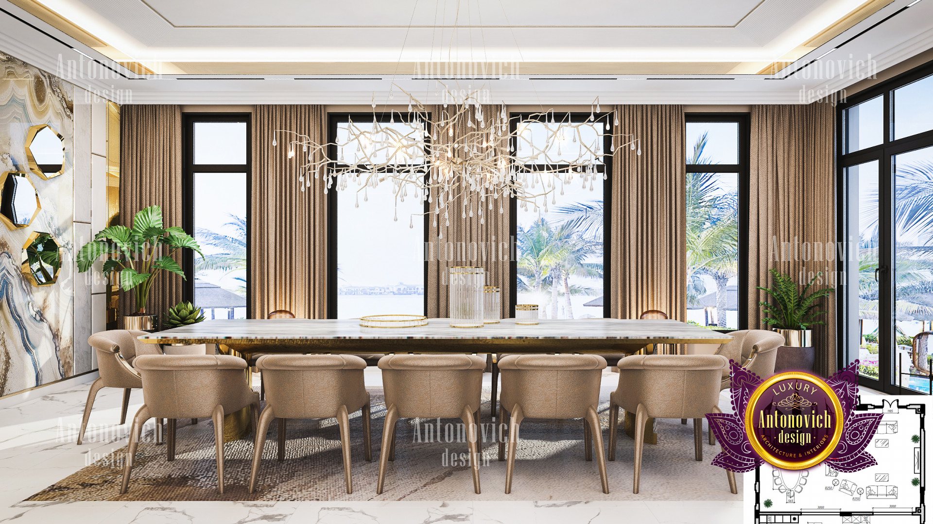 It is critical to have a Home interior design Dubai hills that matches your personality when it comes to Dubai hills villa Luxury Interior designs. This Luxury villa design in Dubai hills is built with sophisticated accents and beautiful details in every area. The Dubai Hills villas contemporary designs are all of the highest quality and have an exquisite flair. Luxury Antonovich Design, Interior Design consulting Dubai Hills villa, has ensured that the colors in this latest Private villa interior Design Dubai hills work nicely together in order to achieve the most stunning Luxury villa design in Dubai hills. Its luxurious Home interior design Dubai hills interior features incredible details from floor to ceiling. The lovely seats and tables are paired together and have a refined vibe to them.