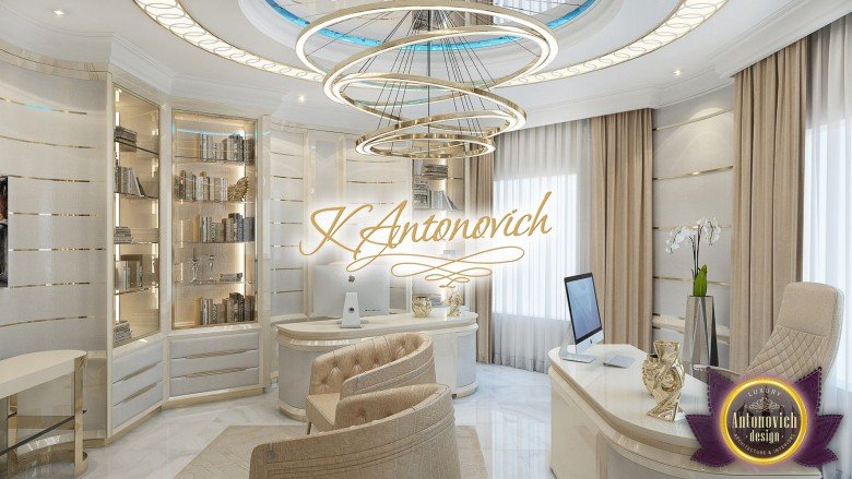 Have great ideas by looking at this beautiful golden office interior designed for the most elite employees! The colors are beautiful and curved walls are a perfect combination of the round-shaped chandelier. Likewise, it is a place for luxury working. In this article, you will have an inspiration of how to achieve the perfect office which suits your companys core values. The decors used are truly stunning. It is important to make sure that your luxury office decor interior design has enough space to work around without any struggle.