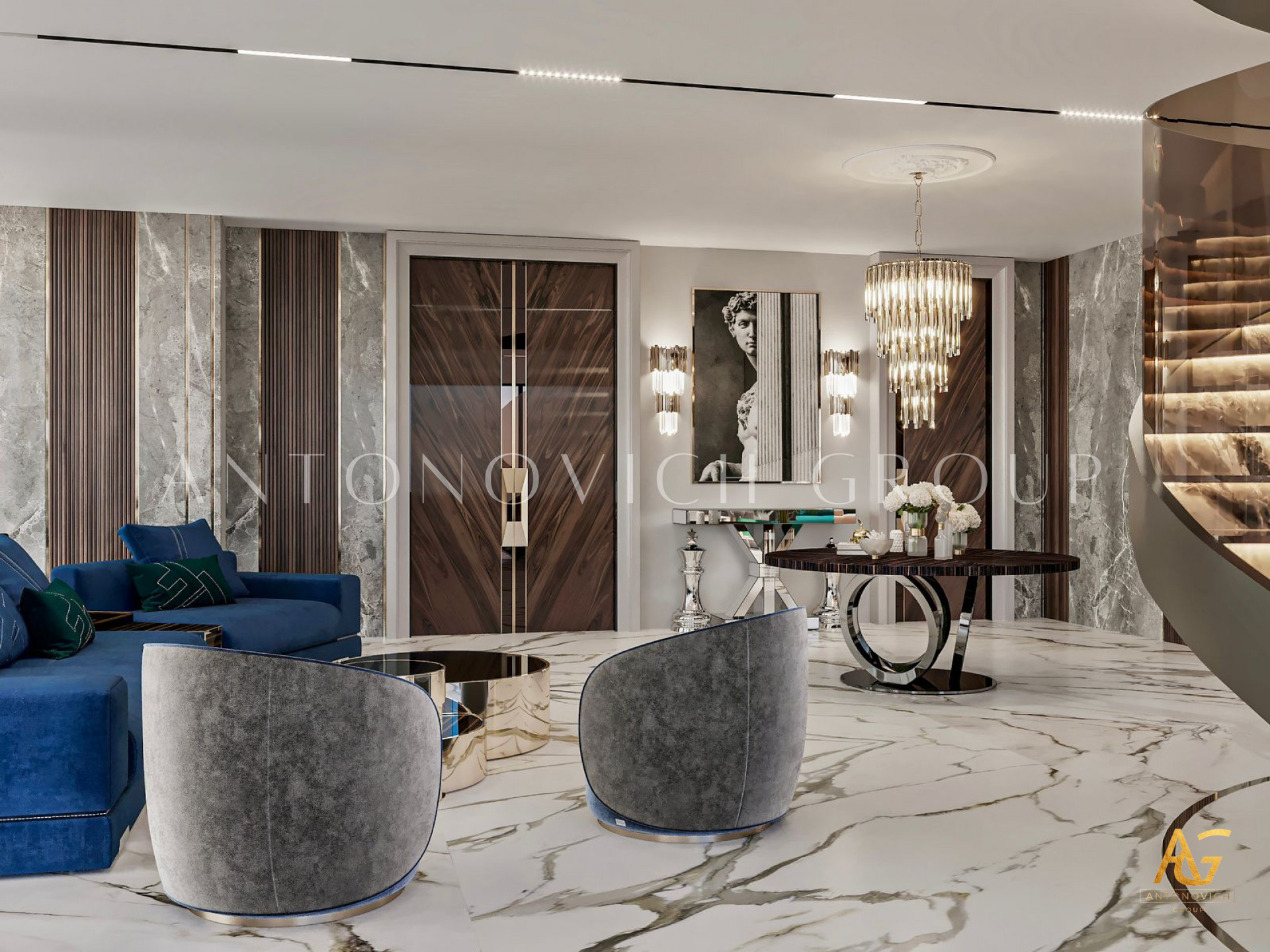 Welcome to the epitome of luxury living in Palm Jumeirah, where architecture meets artistry. At ANTONOVICH Group, we specialize in luxury interior design for penthouses in Palm Jumeirah, creating bespoke spaces that combine panoramic views with refined materials, custom furniture, and flawless execution.