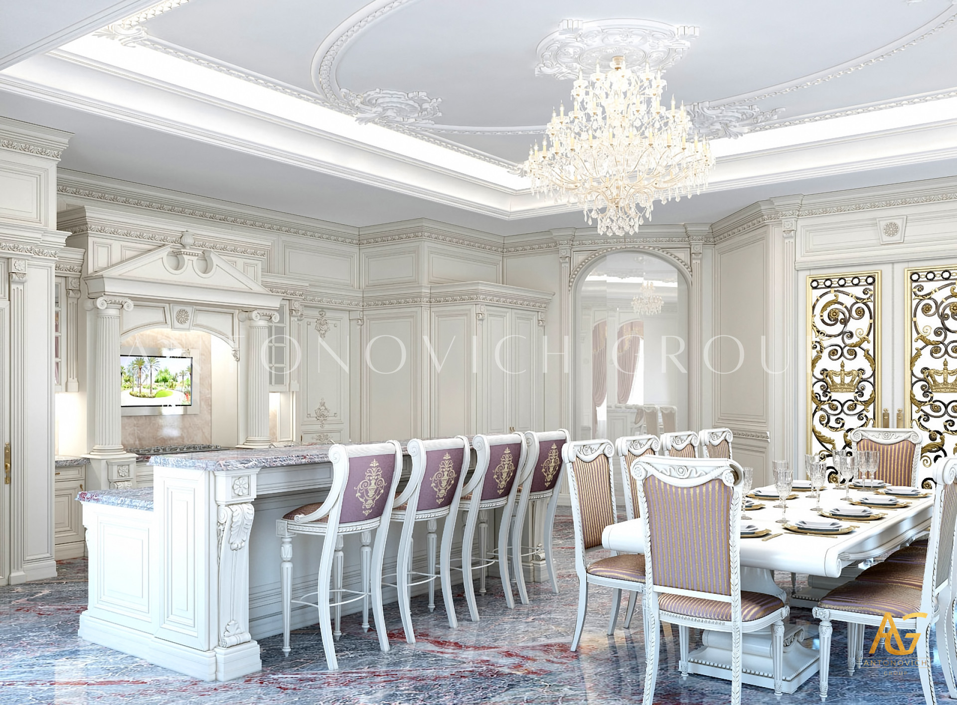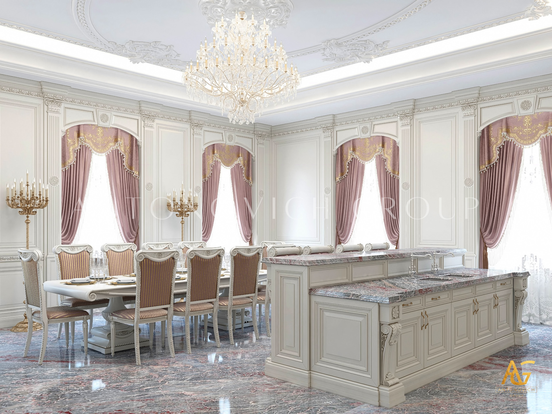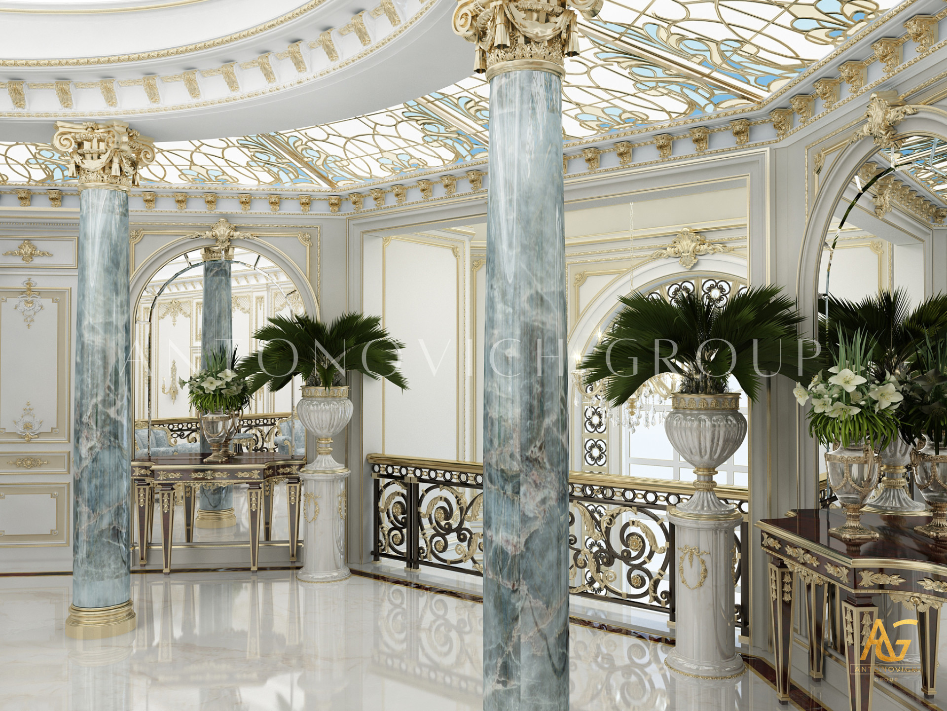 Antonovich Group’s approach to classic interior design is not about replication but interpretation. They infuse traditional elements with modern functionality, creating spaces that are both regal and livable. This harmony of old-world artistry and contemporary innovation sets the tone for the villa’s interiors.