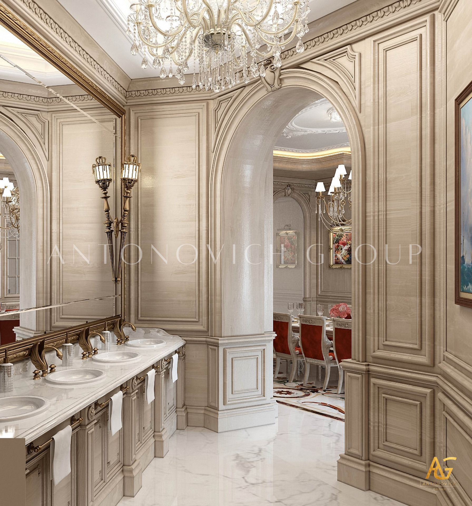 The classic elegant villa in Abu Dhabi stands as a testament to Antonovich Group’s expertise in luxury interior design and fit-out services. Every detail, from the architecture to the bespoke furniture, was crafted with precision and passion. The result is not simply a residence but a masterpiece of timeless elegance, designed for modern living.