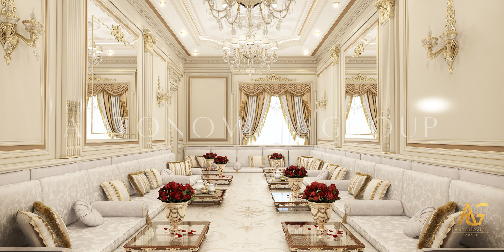 Antonovich Group used the most strategic approach of fit-out solutions and refurbishment to match the greatest design requirements, completing this magnificent property in Abu Dhabi. The gorgeous house design reflects the richness of the lifestyle. The contemporary interior of this property is filled with high-end furnishings and décor. A magnificent and exquisite villa interior design in Abu Dhabi allows you to take your daily life to new levels of refinement, enjoyment, comfort, and inspiration.