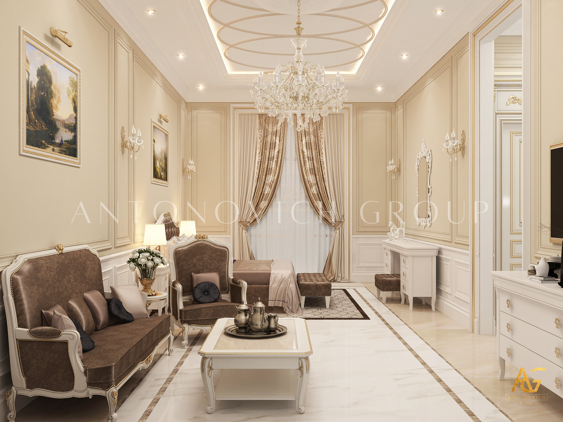 The great stylish villa interior design in Abu Dhabi, the spectacular settings, and the opulent mood are the first things that spring to mind when viewing this luxury-style villa interior design Abu Dhabi. Antonovich Group developed a fantastic appearance with a gorgeous luxury design. It is not enough to have a beautiful luxury house interior design in Abu Dhabi; it must also feel luxurious. The features and amenities of the fashionable villa interior design in Abu Dhabi are very comfortable and inspirational.