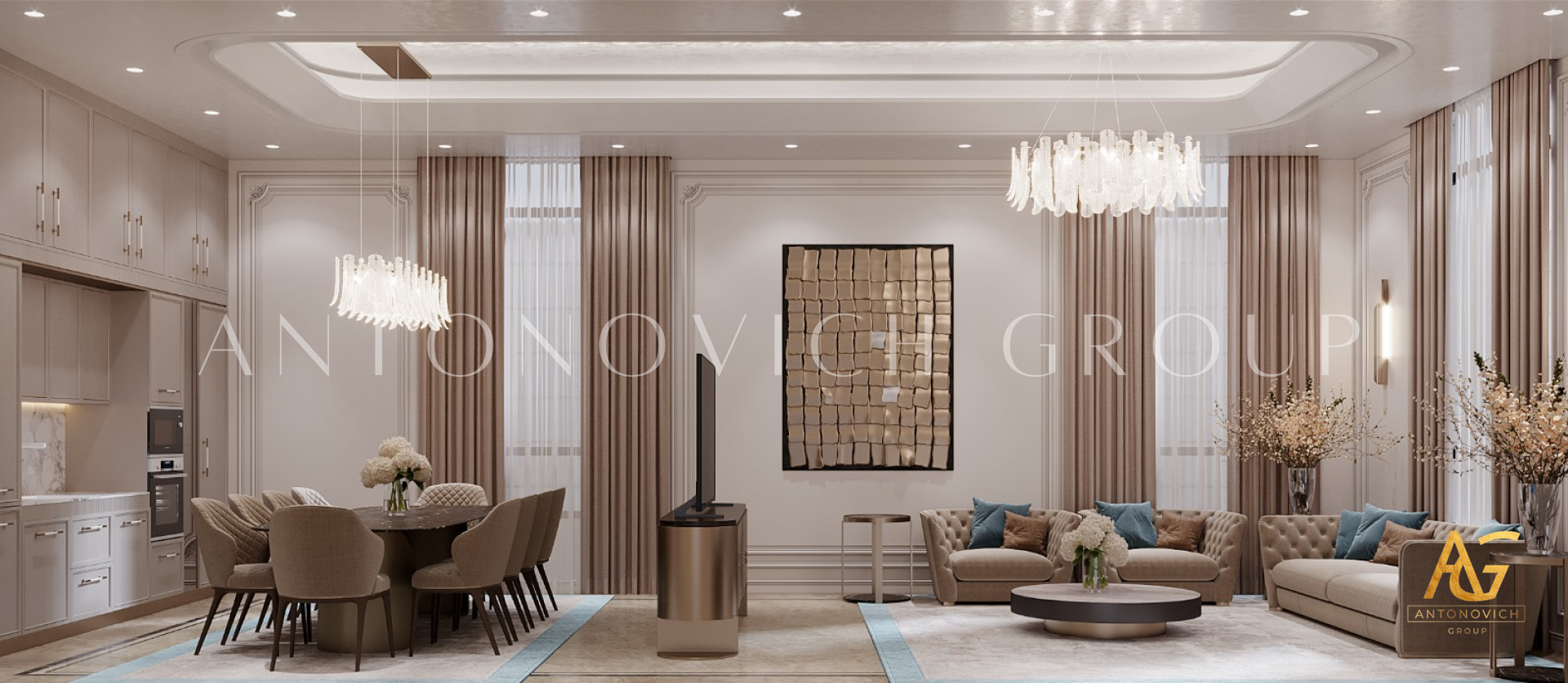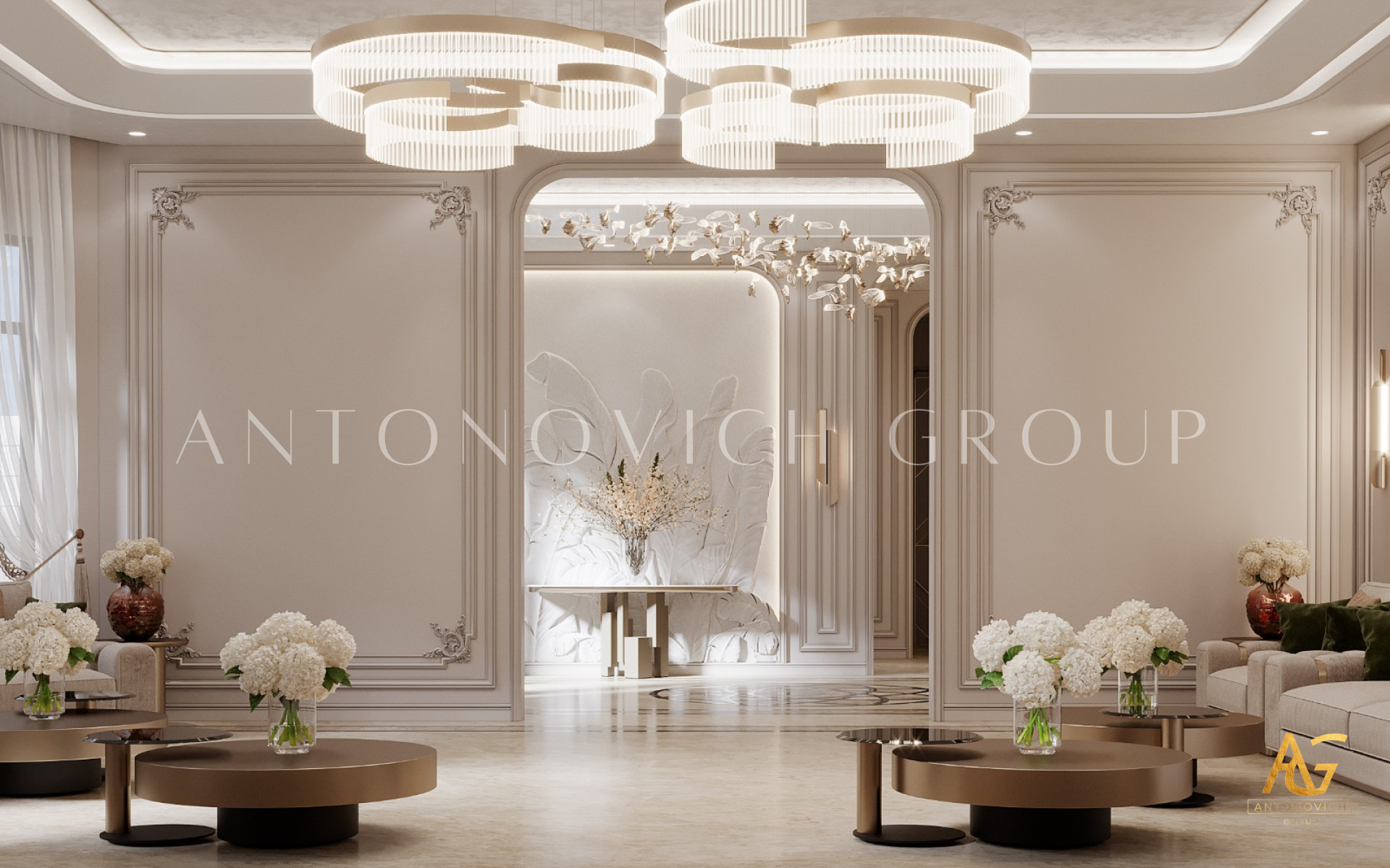 In modern architectural construction there are a variety of projects of country houses. The villas among them occupy one of the most significant places. The luxurious design of the villa in modern style by Luxury Antonovich Design has its own characteristics inherent in this particular architectural direction, such structures are easily recognizable from many similar houses. Often, home design is born through creative intuition — the basis for creating luxurious design. The architecture translates sincere wishes of customers in a rational format accessible to it.