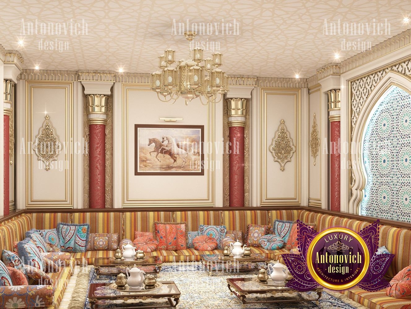 French style is characterized with romanticism, luxury and fine taste. And this elegance with a touch aristocratism perfectly enriches the villa design in Dubai. A house plan absorbed the most beautiful features. The basic rule when choosing a color in the French style – it is a restraint and brevity. The combination of pastel colors shows unobtrusiveness and elegance. The beautiful patterns make special romanticism in the interior. The highlight of the home design are fabulous chandeliers, which with the play of crystal are filled the room.
