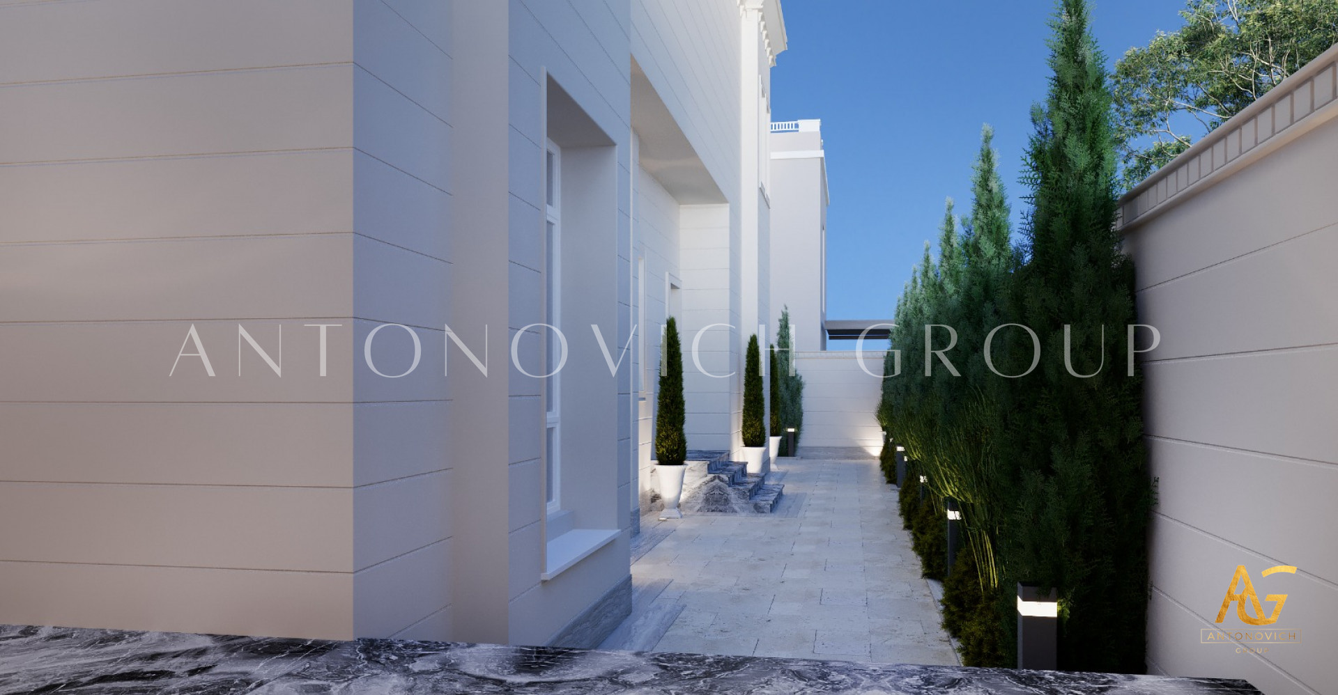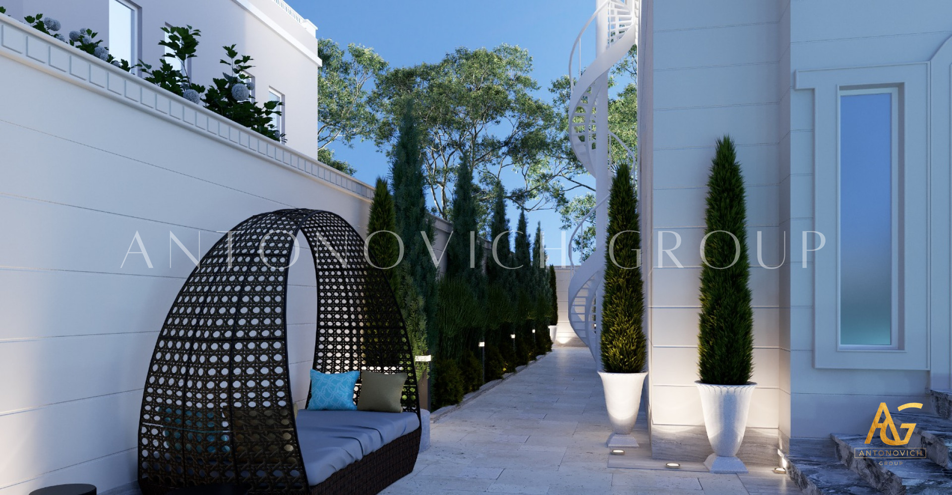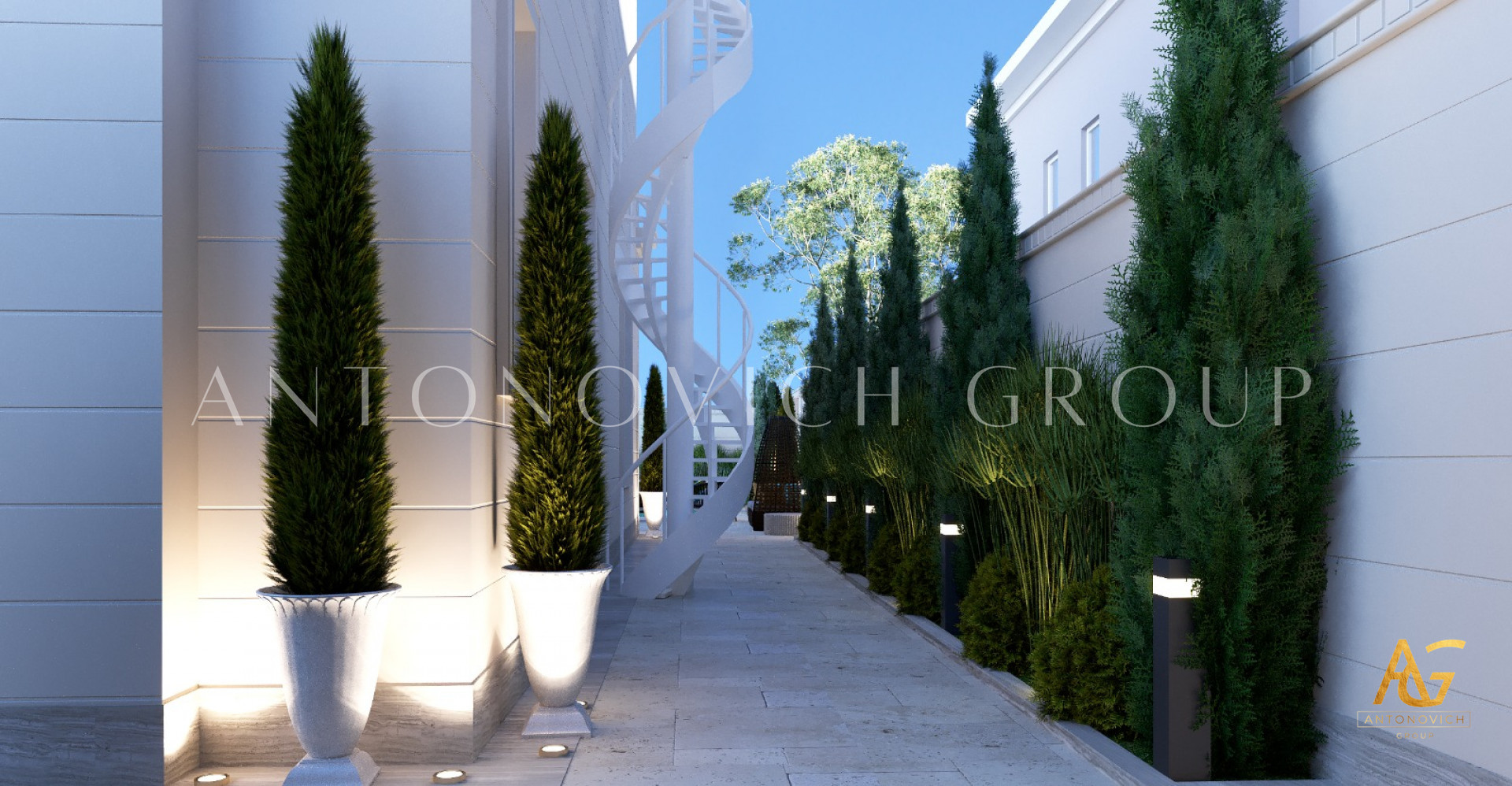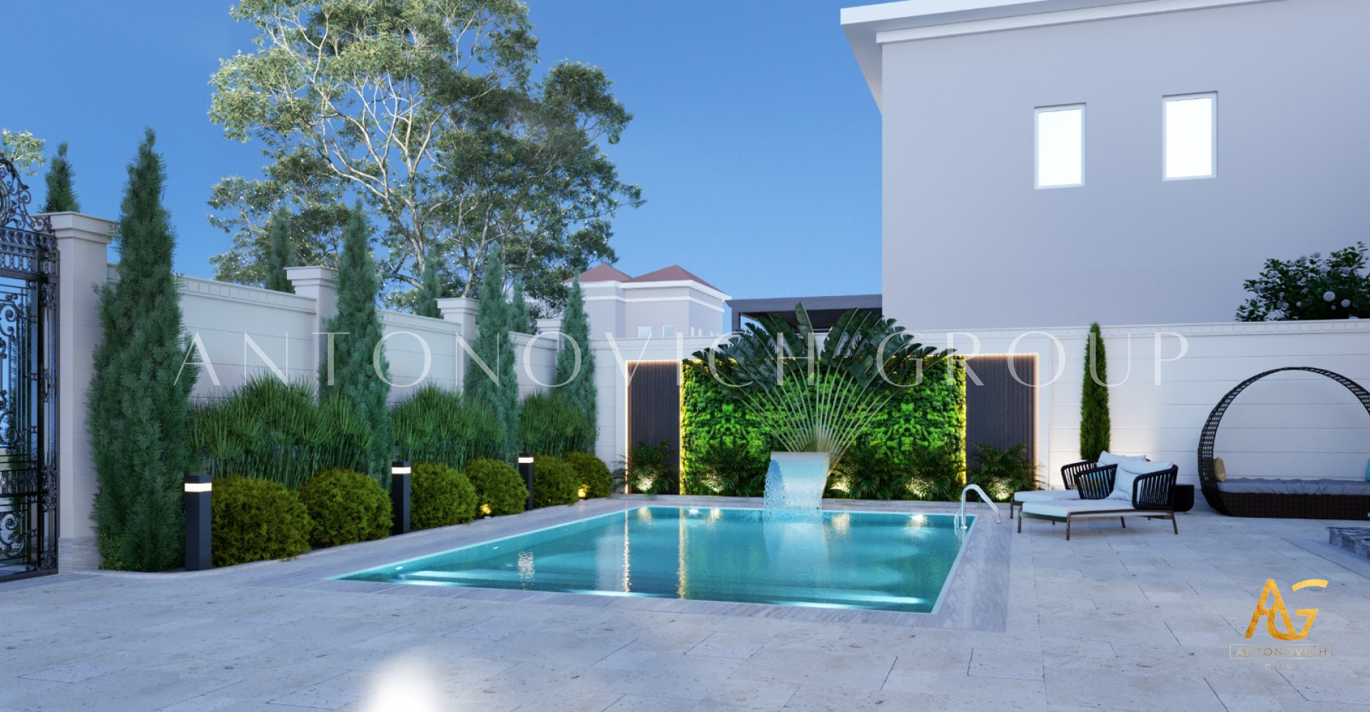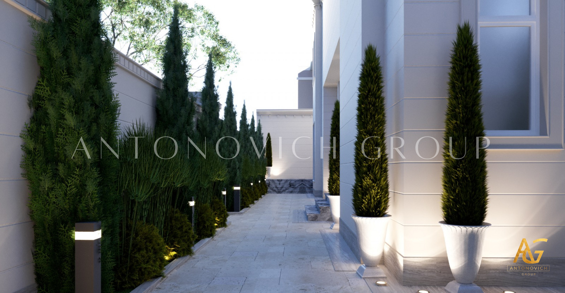 Armed with the vision, the Antonovich Group design team goes to work, breathing life into the villa's exterior landscape. Each design is a work of art, meticulously crafted to exude luxury and opulence. From the selection of exotic flora to the placement of stylish water features and captivating lighting installations, every element is carefully chosen to create a symphony of elegance and enchantment.