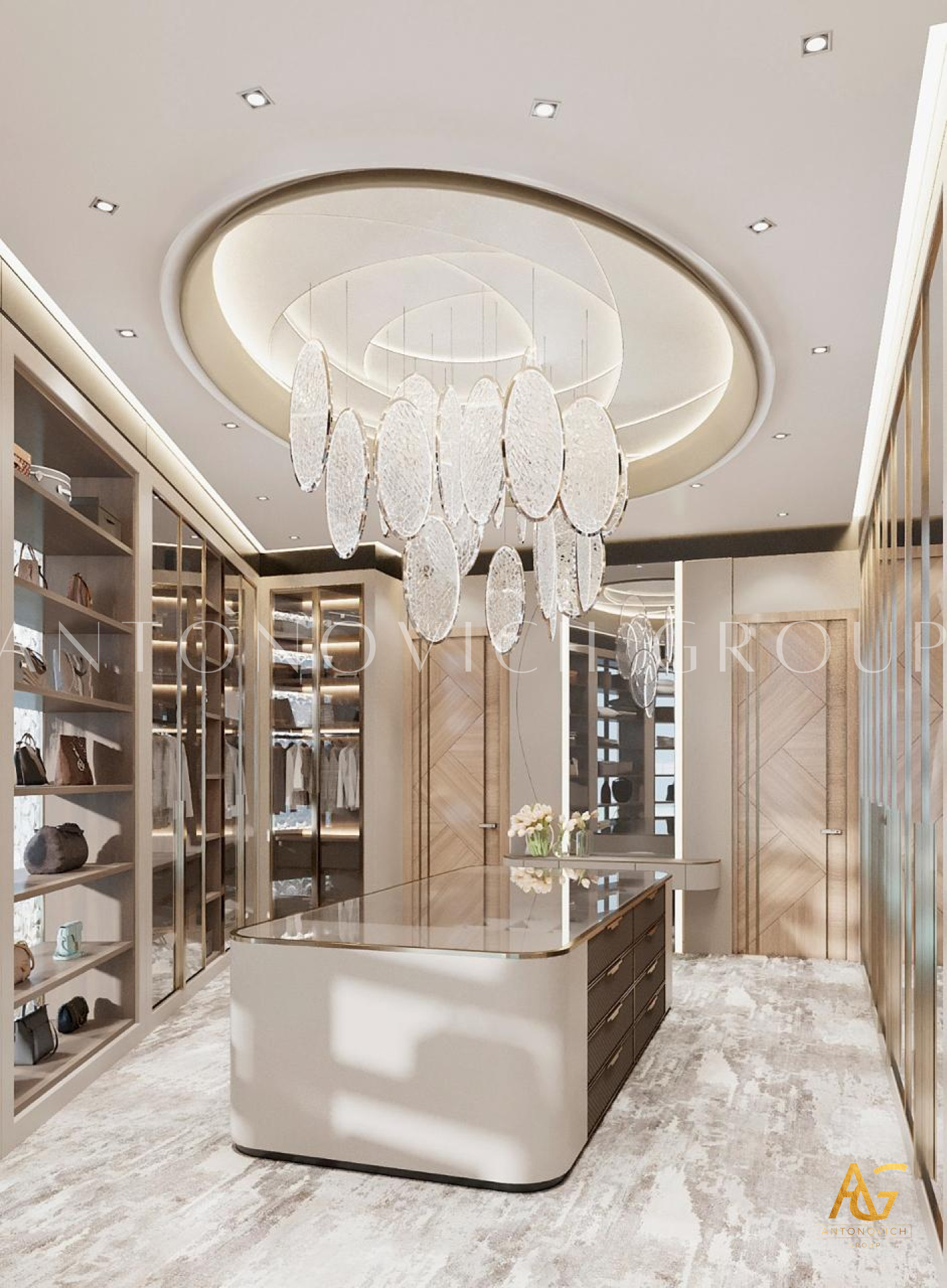 Luxury Modern Master Dressing Room Interior Design and Joinery Expertise by Antonovich Group