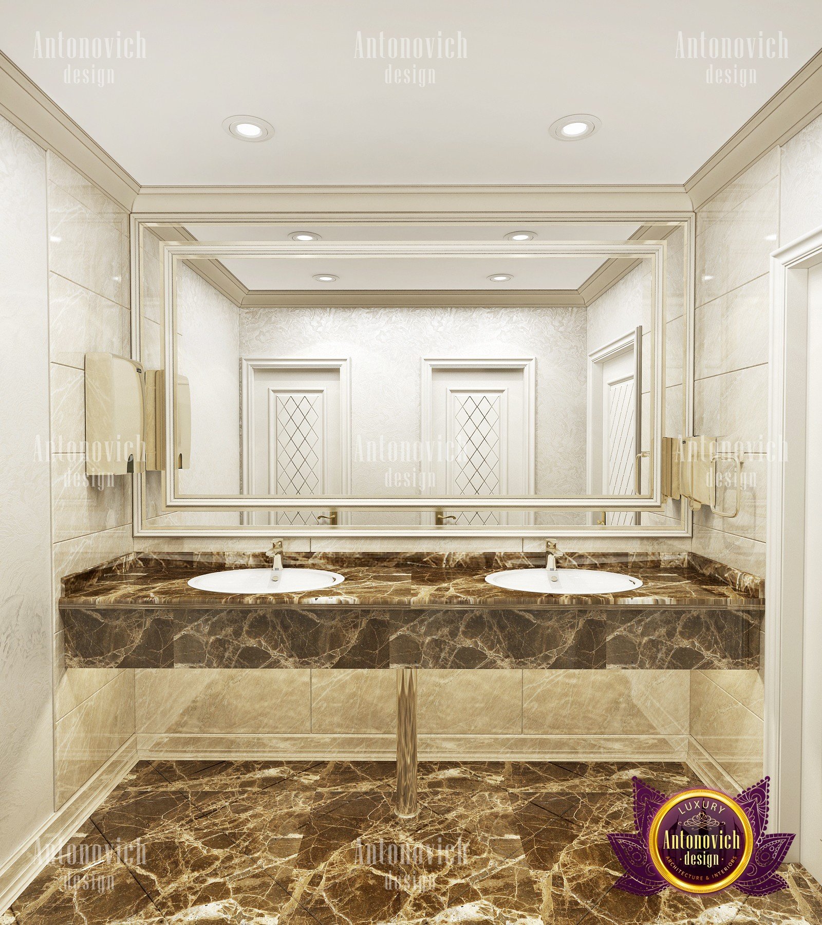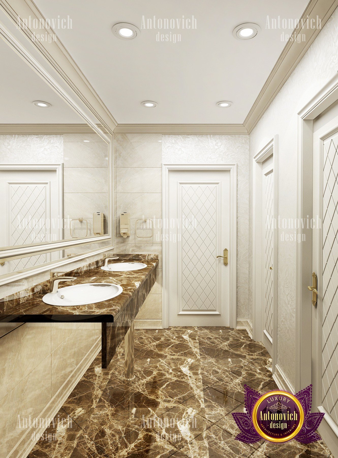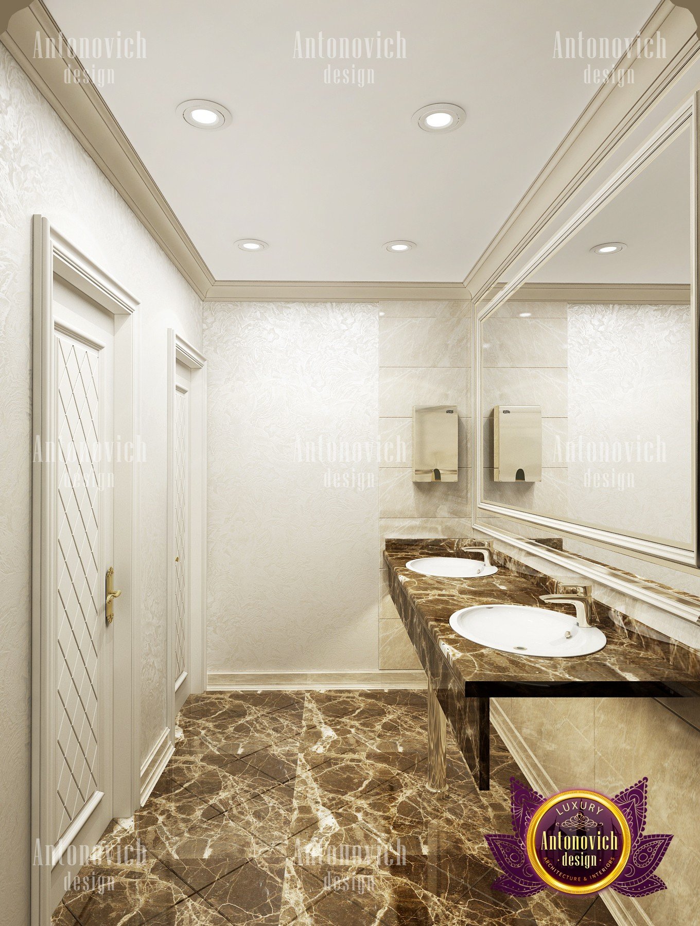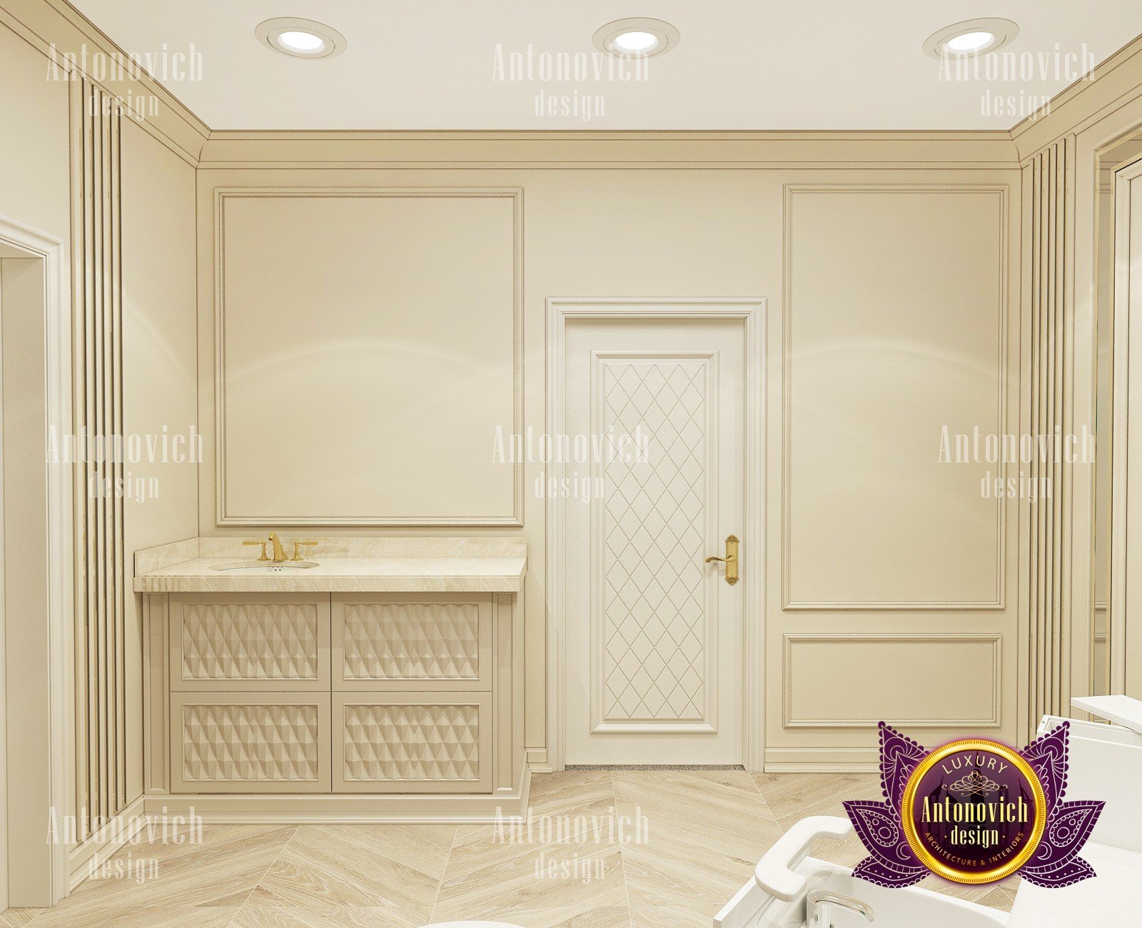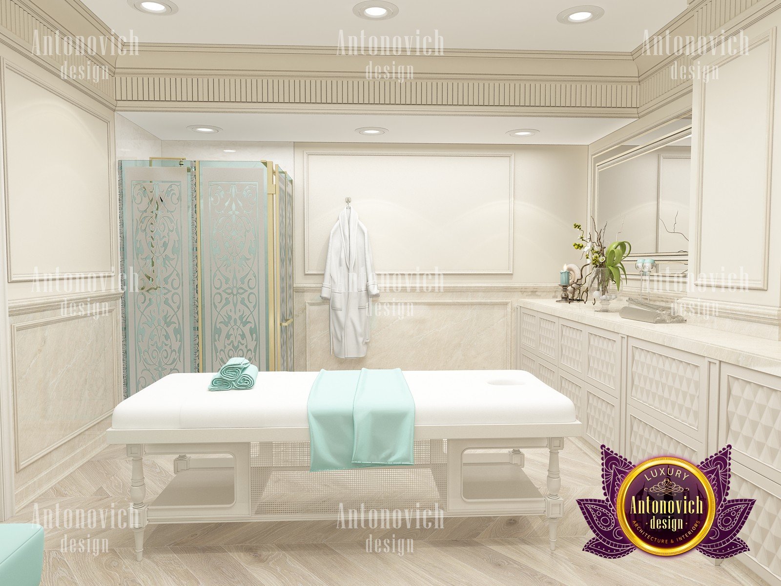 Elegant, stylish and a little bit strict — this is how you can characterize the interior design of this beauty salon by Luxury Antonovich Design. Our designers managed to create a light and bright mood thanks to a harmonious combination of white and creamy shades. As a result you can notice there a slight shade of glamour. The interior design of this salon can serve as an example of beauty, grooming and fashion. The attractive aesthetics of the setting here is balanced by practicality, and the functionality echoes with the original idea.