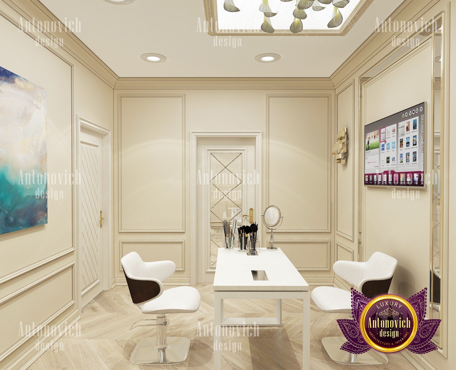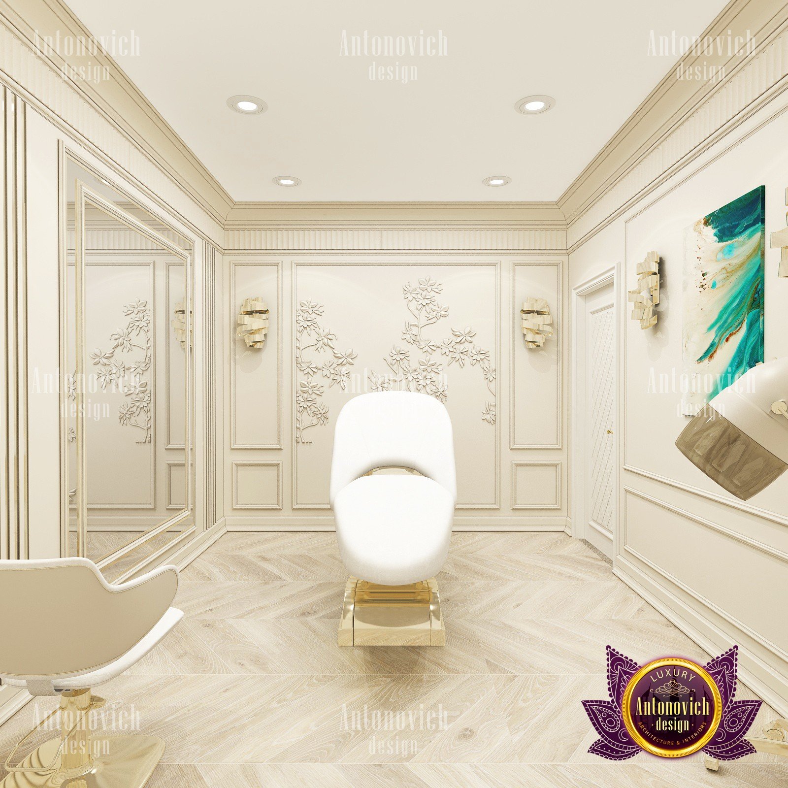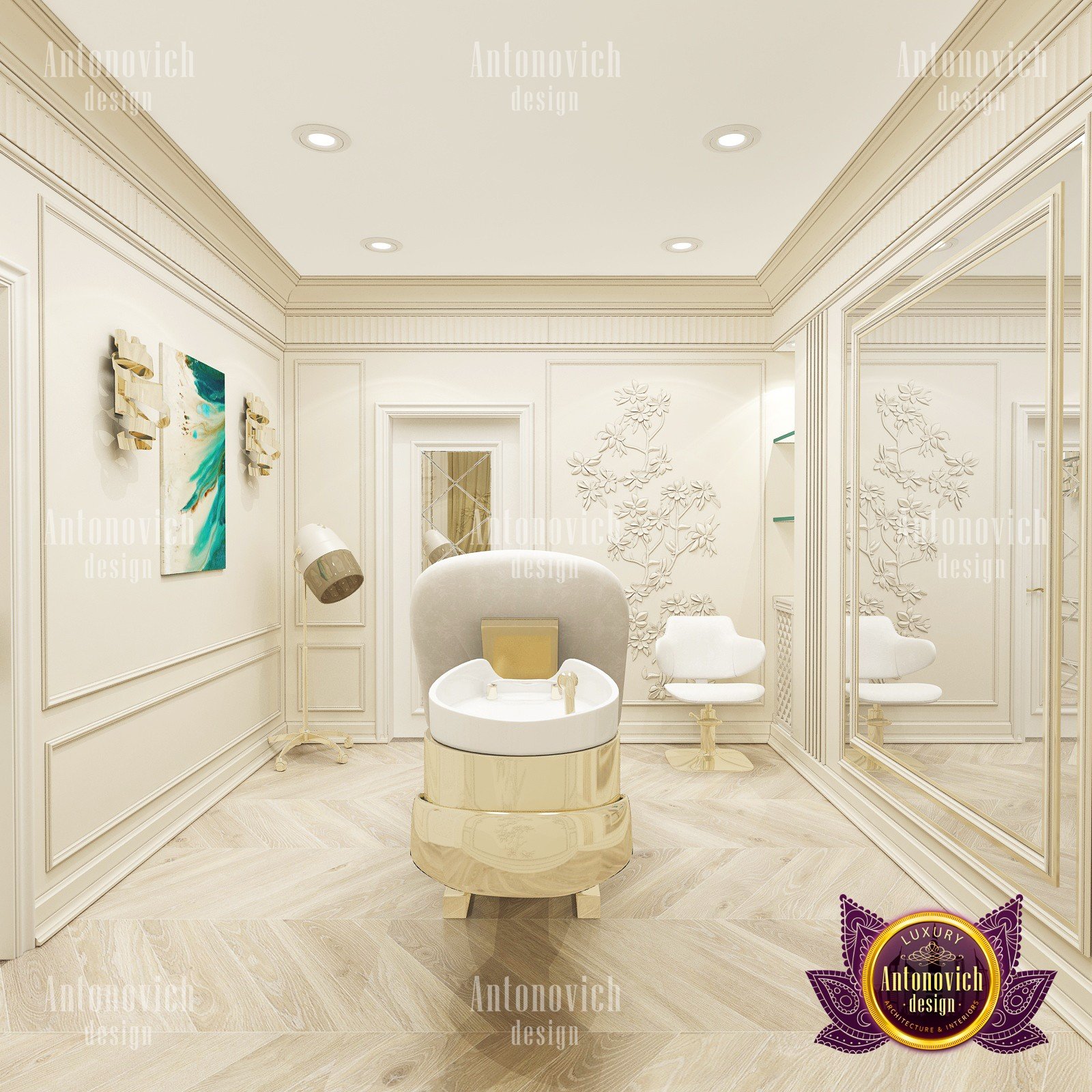 Beauty salon is an institution where the feeling of comfort and coziness is important. Only in this case the master is able to establish a full-fledged contact with the client, and the client can relax and enjoy the procedures. You can easily create an appropriate atmosphere by ordering an individual beauty salon design by Luxury Antonovich Design.