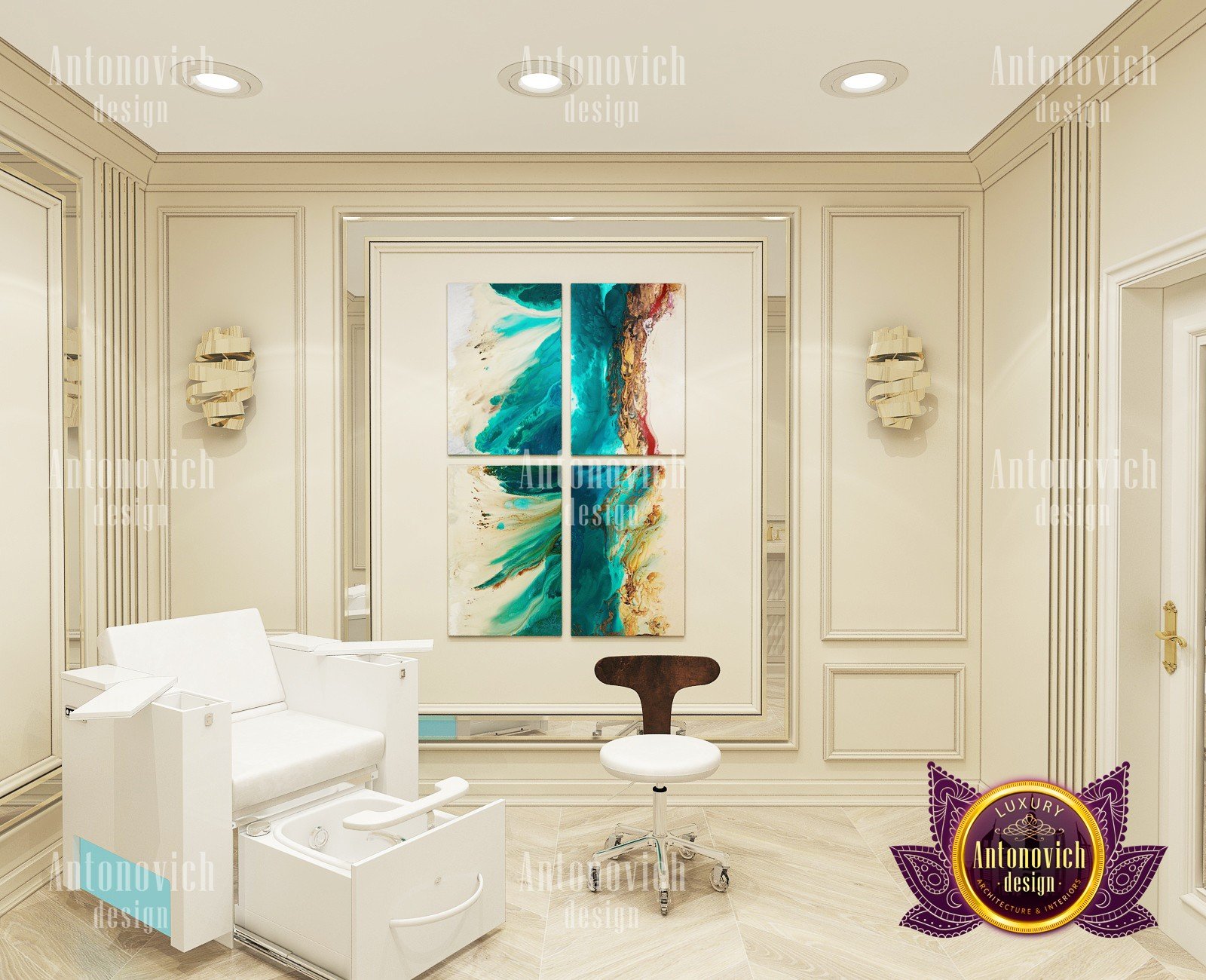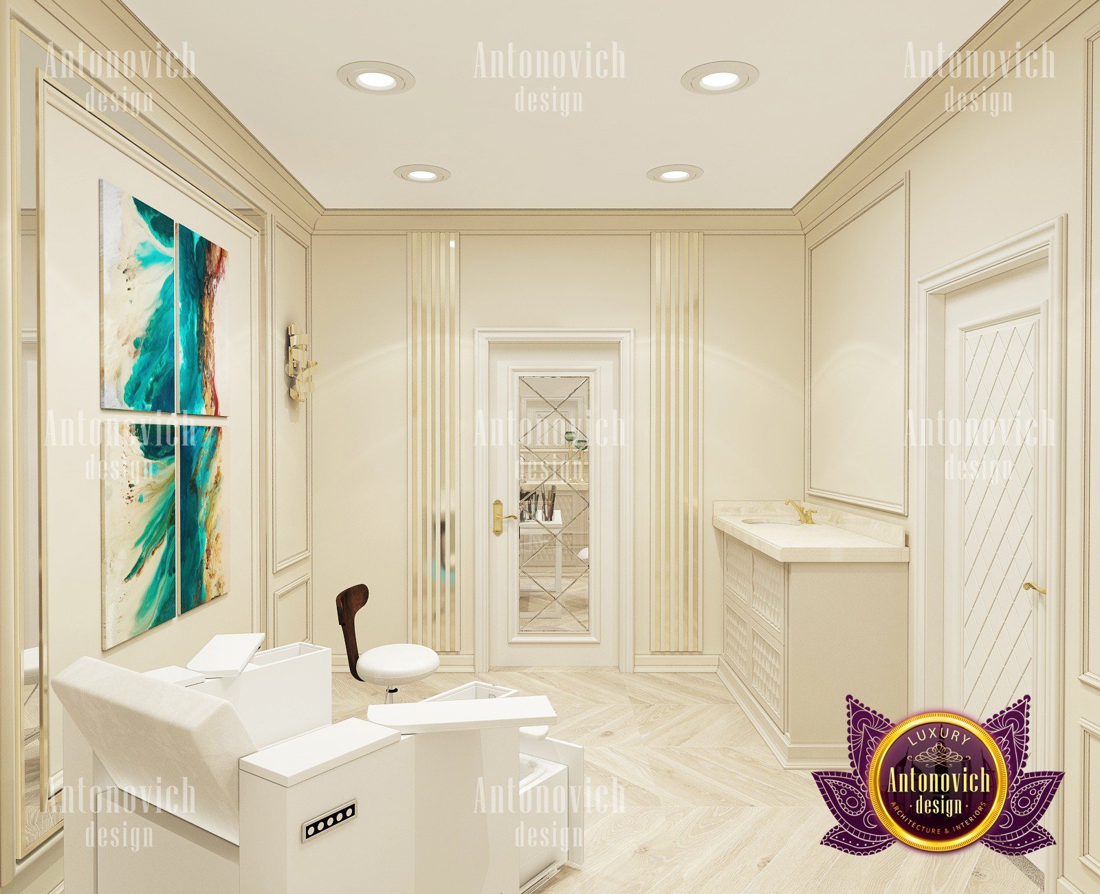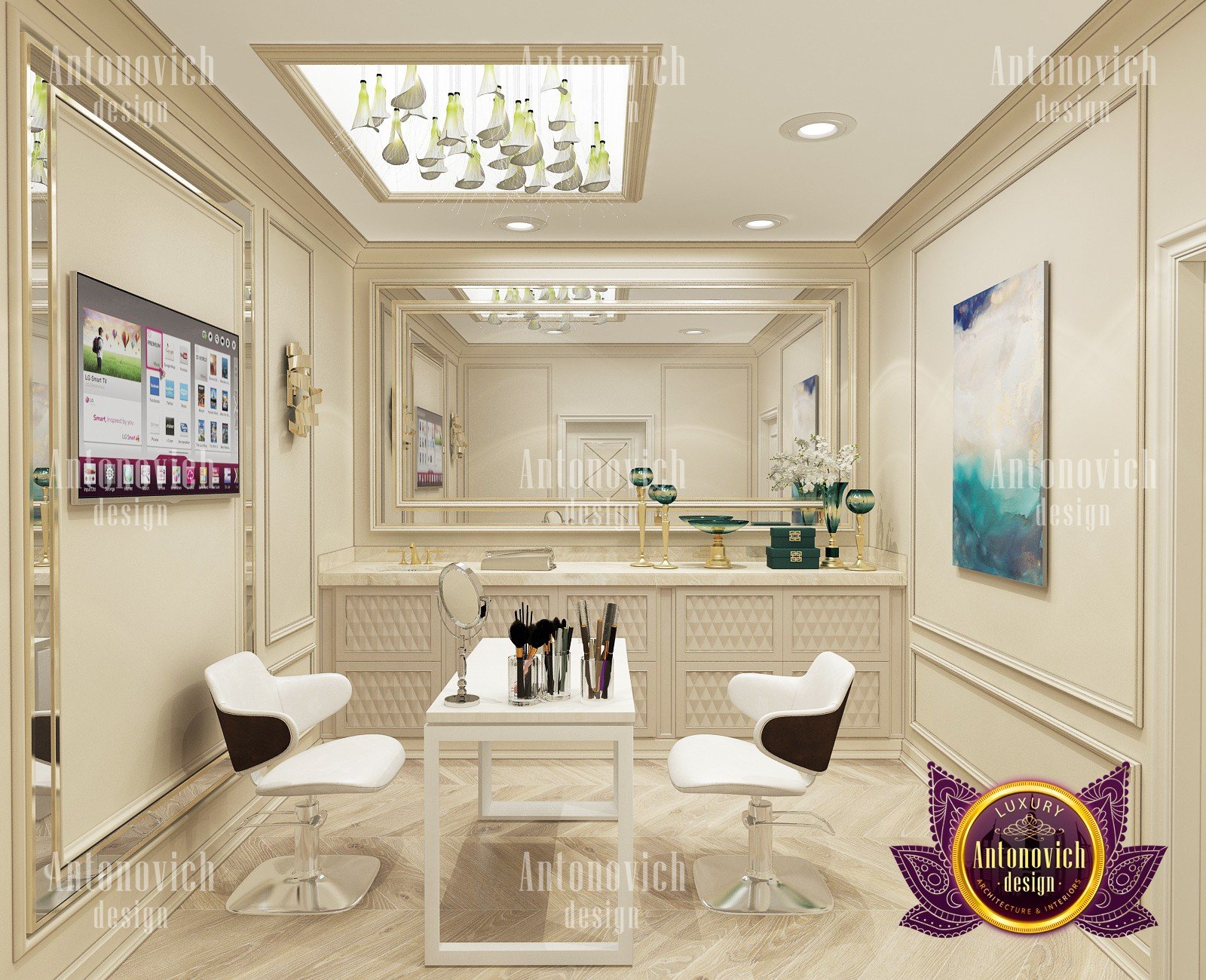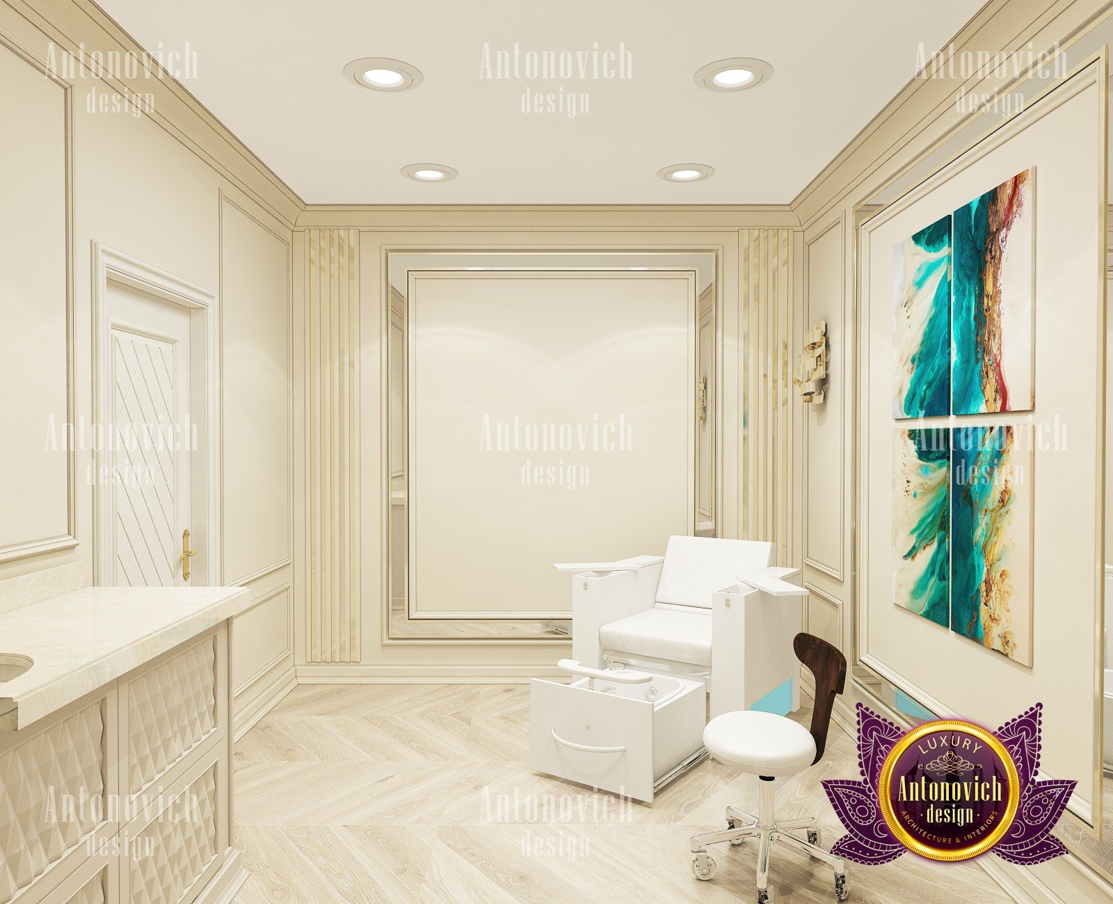 Beauty salon is an institution where the feeling of comfort and coziness is important. Only in this case the master is able to establish a full-fledged contact with the client, and the client can relax and enjoy the procedures. You can easily create an appropriate atmosphere by ordering an individual beauty salon design by Luxury Antonovich Design.