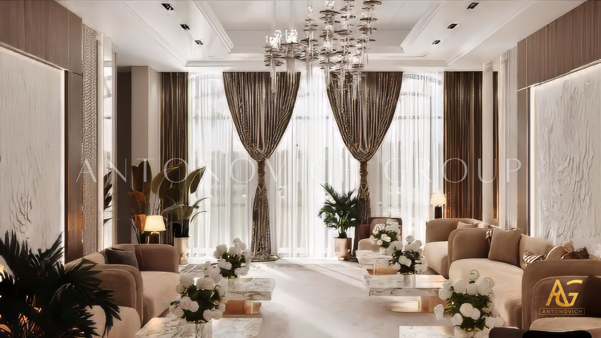 The foundation of a successful majlis is precise space planning. Antonovich Group designs layouts that emphasize openness while maintaining a balance of intimacy and grandeur. Seating arrangements are carefully organized to encourage conversation and hospitality, making the majlis a welcoming environment for guests. By integrating functional majlis interior design with refined aesthetics, Antonovich Group creates interiors that are as practical as they are luxurious.