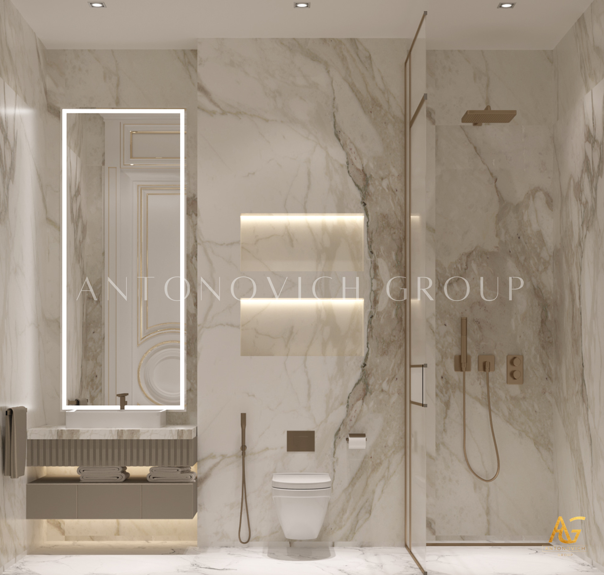 Antonovich Group is renowned for crafting exquisite master bathroom interior designs that embody luxury, comfort, and sophistication. With an unmatched sense of artistry and technical expertise, the company transforms master bathrooms into private sanctuaries where style meets functionality. Each design reflects the brand’s signature elegance, tailored to meet the unique preferences and lifestyle of every client.