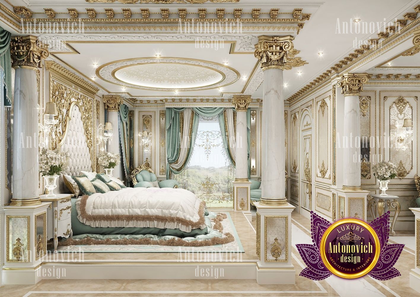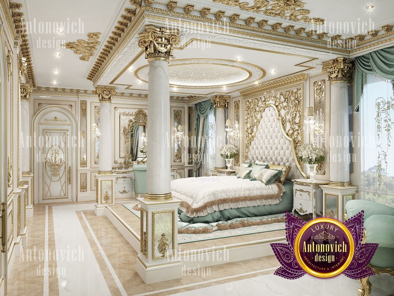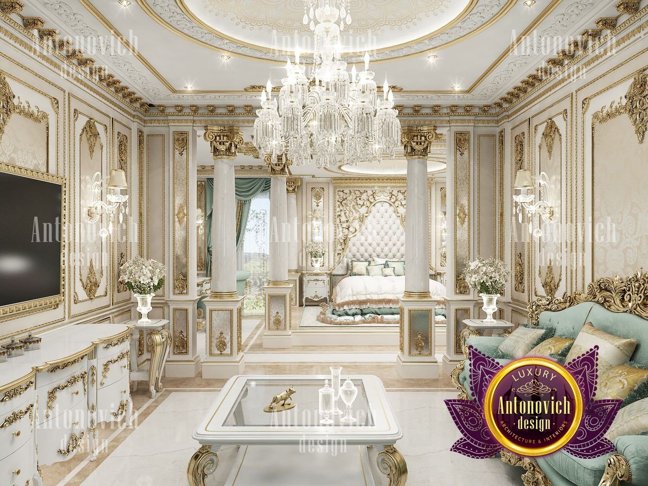 Our team has designed this very intriguing bedroom which has a more traditional design and style. This is an interesting concept that gives the impression of a Victorian era and a classic bedroom which looks tranquil and regal. We will design your bedroom with a sleek and polished effect by keeping things coordinated. The neutral tone of the base color of the bedroom makes it look more unique and sophisticated. This bedroom is all about classic art-deco details. The bed is designed on top of a platform which is made of marble. The pillars served as a nice frame to the bedroom making it look more interesting with the customized carvings and details. The vintage look in this bedroom is designed to add a nice and luxurious feel to the bedroom without going over the top. This bedroom looks like a suite because of the elegance and beauty it brings. Just look at the gorgeous crystal chandelier that hangs as an impressive eye-catching piece in this neoclassical bedroom. We make sure to add a dramatic piece, which adds a nice vintage feel to the bedroom. This chandelier also ties the room together and keeps it looking perfect. To tie in with the vintage feel of this bedroom we also added an elegant crystal wall lamps with a unique crystal design. These wall lights are pinned to the wall to create a nice highlight to the bedroom walls.UNIQUE AND WARM