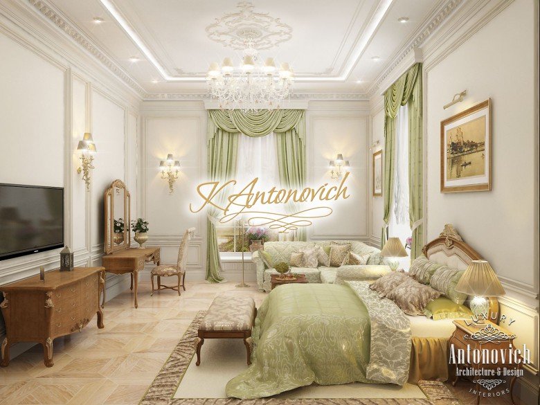 Green has always been a favorite color of many for their bedrooms. However, it is usually seen in tropical themes. But this time, Luxury Antonovich Design has created this green color in such a classy way. It is mixed with a gorgeous shade of wood in the bed frame and it continues in the tables and drawers. The overall beauty of the room is very undeniable as it exudes a classy ambiance. Every detail that the company has put in this bedroom is very iconic.