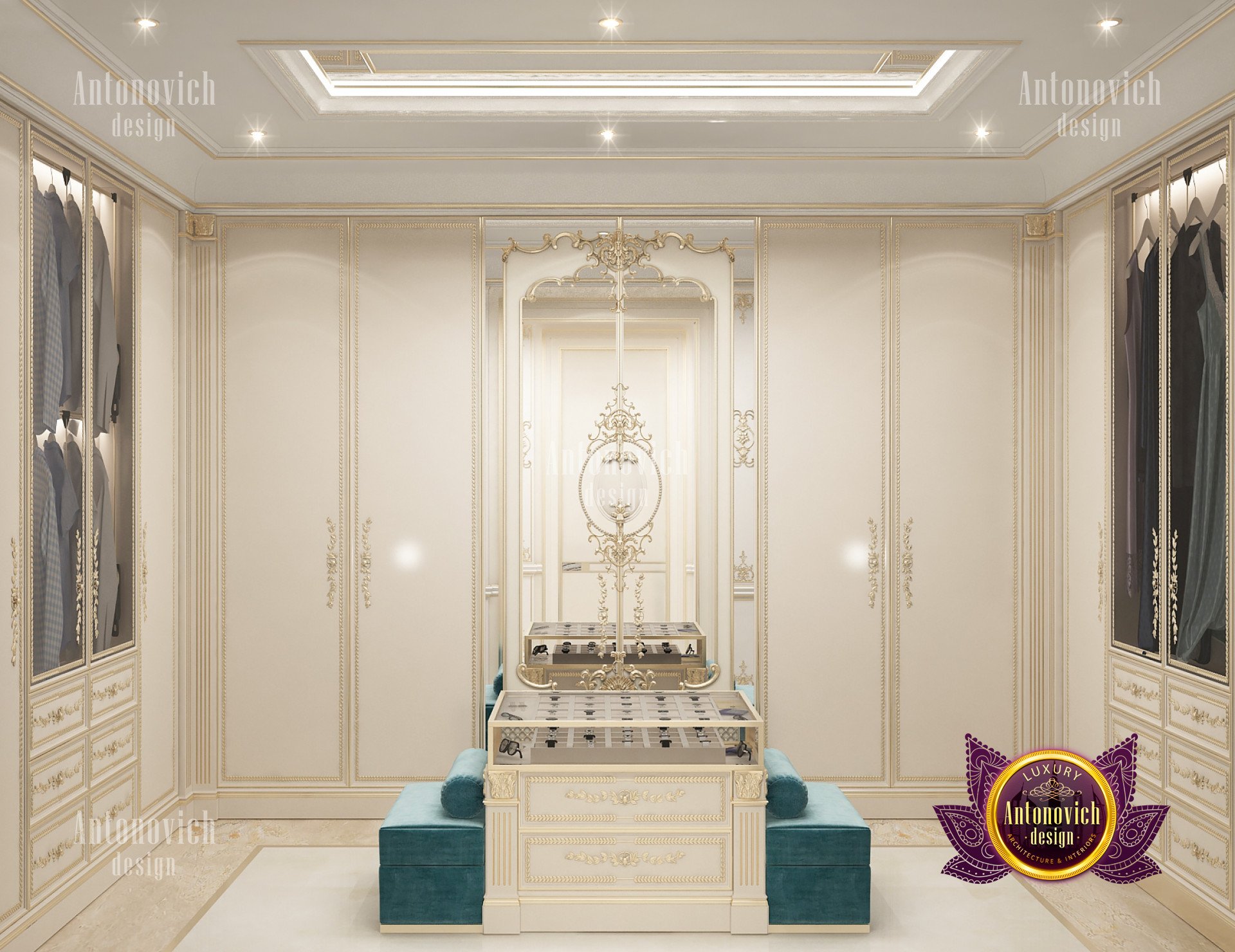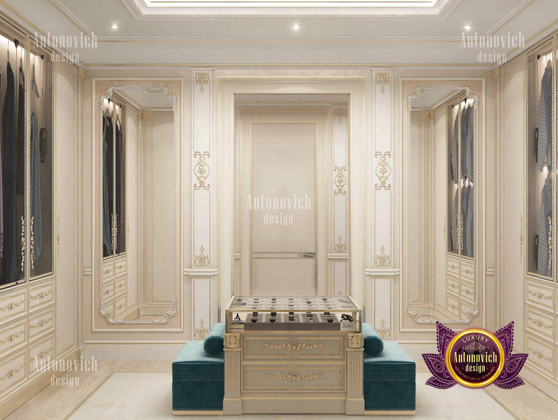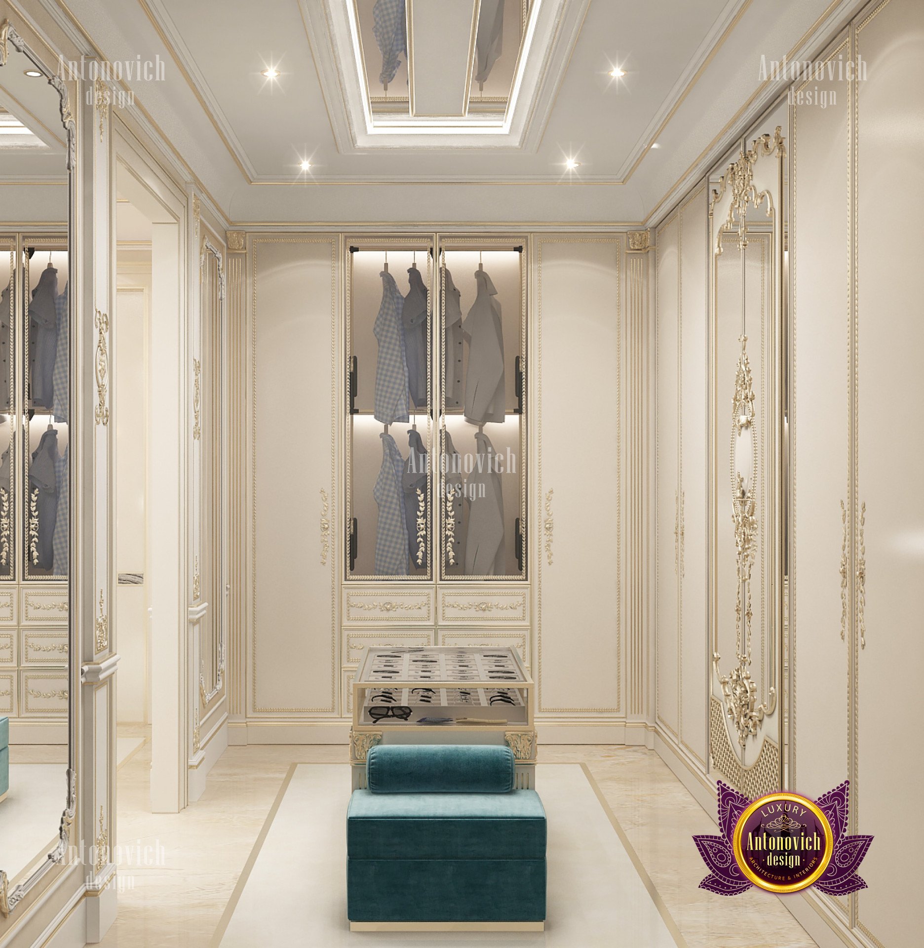 One of the most stunning dressing rooms you will ever see is the luxury interior design. Its finished off with beautiful details. The luxury dressing room interior design has an elegant and contemporary ambience. With this interior design idea by Luxury Antonovich Design, youll feel like youre living in an immaculate home. From floor-to-ceiling decors, premium furniture designs, spacious areas, and more, the interior design offers a rich feel. In addition to the large cabinets, there is a lovely rack set that can fit your entire closet.