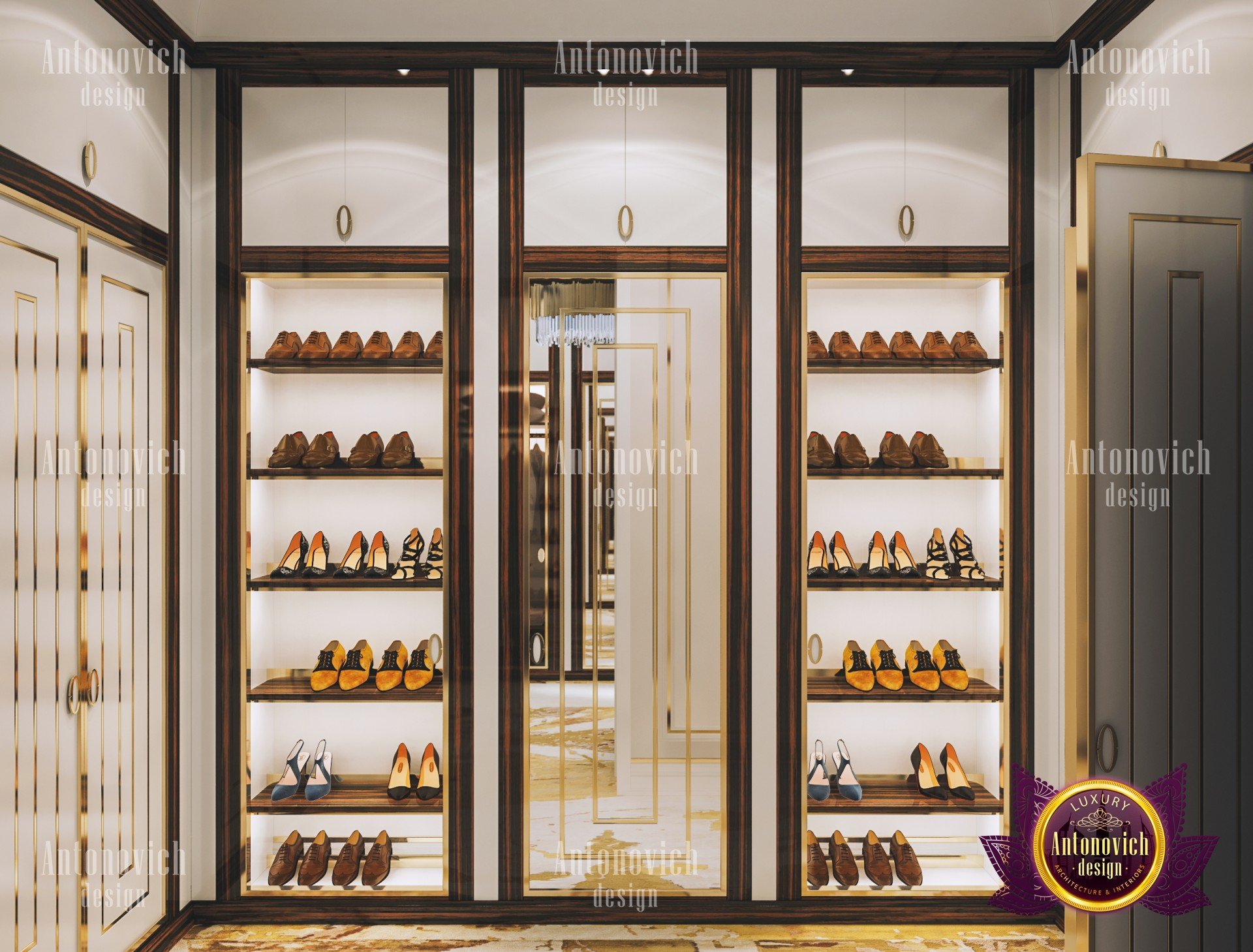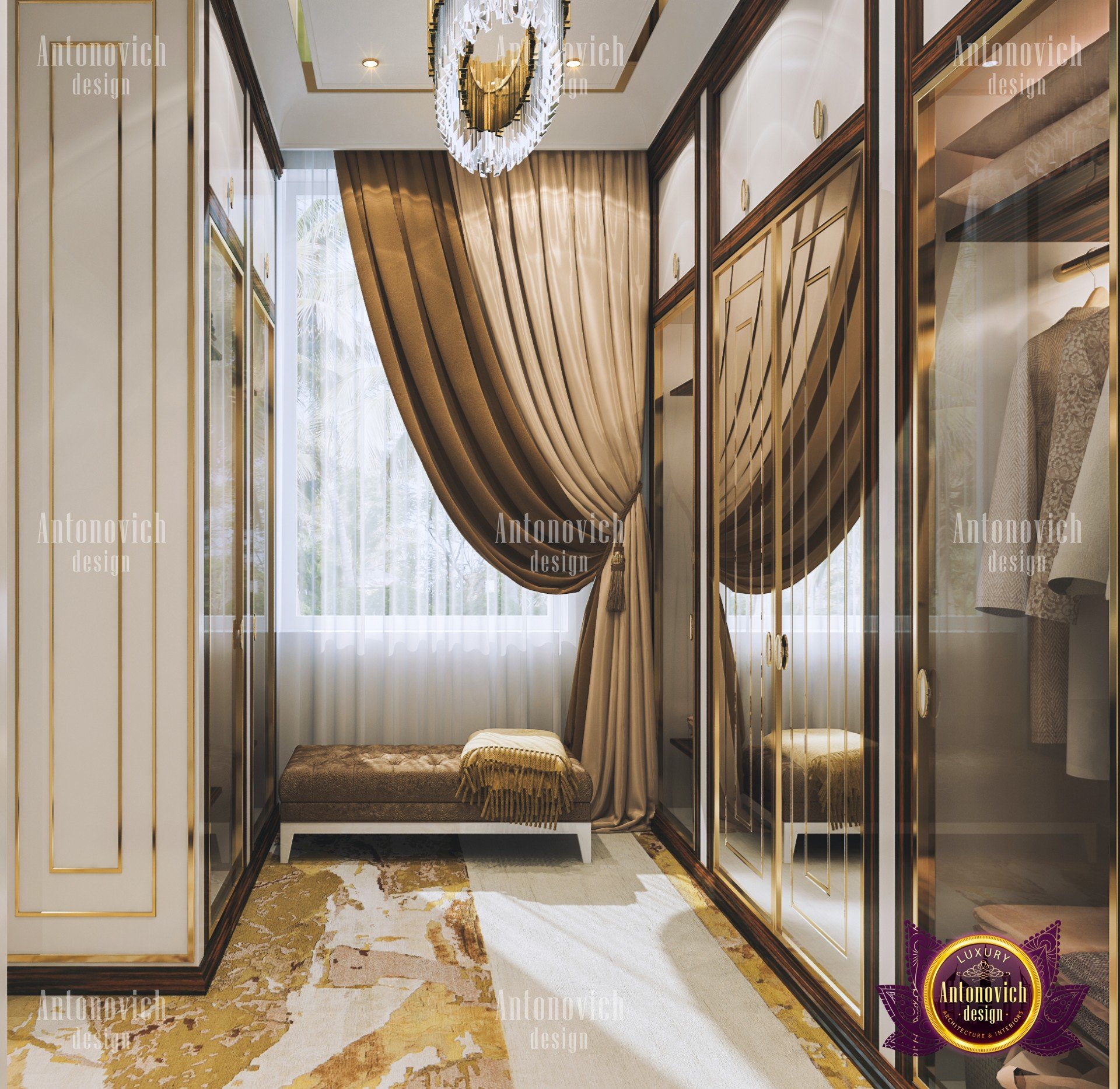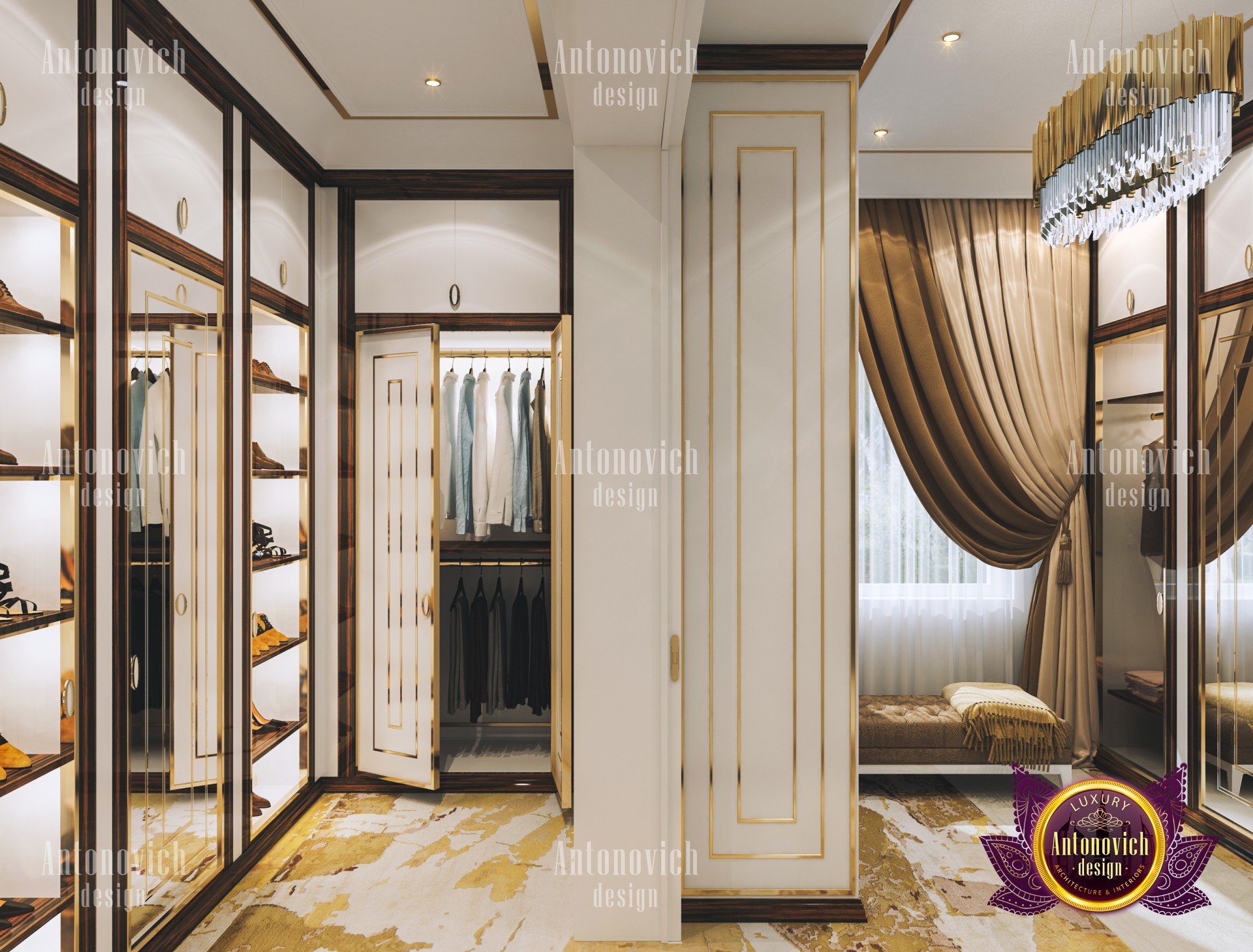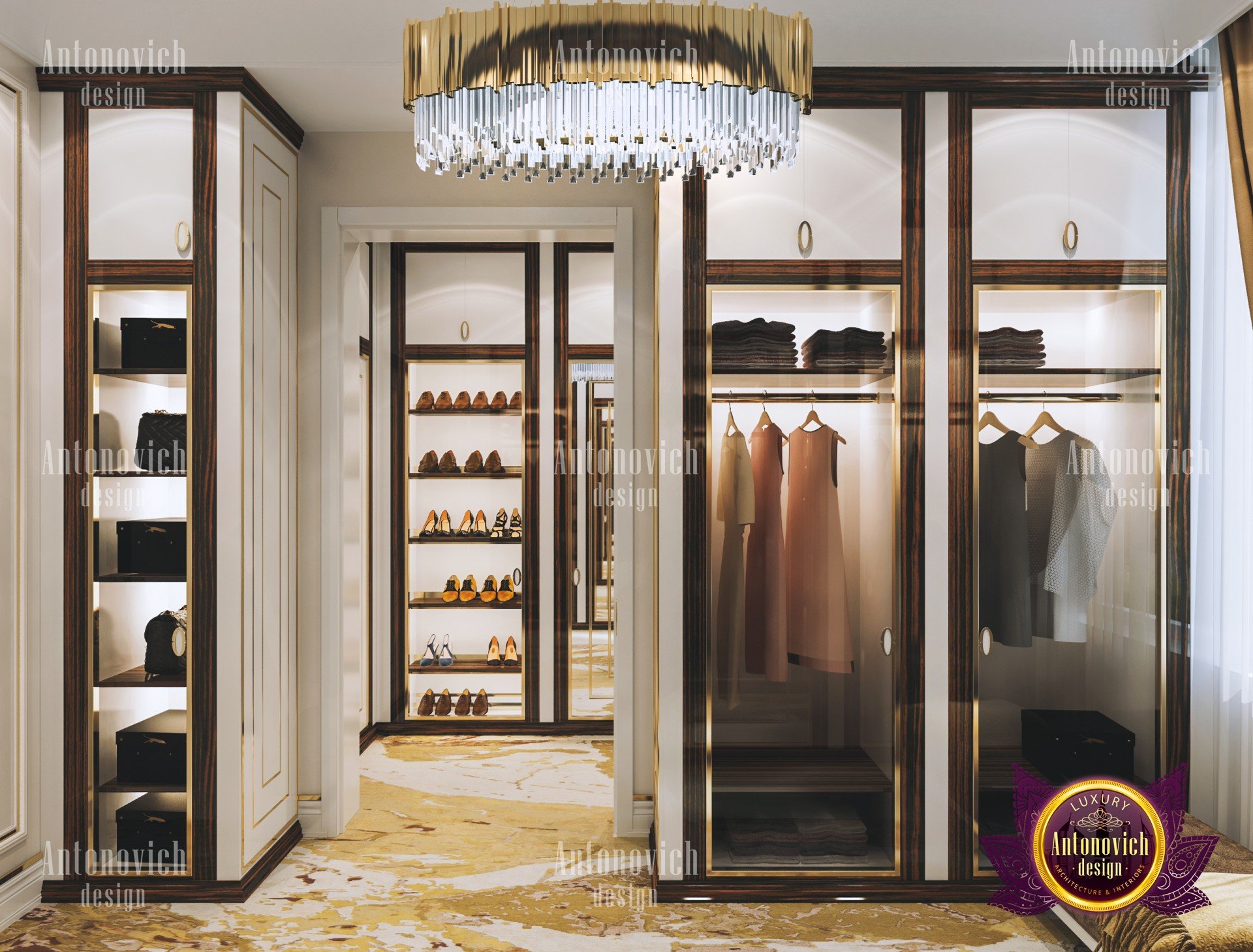 Someone thinks that wardrobe room is needed only for a woman. But for a modern business man who cares about his appearance and follows fashion, such a room is simply necessary. Practicality, minimalist design and mens fit-out materials, such as glass, wood, leather, metal, prevail in the mens wardrobe from Luxury Antonovich Design. The location of the dressing room for a man is quite diverse, it all depends on the preferences and lifestyle of the man. All storage systems are selected according to style and preferences — holders for trousers, ties, belts, drawers for accessories, underwear, shelves for hats, bags, shoes, umbrellas. In the mens dressing room there is always a place mirror and an ottoman. A wardrobe room with proper design by Luxury Antonovich Design becomes one of the favorite places in the house.