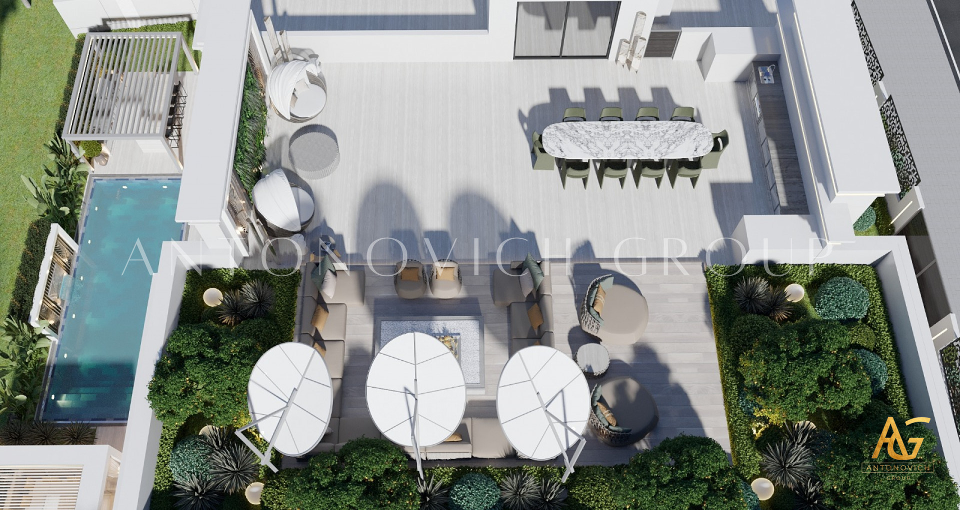 The firm's commitment to bespoke excellence is evident in every corner of the landscape. Antonovich Group collaborates closely with clients to understand their vision, lifestyle, and preferences. The result is a tailored landscape design that not only enhances the villa's exterior but also seamlessly integrates with the overall architectural concept.