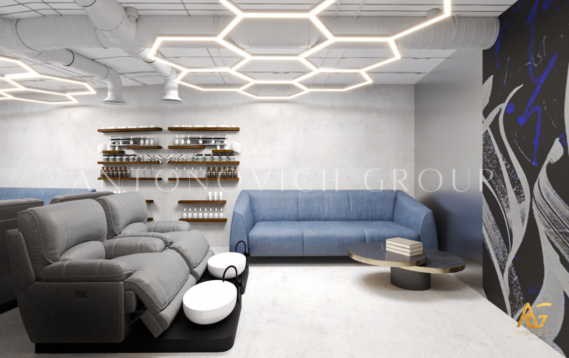 Antonovich Group understands that a barbershop or hair salon is more than just a place of business; it’s a representation of the brand. With this project, they’ve succeeded in creating a space that not only serves its functional purpose but also enhances the brand identity of the barbershop. By incorporating high-end materials, luxurious fixtures, and a meticulously planned layout, Antonovich Group has helped craft a space that clients will associate with quality, professionalism, and exclusivity.