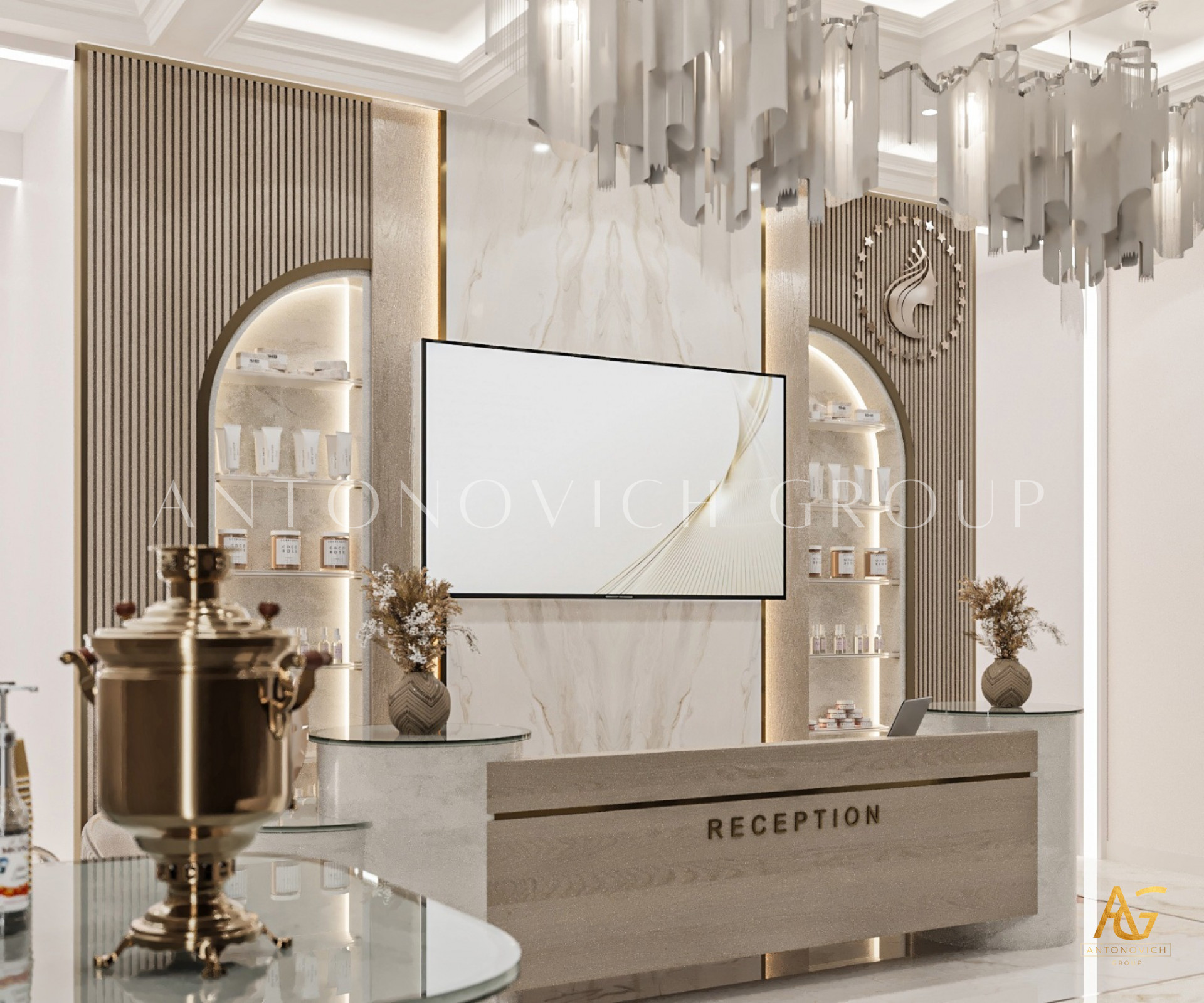 As one of the top 10 interior design companies in Dubai, Antonovich Group approached this project with a keen understanding of the unique requirements of aesthetic clinics. The design seamlessly blends cutting-edge medical functionality with the luxurious ambiance expected by discerning clientele.