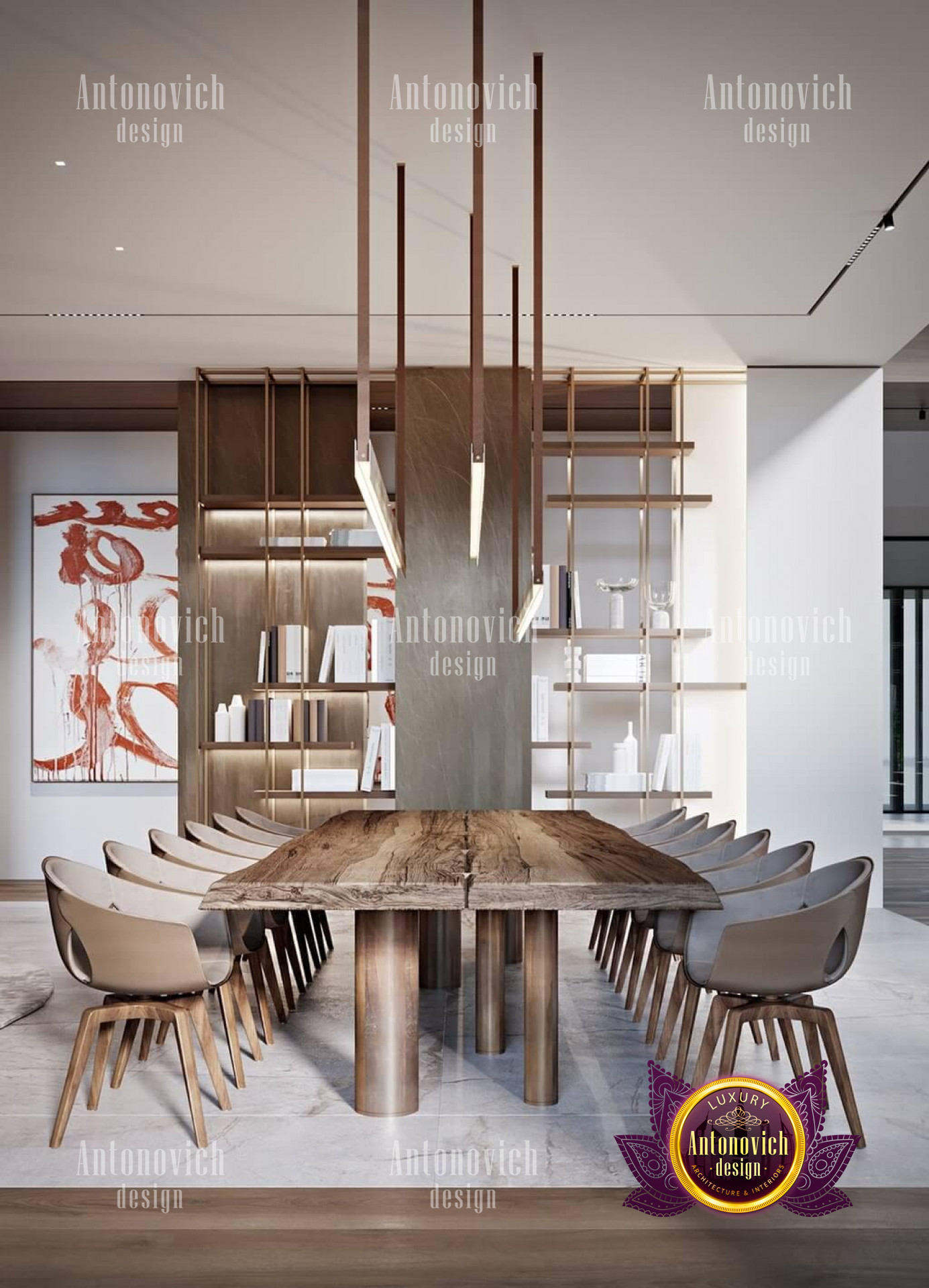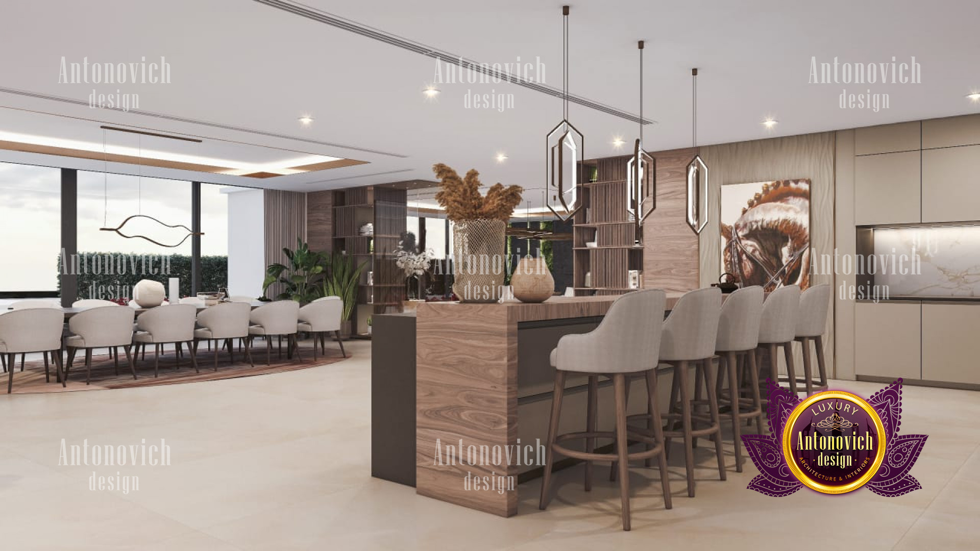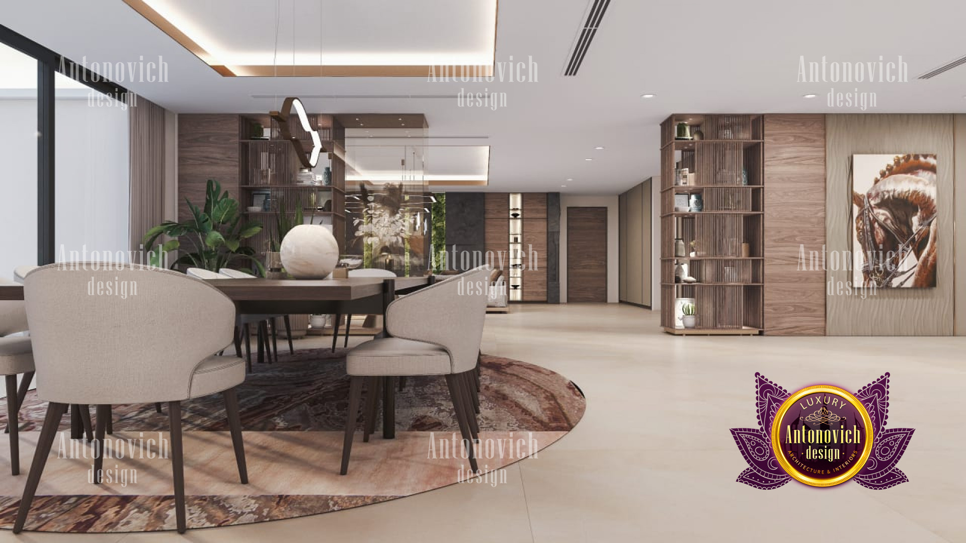 This modern apartment interior design in W the Palm is one of the most beautiful contemporary designs in Dubai. Minimalist interior design is related to modern interior design in that it focuses on employing only the minimal necessities to create a clean and uncluttered environment. Basic, clean lines, and a monochromatic palette with color utilized as an accent characterize it. It usually consists of an open floor plan, plenty of natural light, and functional furniture, with a focus on the shape, color, and texture of a few key items. To generate a sensation of freedom and relaxation, the minimalist style of the modern apartment interior design in W the Palm uses only the basic elements: light, form, and beautiful materials, usually in an open-plan structure. There isnt a lot of extraneous embellishment or decoration. Instead, the few details that are employed are simple and mix in well with the environment. There is a lovely vase on top of the dining room table for this modern apartment interior design in W the Palm.