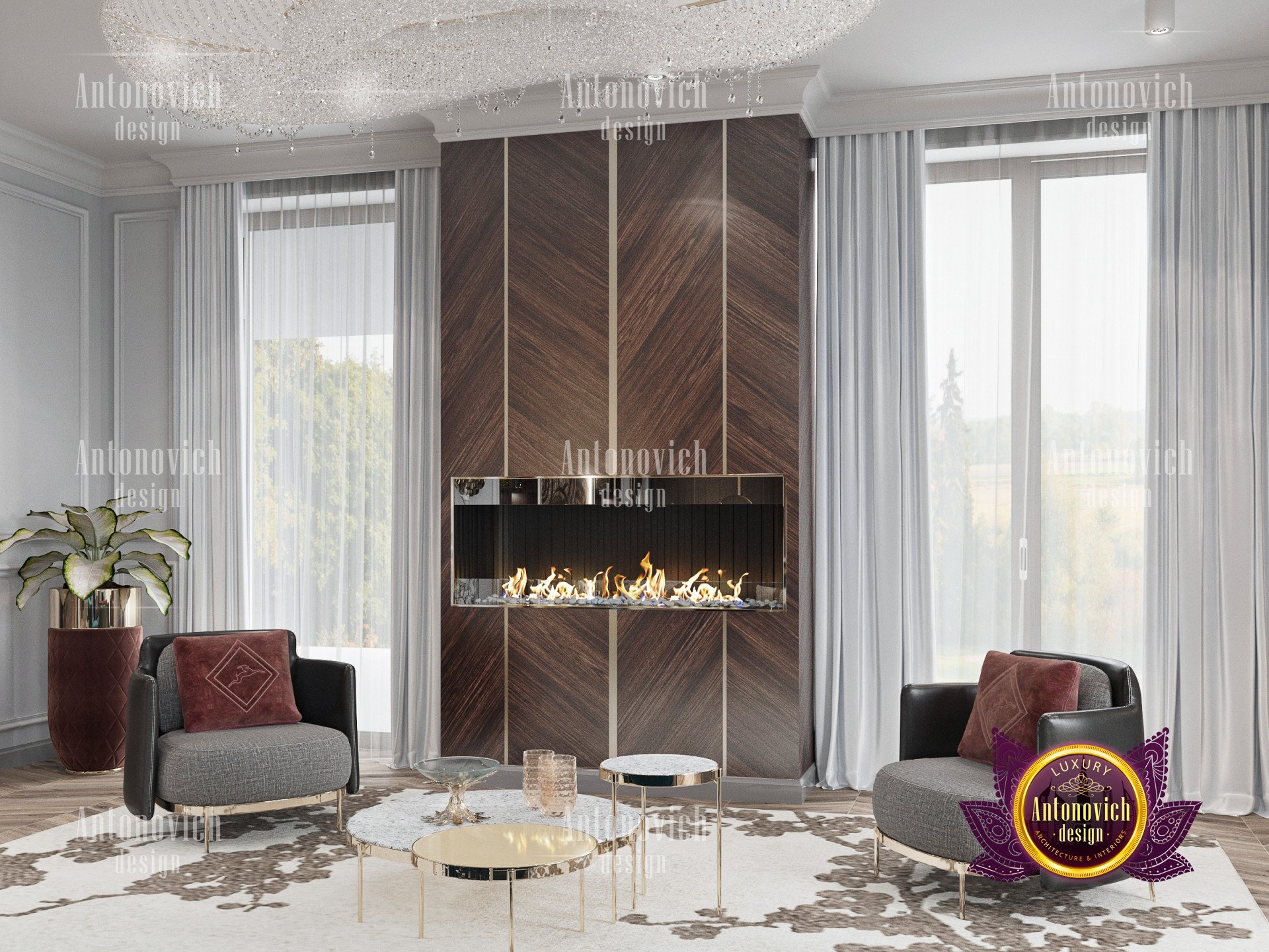 Overall, the colors of the apartment are the right choices for a luxury apartment. The marble accent, the huge carpet, the beautiful sofa, and the spiral wall accent generate a beautiful mix of luxury and elegance.