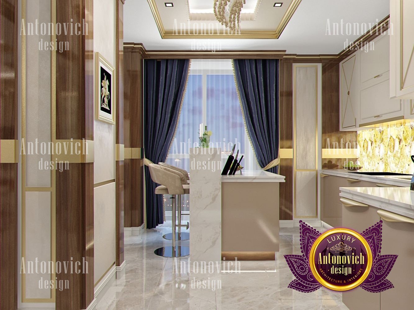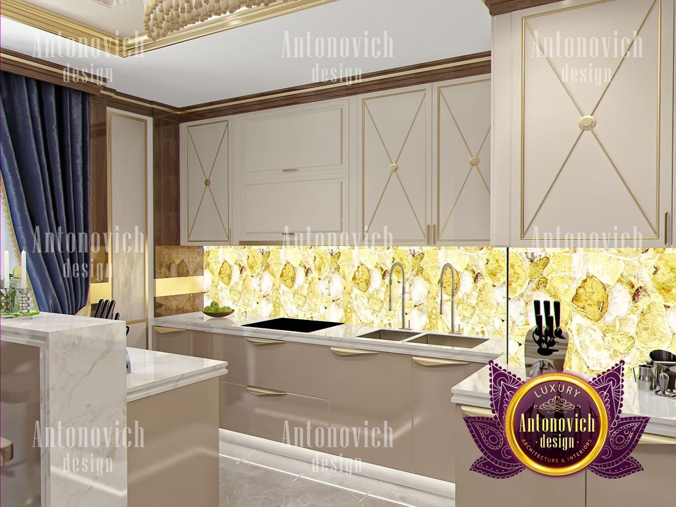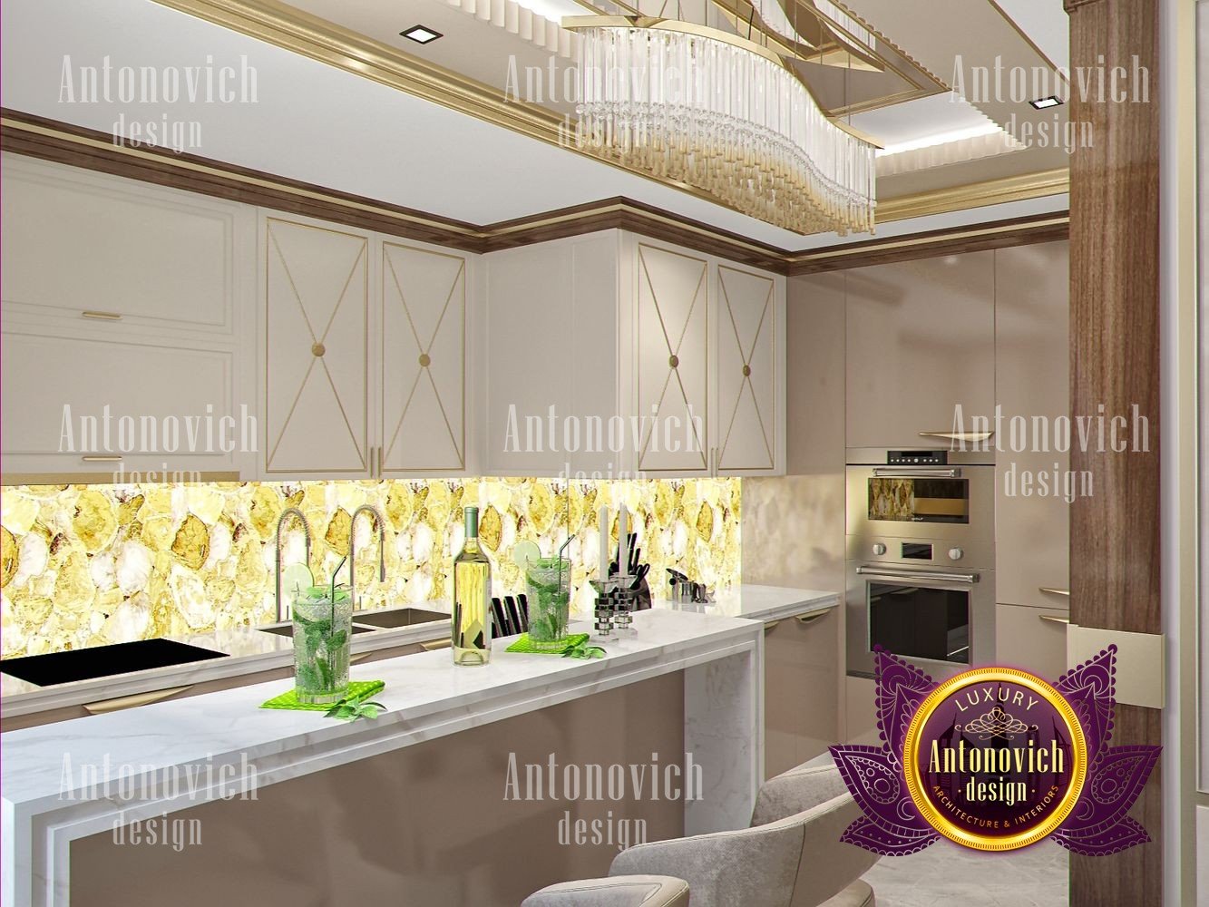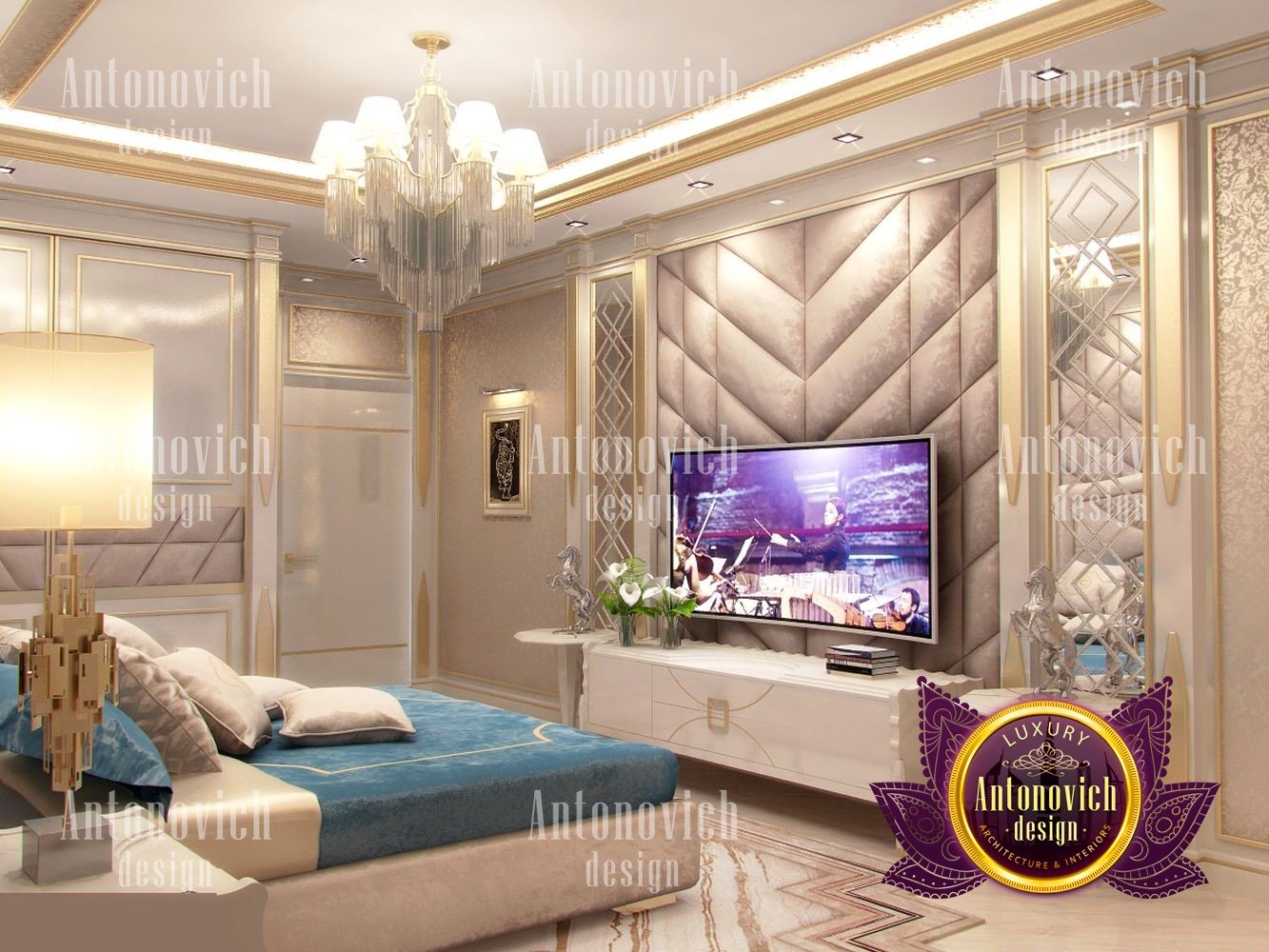 Luxury modern interior design made for the richest in the city. Live in a luxurious apartment with the help of the best luxury interior design company: Luxury Antonovich Design. Its living room is a combination of luxury and modernism. The beautiful blue and cream sofa are a good color choice. The chandelier is very luxurious with lighting that is equally superb. The dining area is designed to fit many people. The beautiful chairs and table are one of a kind with their luxury design.GORGEOUS DECORATION WITH LUXURY DETAILS