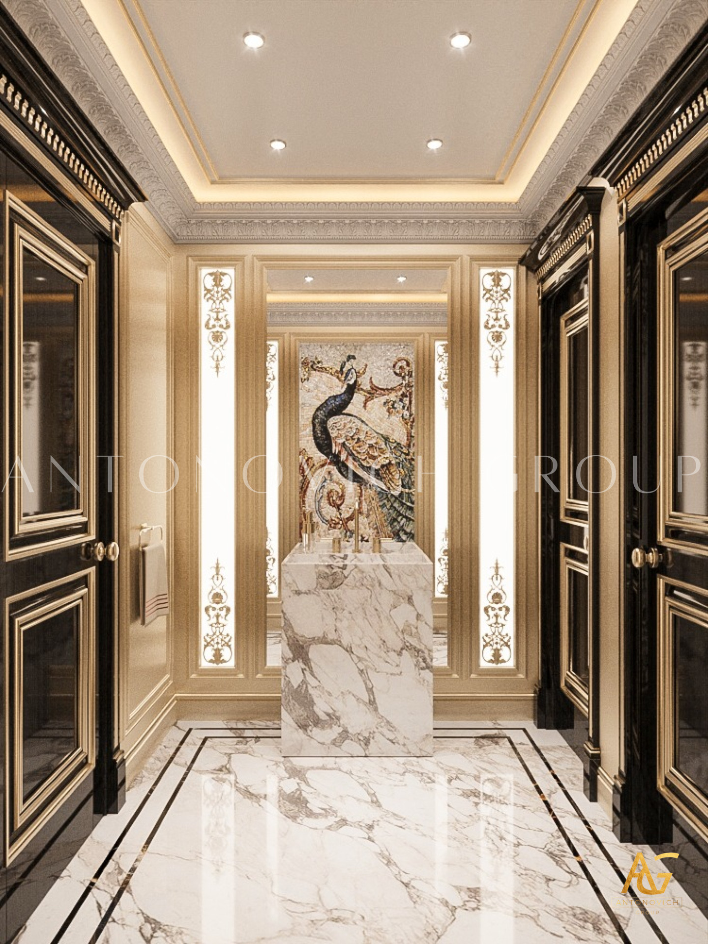The luxurious bathroom interior design also includes a large bathtub where you may unwind and relax soundly. Every detail of the luxury bathroom interior design has been meticulously coordinated so that you can relax freely. They may also prepare without being distracted because the luxury bathroom interior design was created with a functional layout that allows you to concentrate on relaxing. You will adore the vast theme of the luxury bathroom interior design.