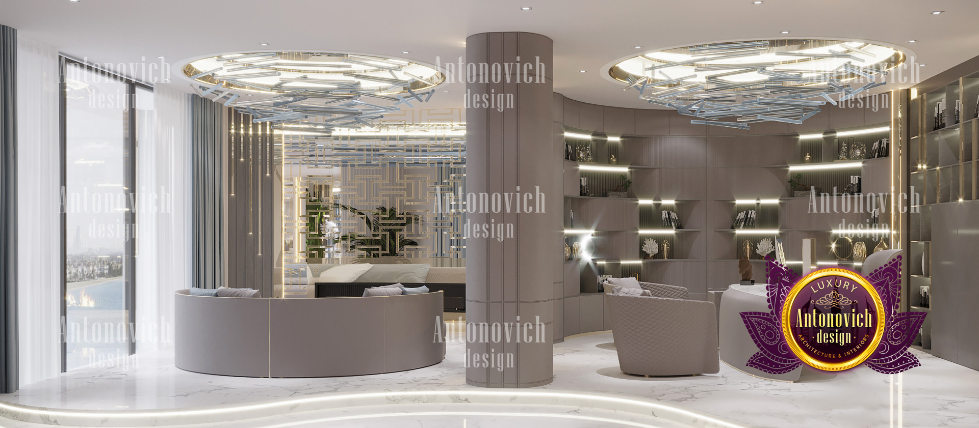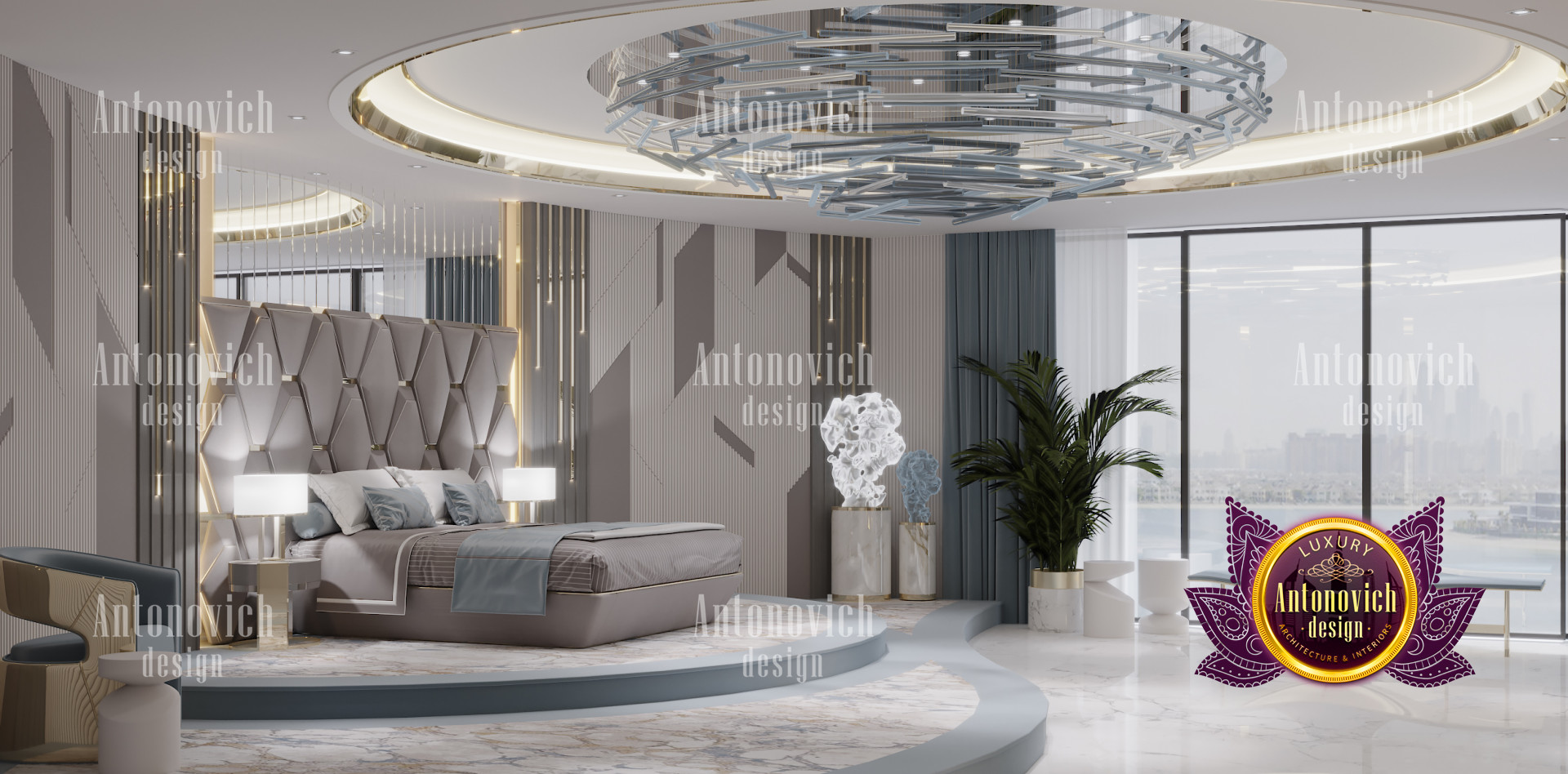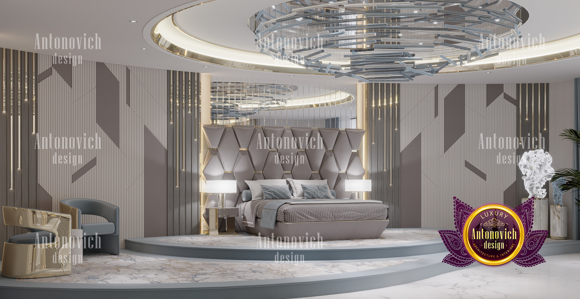 Futuristic, modern, and stylish; are the three main characteristics of this luxury bedroom interior design. The futuristic ambiance of the room can be seen with the huge chandelier that Luxury Antonovich Design has created for this luxury bedroom interior design. The huge and rounded design is such an eye-catching creation that signifies beauty and creativity.