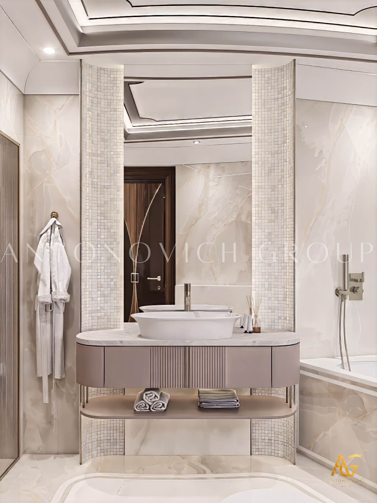 In creating the interior of the bathroom, an important point is 3d visualization. It is quite difficult to imagine a future bath, based only on the project drawings. 3d visualization of the bathroom from Luxury Antonovich Design allows you to feel the space and volume, color and shape of all the components of the interior of the room. You can order 3d bathroom visualization (3d bathroom design) in our company.