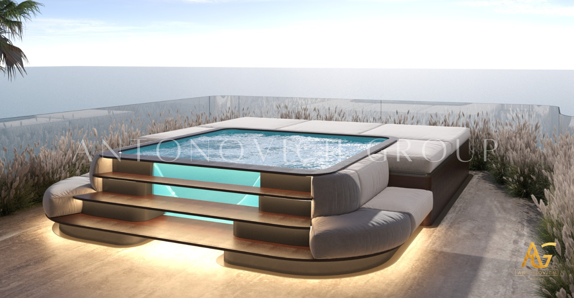 Perhaps no single element defines luxury beachfront living quite like the infinity pool. Antonovich Group has perfected the art of designing these architectural water features to create the visual illusion of water extending directly into the ocean beyond. This signature element serves multiple purposes:
