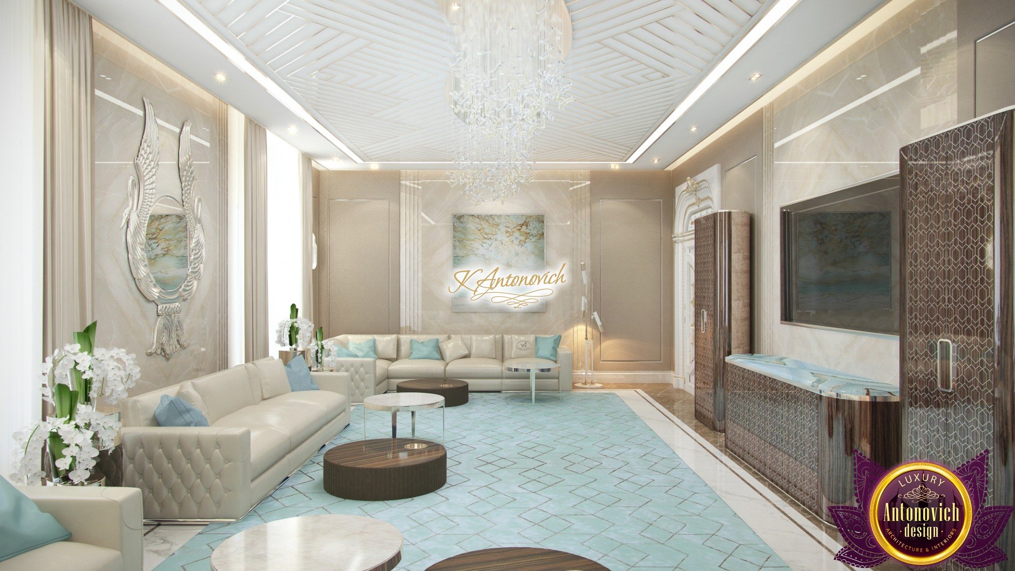Interiors in the modern style of the studio Luxury Antonovich design is an extravagant and original vision of modern luxury. With a minimum of decorative elements, interior designers create very bright and unique images.And in the interior of the living room prevails a cozy atmosphere of the space in the Art Nouveau style. Beautiful interiors are quite multifaceted concept. After all, the perception of beauty depends on the character of the owners of a house or apartment, and their understanding of beauty and overall design concept of the house. Interior styles today are undergoing great transformation and is almost impossible to distinguish pure traits of a particular style. In this project of the living room, the interior designers have combined modern style with a touch of Art Deco. The interior of the living room filled with beautiful emotions and gives a feeling of warmth of nature. Designers use a very bold combination of materials in the decoration of the walls. Of natural marble panel and matt decorative plaster of beige color look perfectly. Another original idea of the studio designers it is a panel made of onyx in the small frame made of brass. Visually, the natural stone pattern resembles a sea surface with waves of the surf. Beautiful apartments of studio design are unique every time by the beauty of the masterpieces of modern luxury.The ceiling design which differs striking features became one of the main decorations of the interior living room. This is facilitated by the original décor and stylish chandelier. The interior design of houses may be different from its exterior.But the most important thing is that the interior must fulfill its main purpose - to give a feeling of comfort and aesthetic perfection.