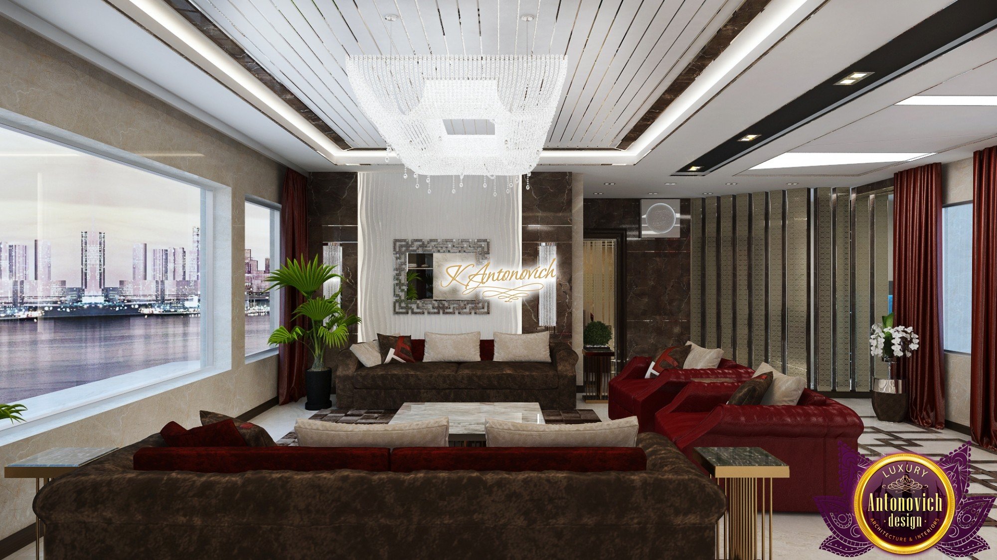 The most expensive apartments are certainly can be called a true oasis for a luxurious life in the city.Luxury interiors of houses and apartments from the studio Luxury Antonovich Design - is the creation of an ideal environment for their owners.For this elegant residence, we proposed a modernist style. It is this style reflected the most, a dynamic and modern character of the apartment owners.This is a young family that loves to travel and in their home, they would like to get exclusive version.An interior that would not be repeated anywhere else in the world.And interior designers Antonovich Design studio perfectly coped with this task. The luxury living room has a very bright and we would even say, a passionate character. It was a passion for life, passion for favorite business has allowed the owner of an elite real estate to achieve a great success in life. Therefore, by so luxurious and bright interior, designers decided to reflect the lifestyle of customers. living room design in a modern style filled with many bright and elite elements of the decor. Modern home projects are closely linked with the latest technologies. Thanks to new methods of processing materials, you can create incredibly beautiful wall decor options.In this room, the walls are decorated with precious marble and elegant decor panels with gilding. Photos of the hall design in the apartment, realistic realization of which allows at an early stage to see in detail their future home. Repair of home can also be the beginning of a completely new interior design story. Bright accent in the interior become modernist luxurious silk curtains ruby hue.